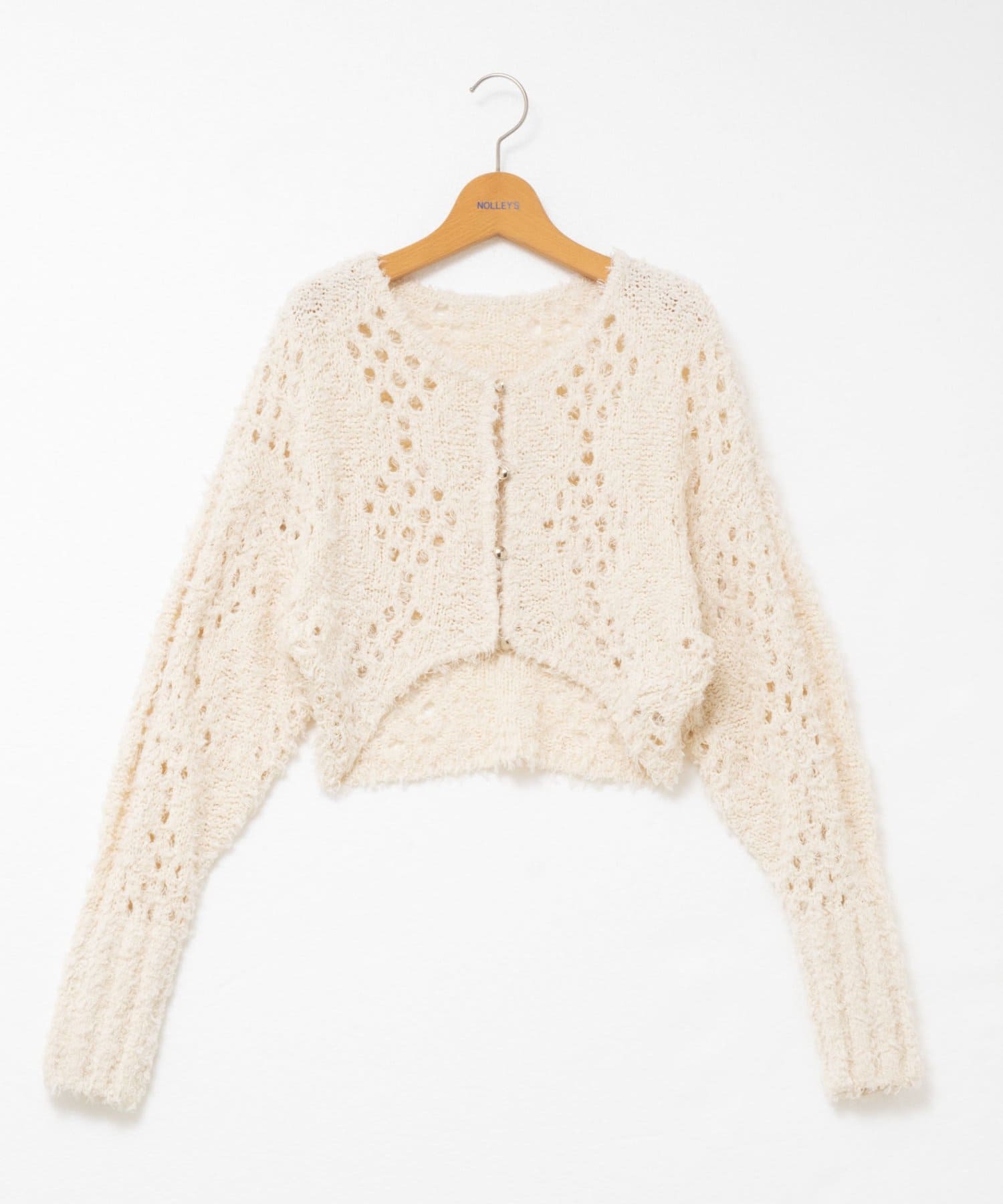 《手洗い可能》カットフェザーヤーン透かし柄2WAYカーディガン