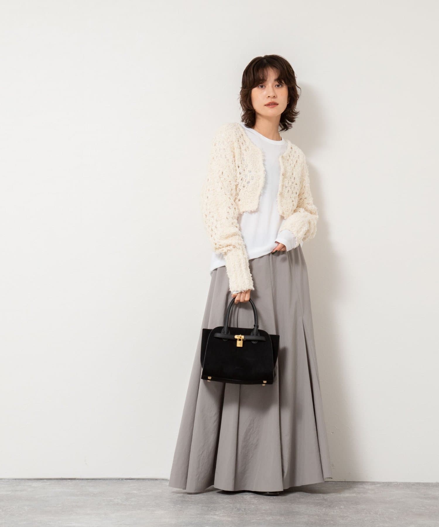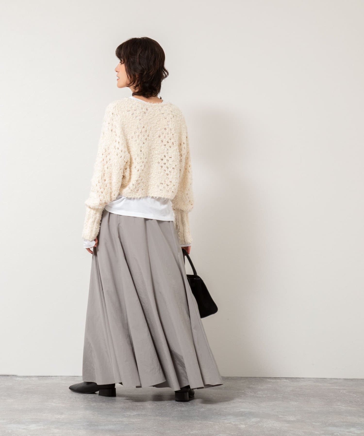 ・ワイドパンツやロングスカートまで幅広いボトムスと相性良し