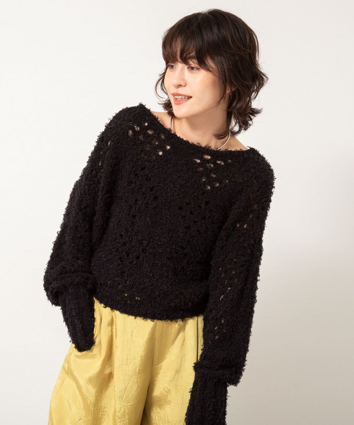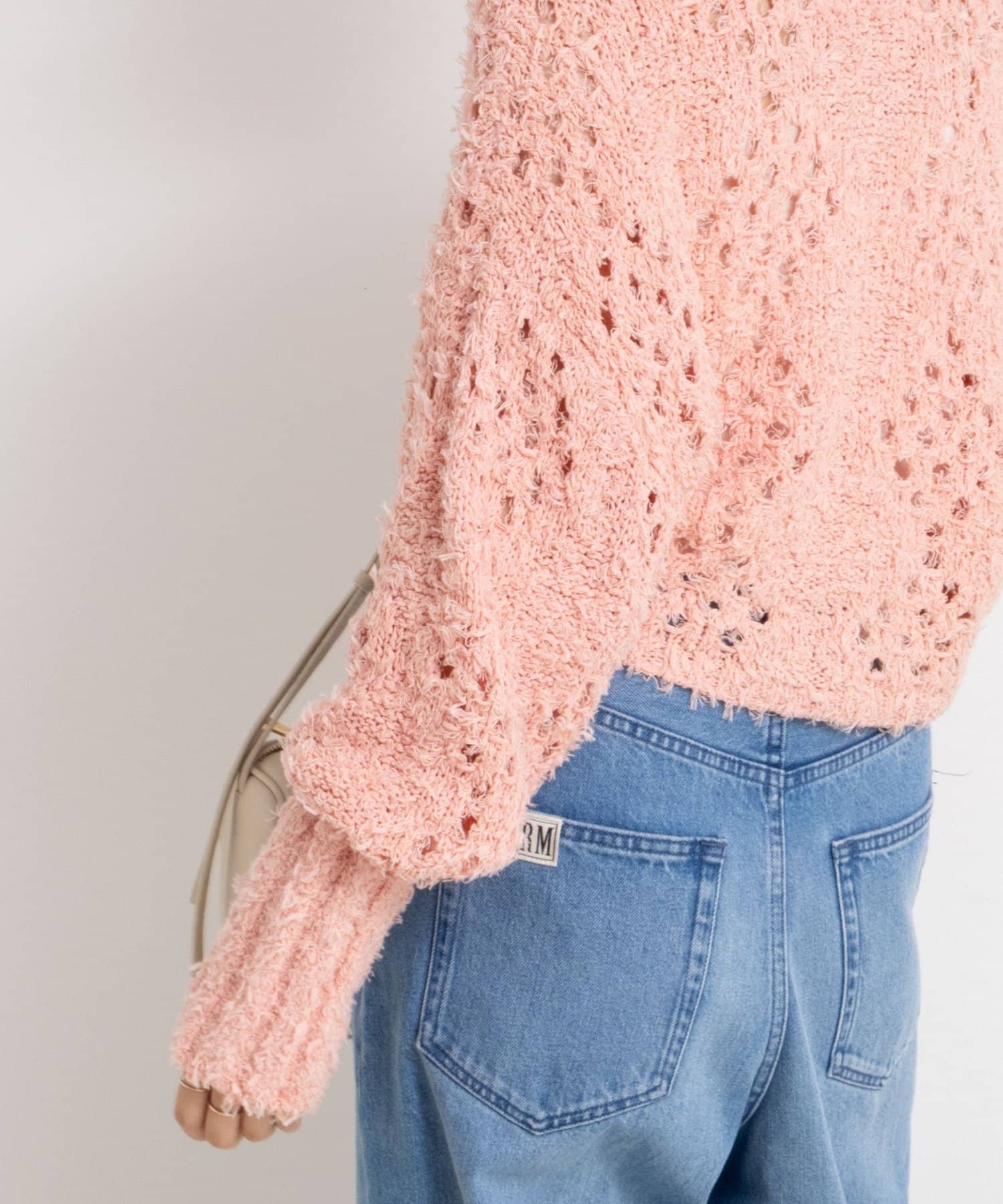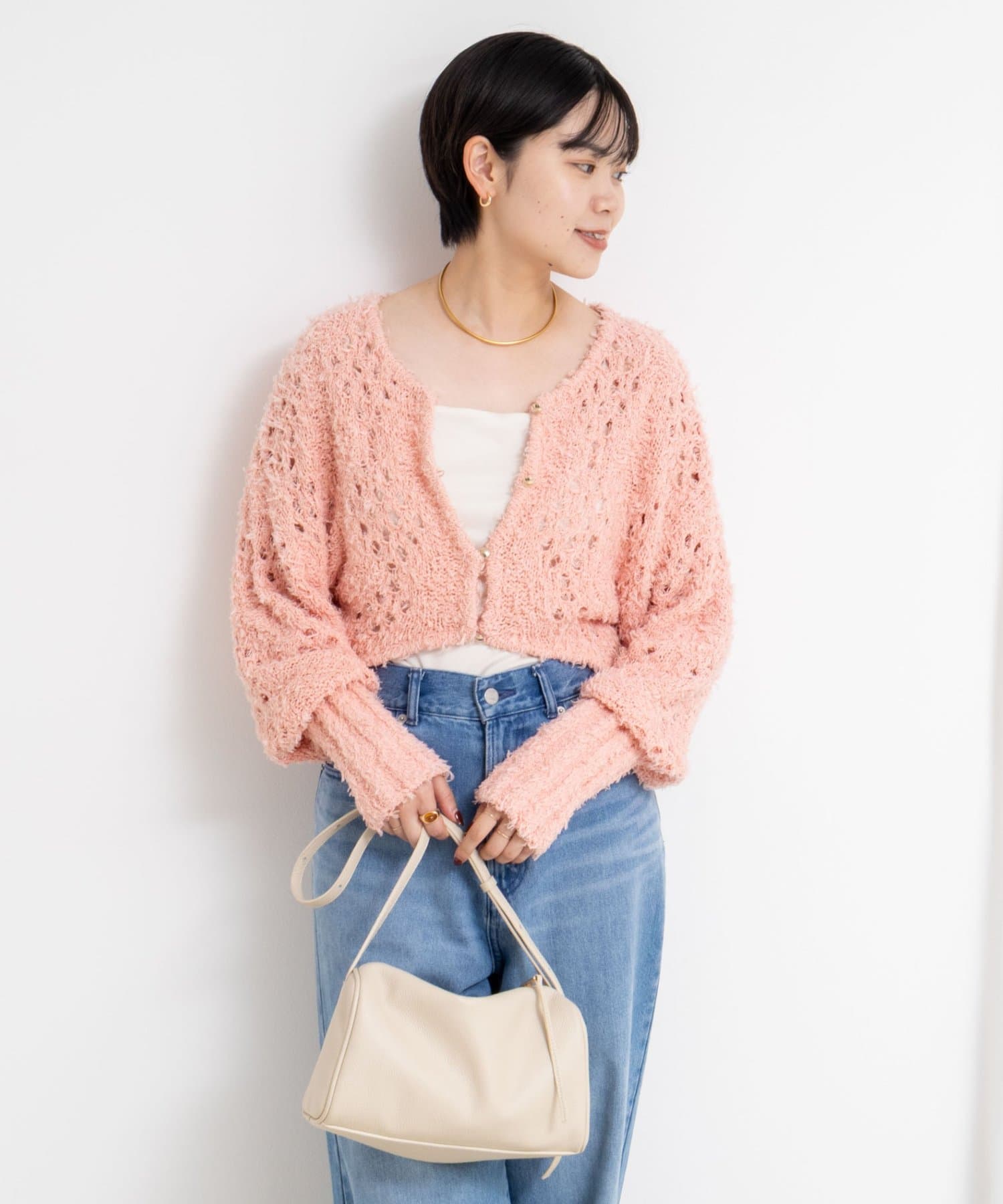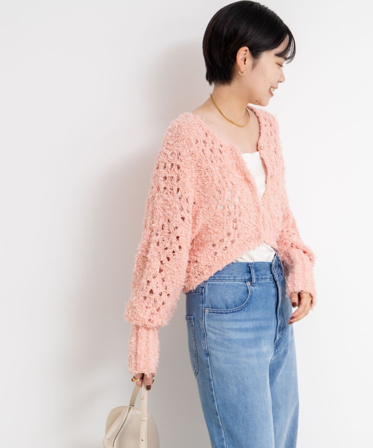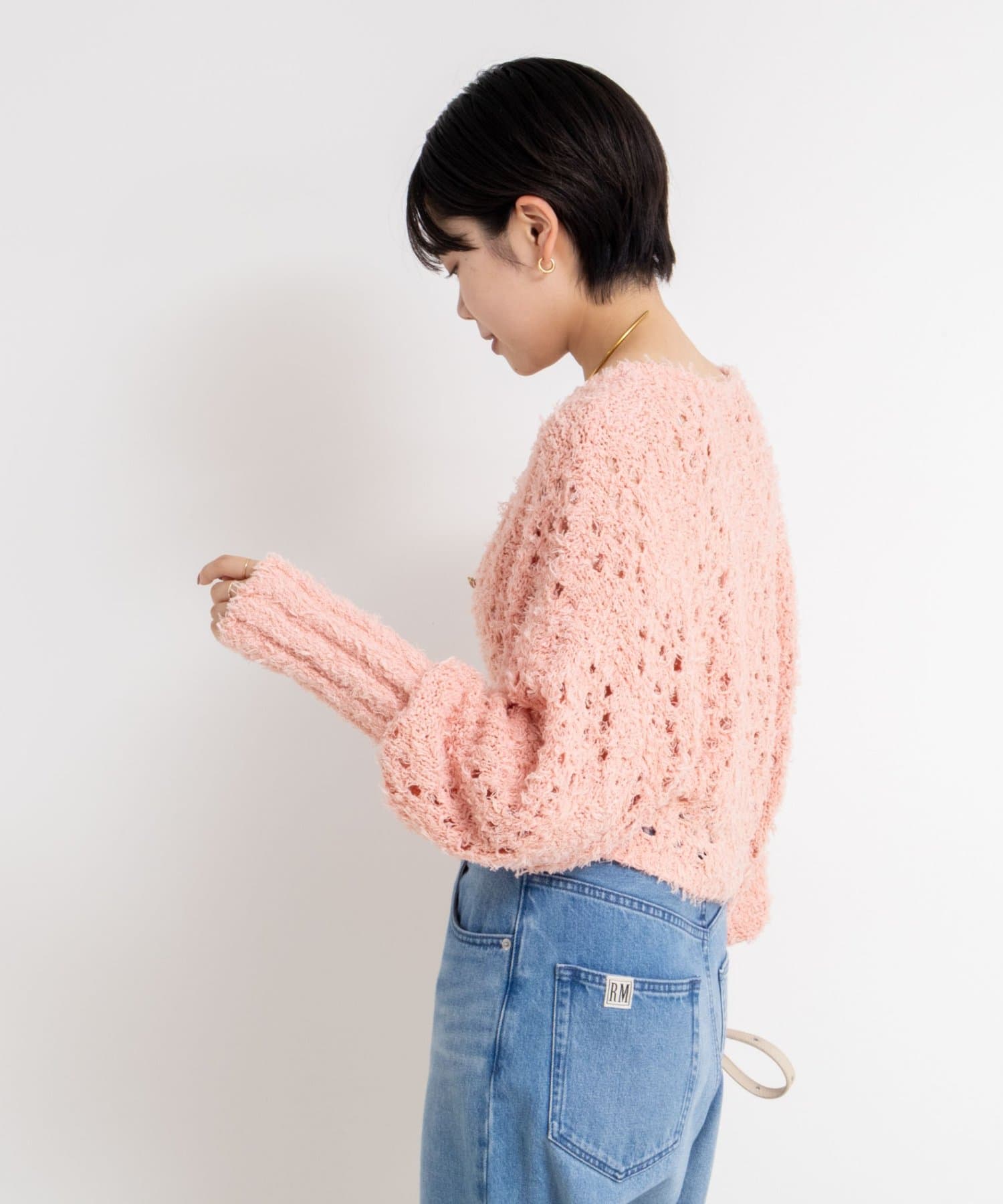 ・表面感のあるカットフェザーヤーンとストレートヤーンをMIXした素材のショートボレロ