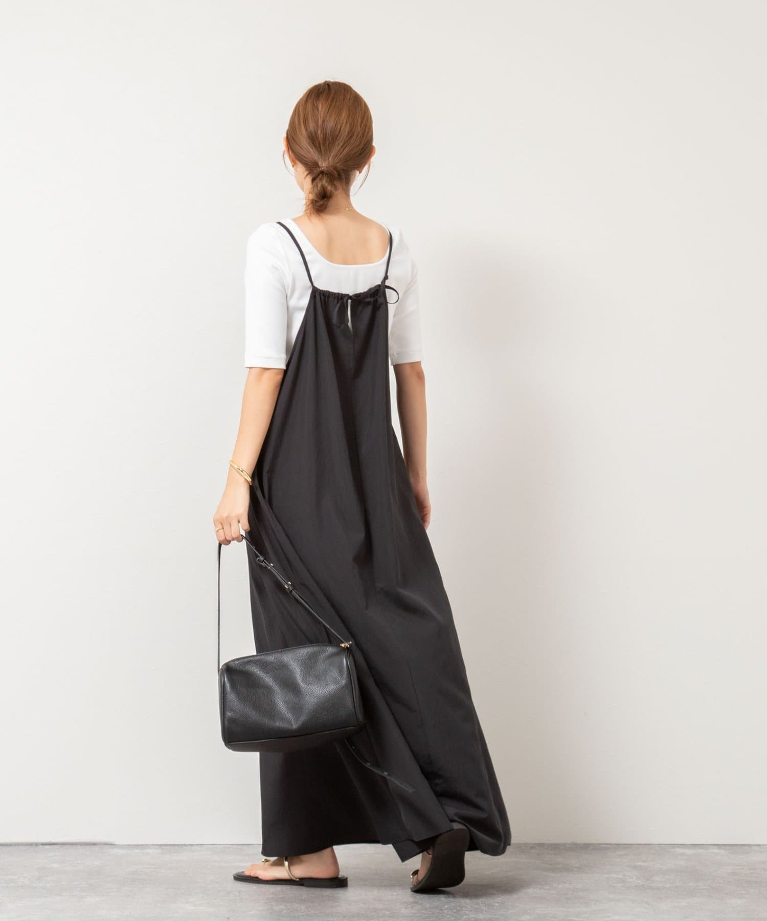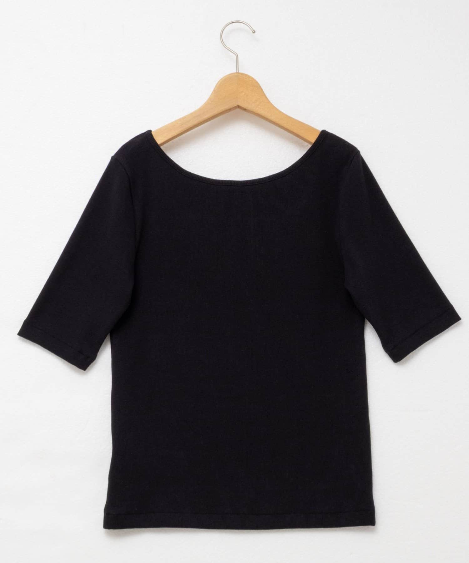 ・前後2WAYデザインで、後ろネックは開きが浅めのボートネック