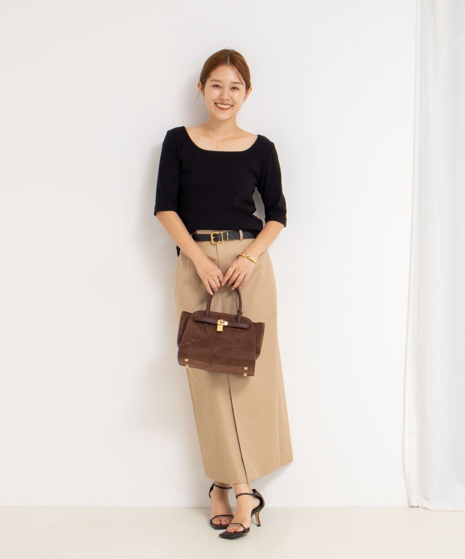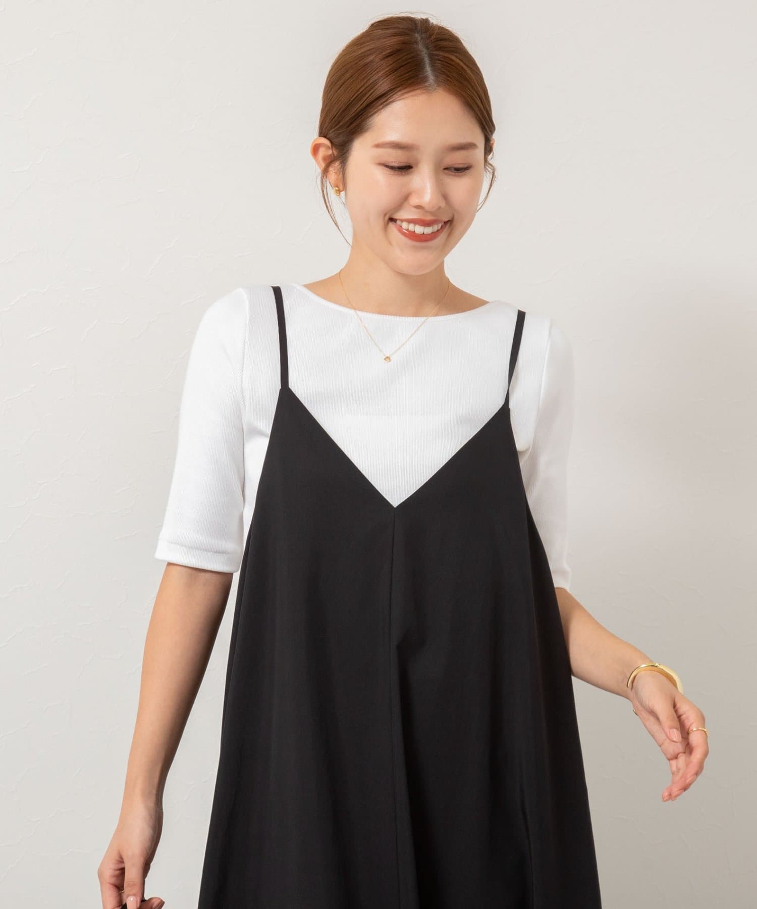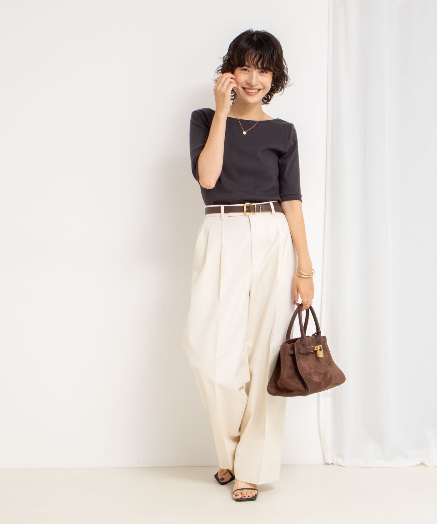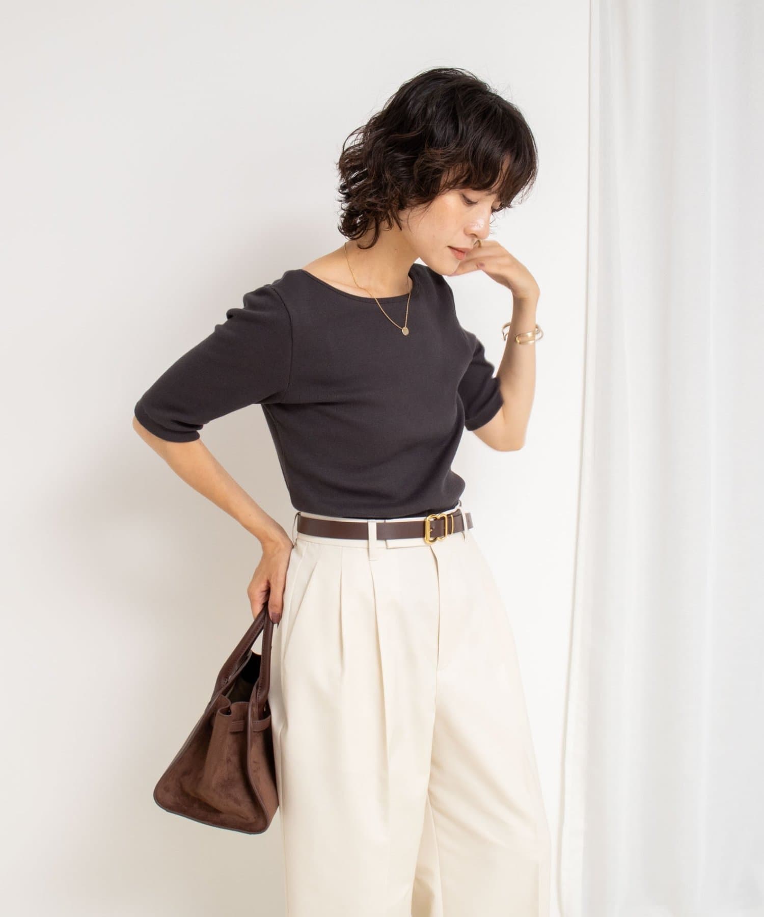 ・スクエアに開いたネックデザインで、抜け感を出しつつ、5分袖が二の腕をしっかりとカバー