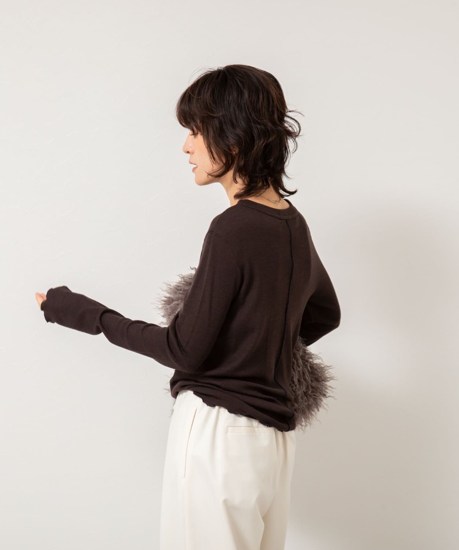 ・袖口と裾はメロー始末(コンとコゲチャのみ配色メロー)、袖口のスリットがさりげないデザインポイント