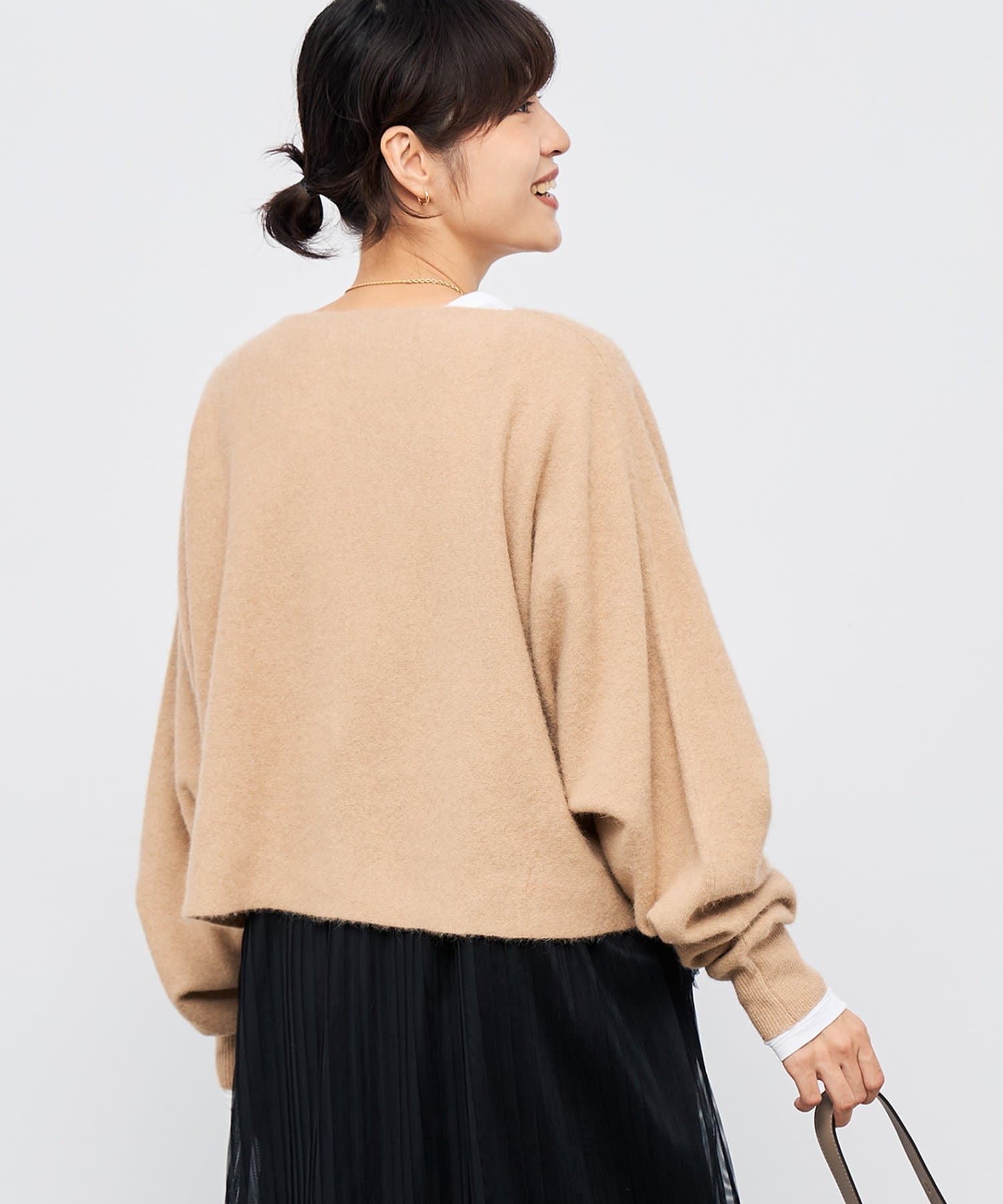 ・シンプルながら女性らしさのある万能ニット