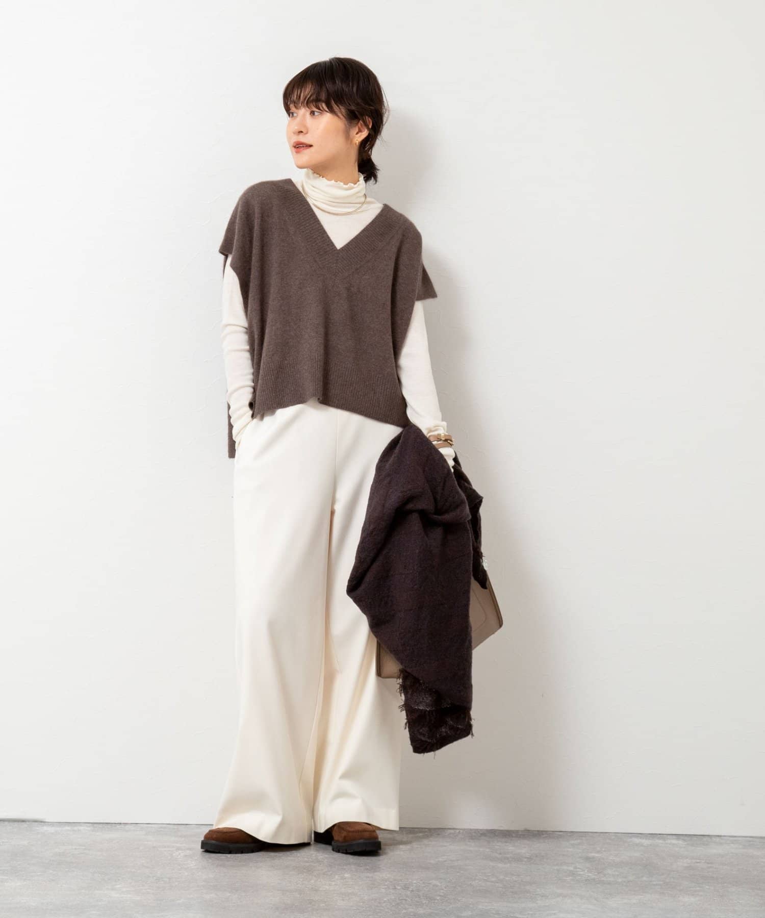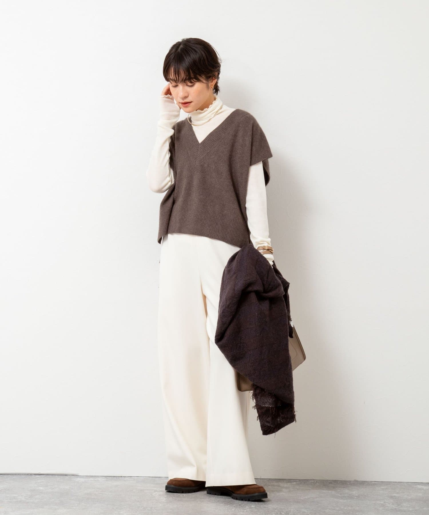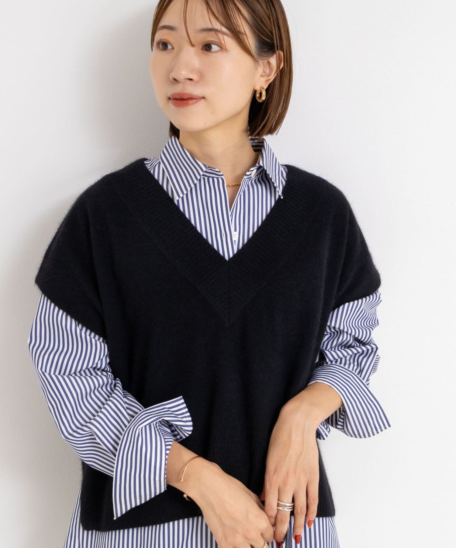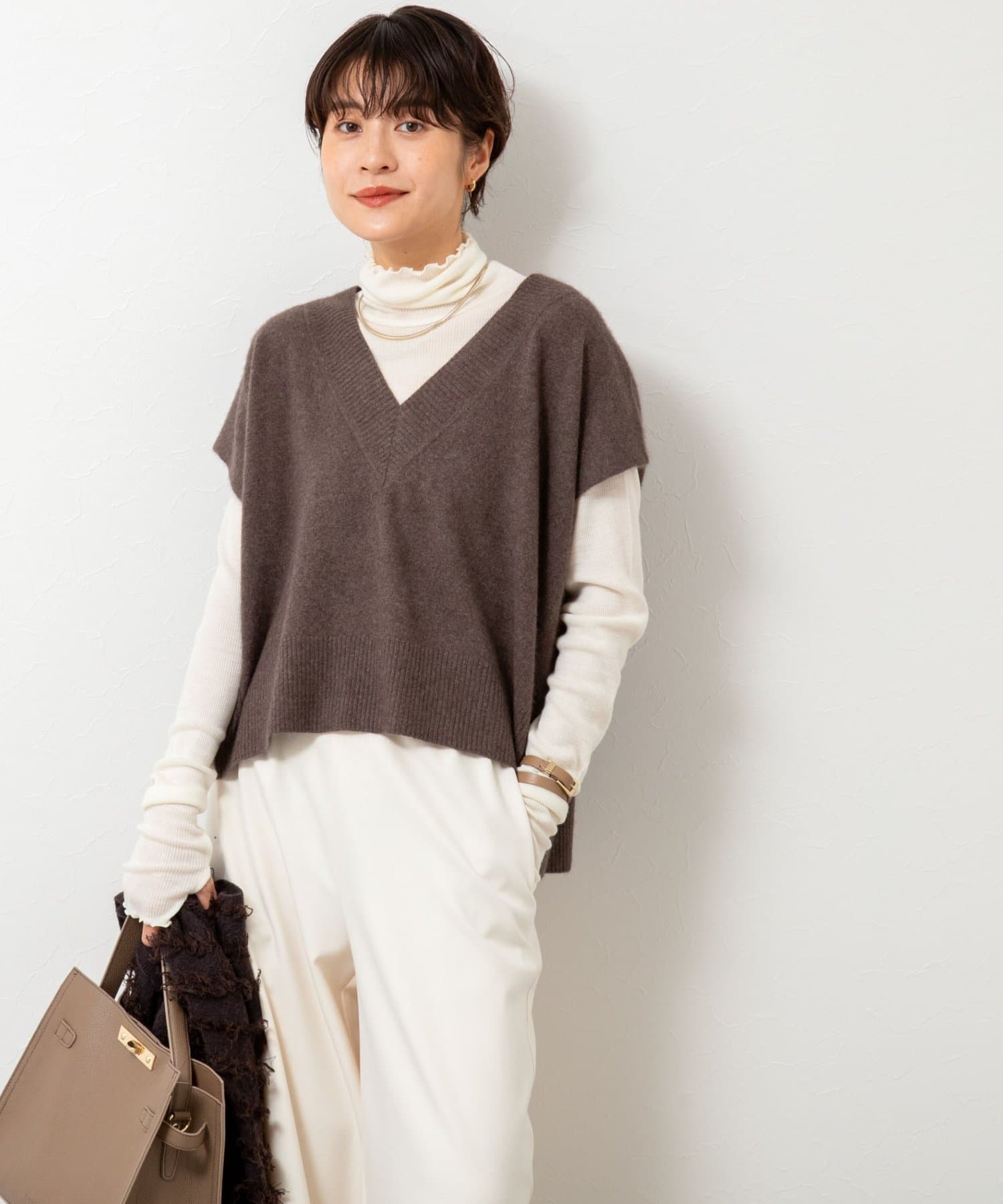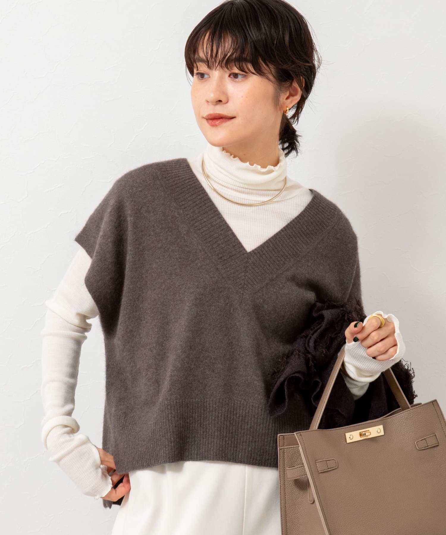 ・毎年人気の 洗えるFOX混ニット から、今年はベストが登場