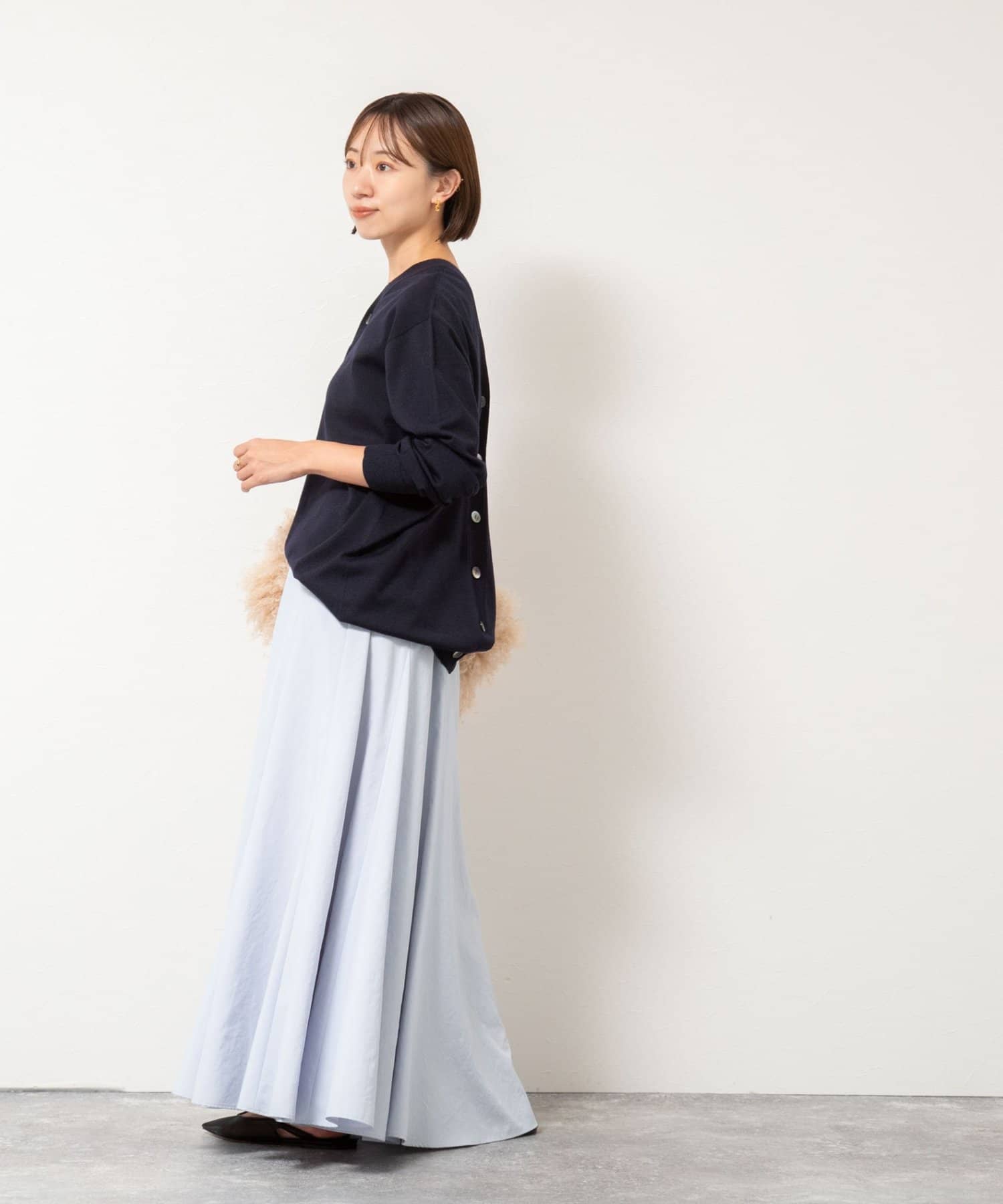 ・少し長めの着丈とゆとりのあるシルエットが、身体のラインを拾わないシルエット