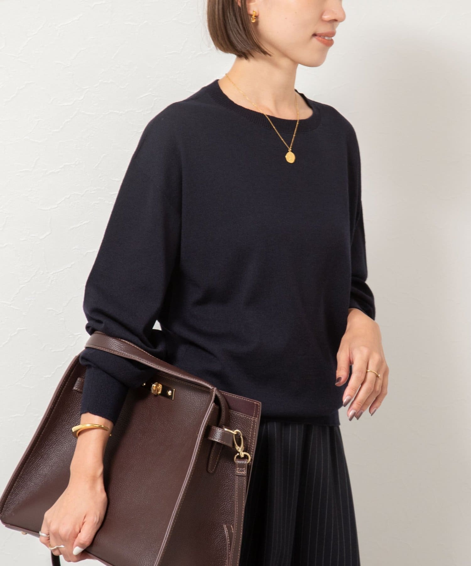 《手洗い可能》《アンサンブル対応》バウンドウールクルーネックプルオーバー