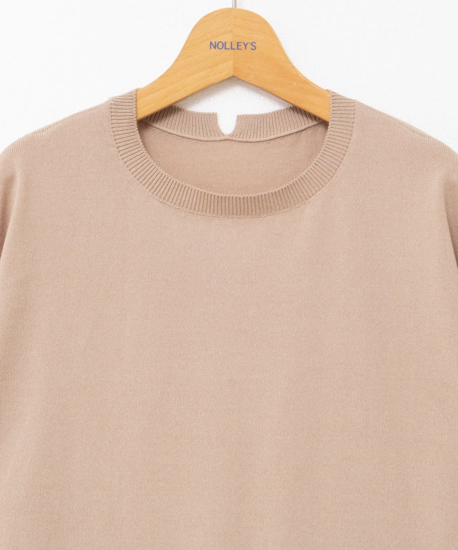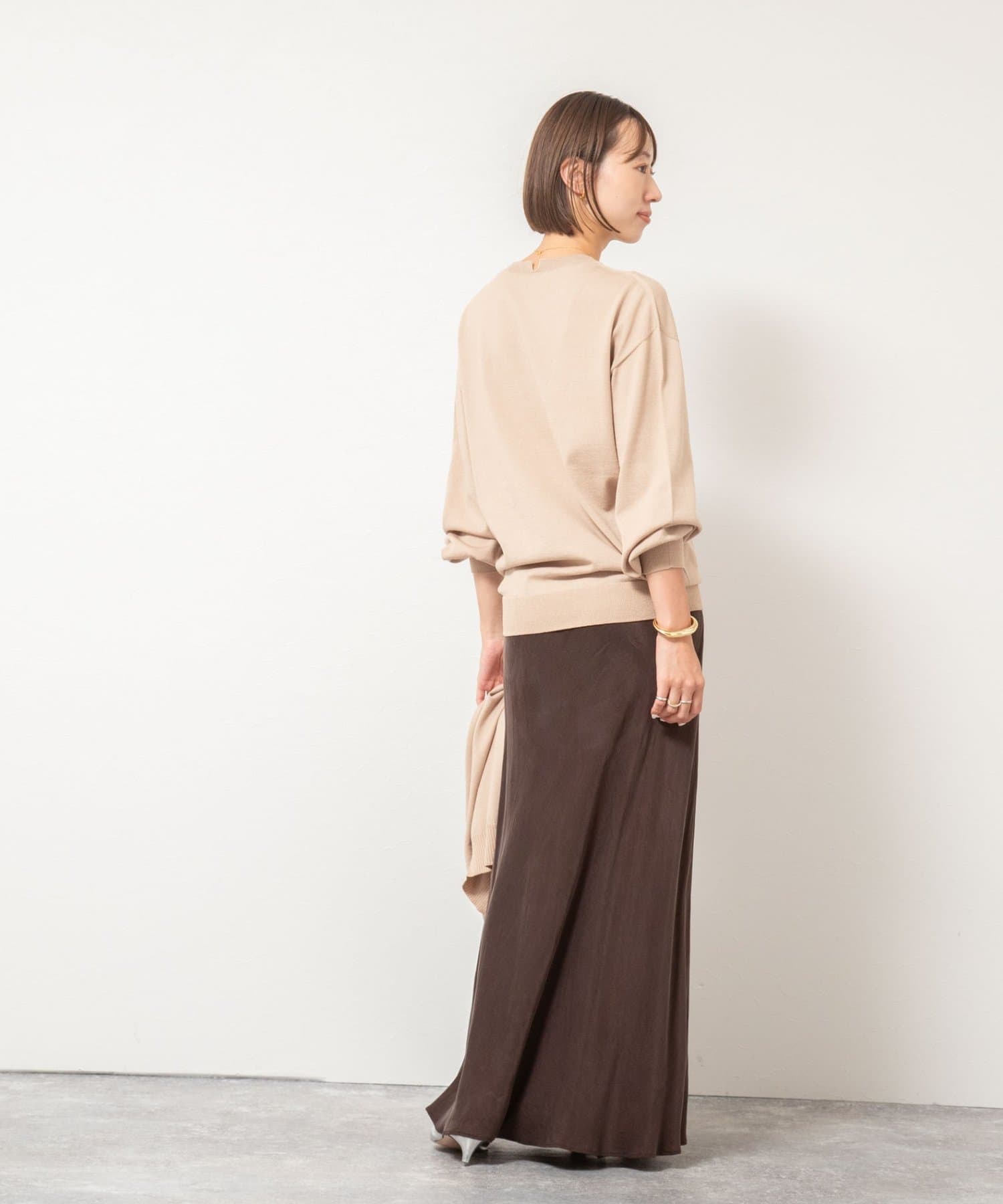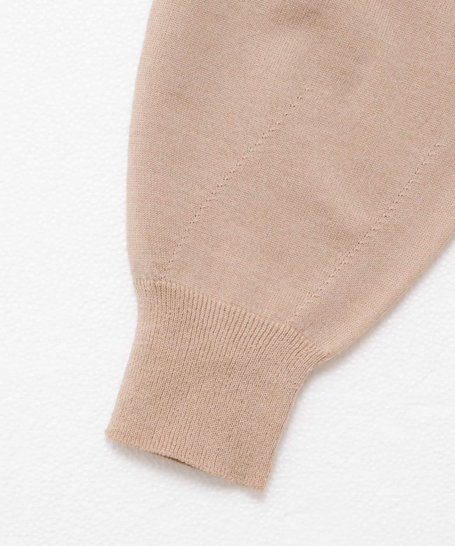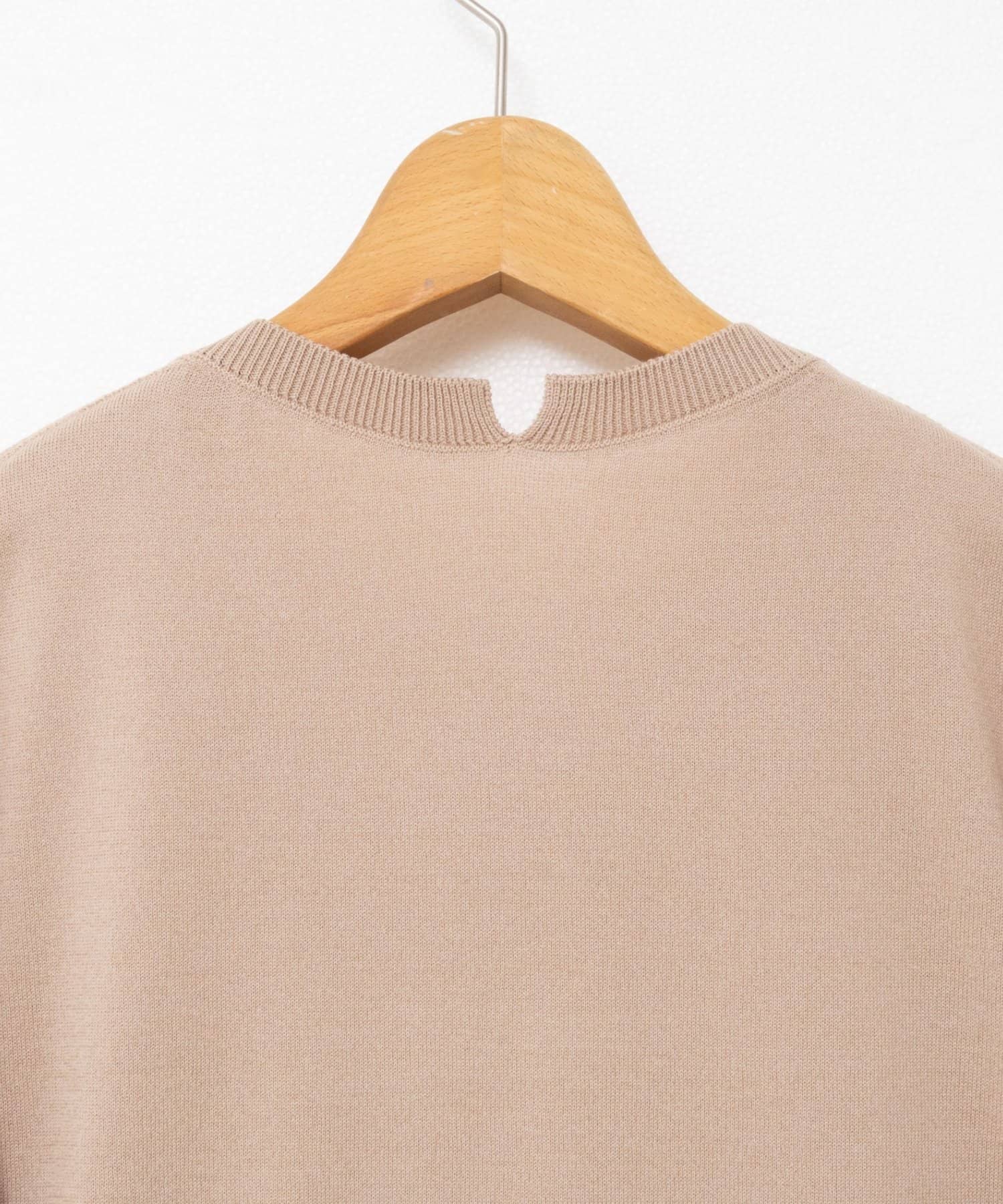 ・後ろネックのスリット開きと、袖口に入った目立て柄がさりげないポイント
