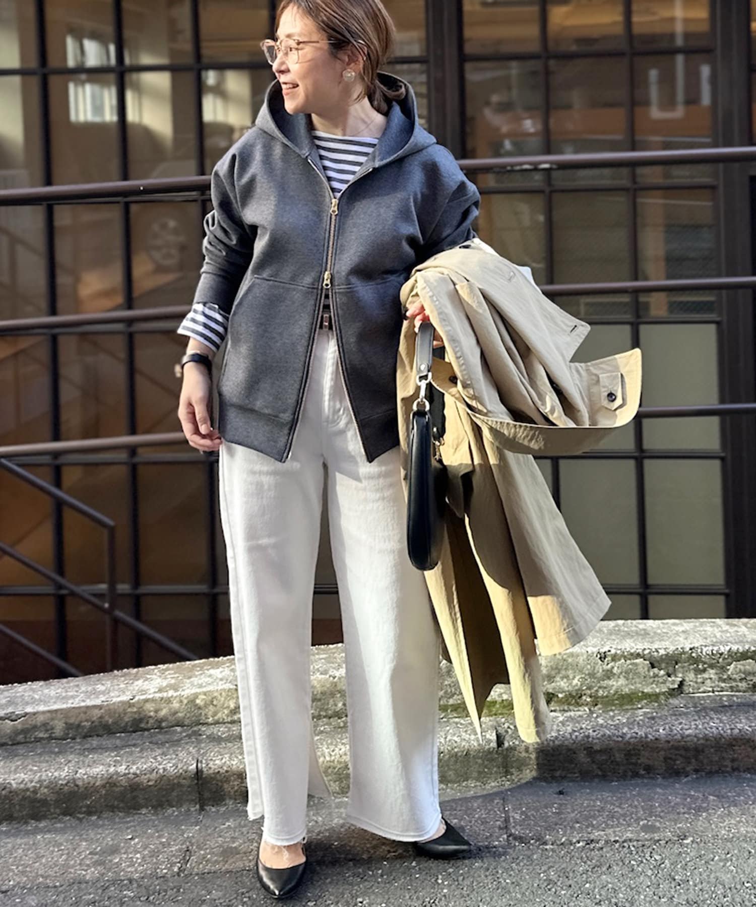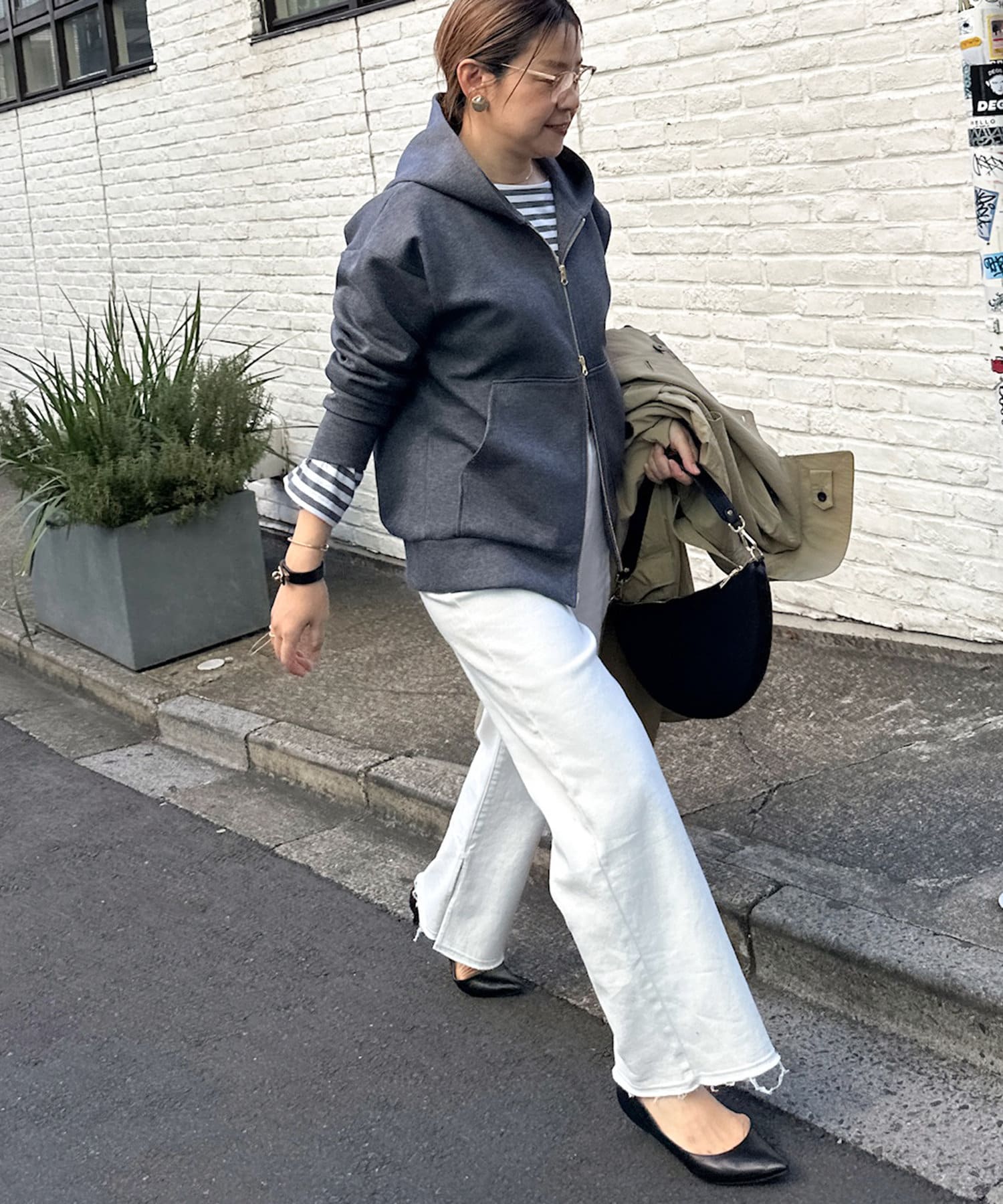 ・ジャケットやコートの中に着て、フードを見せる着こなしもおすすめ