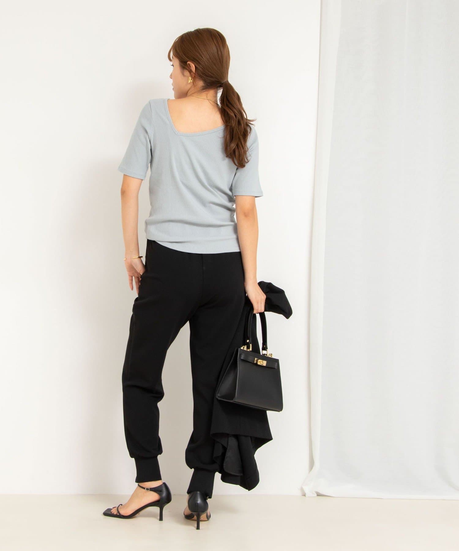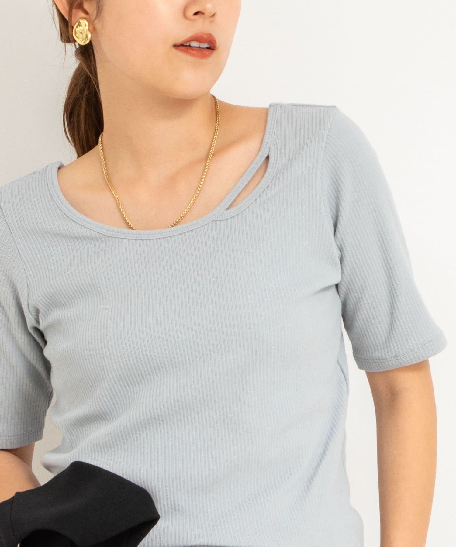 ・サイドカットが入ったゆったり開きのネックと変形Vネックのどちらも楽しめるのが魅力