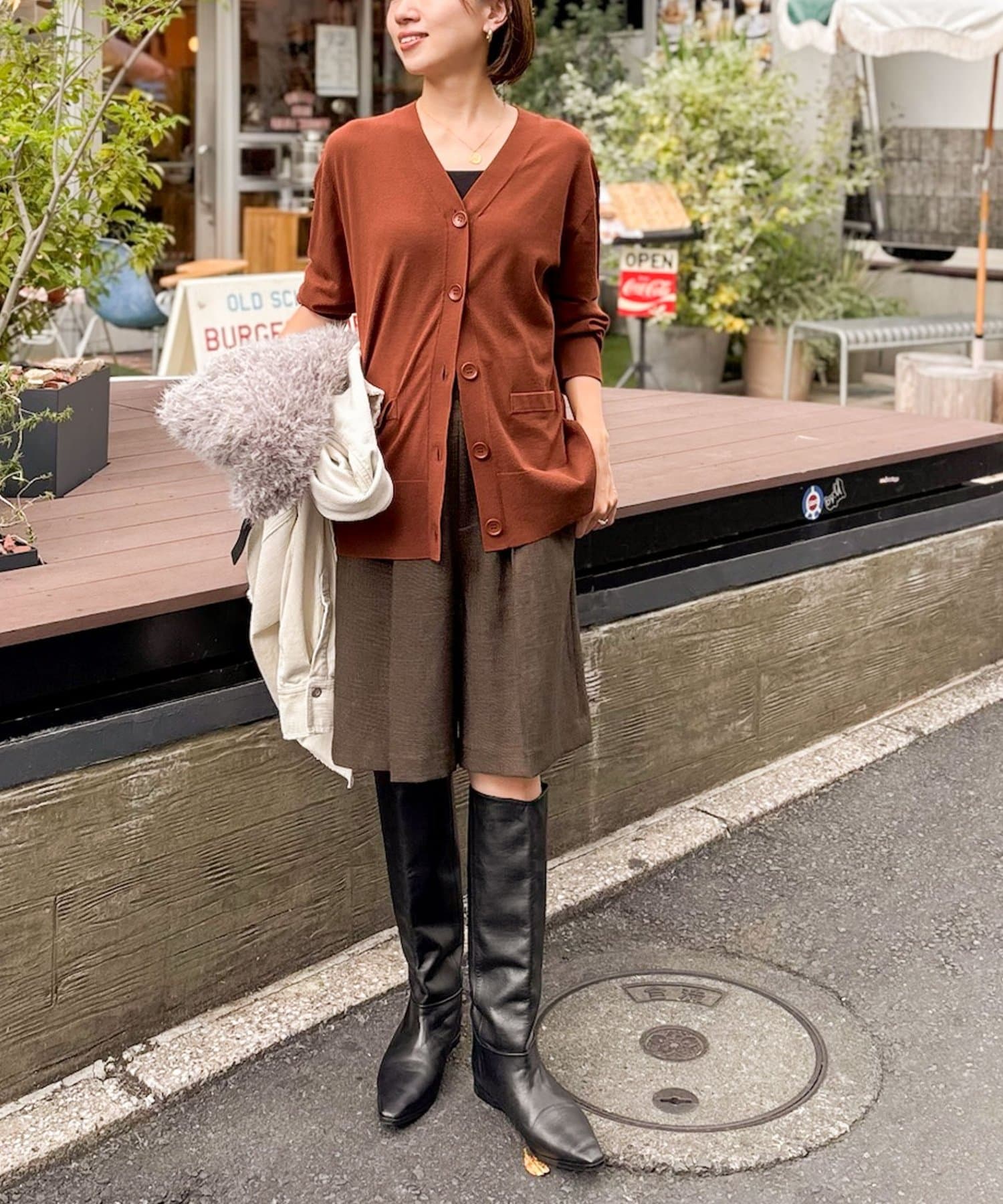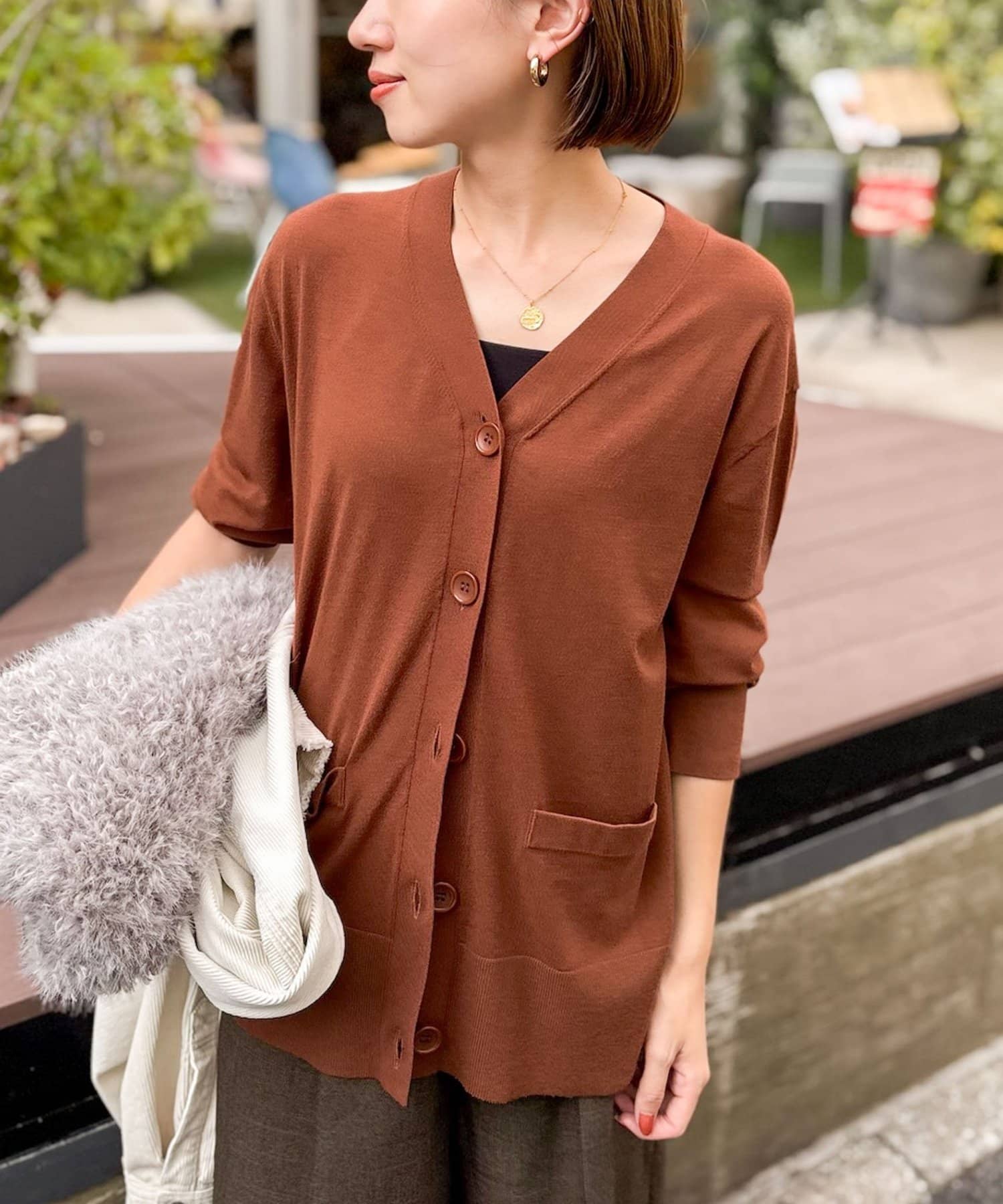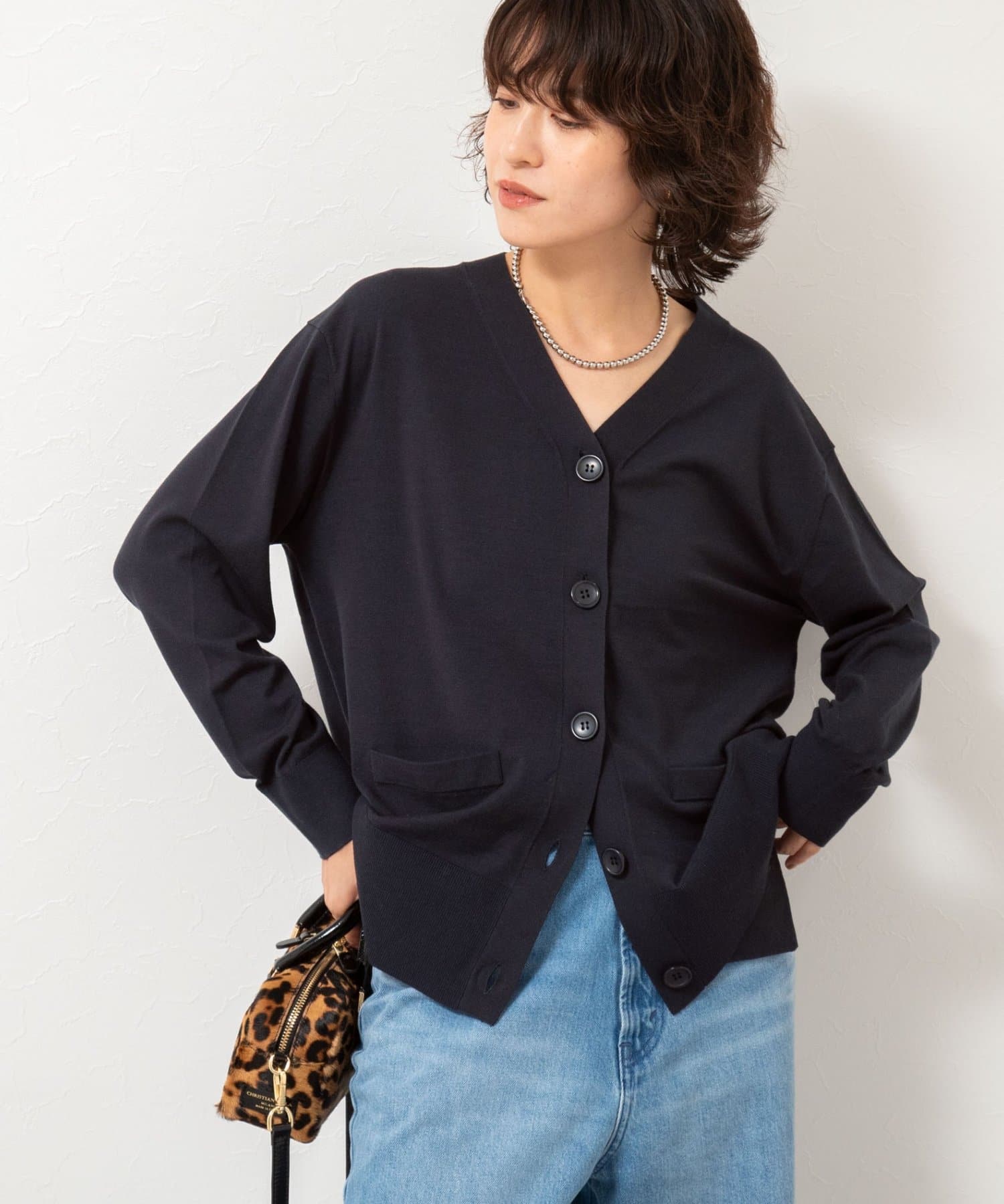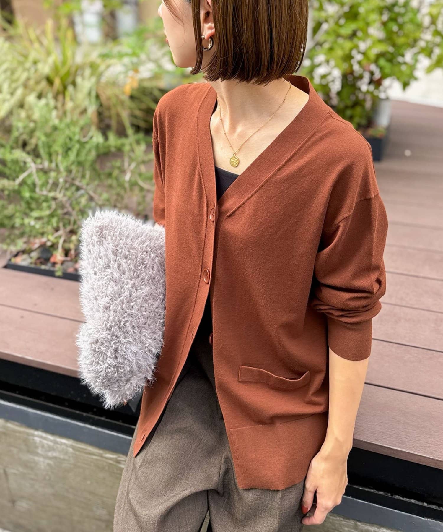・シルクのツヤが品の良いオリジナル素材のニットで作ったVネックカーディガン
