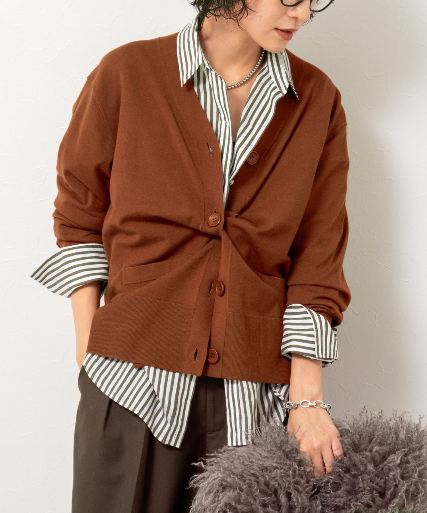 《手洗い可能》《セットアップ対応》BIGシルエットVネックカーディガン