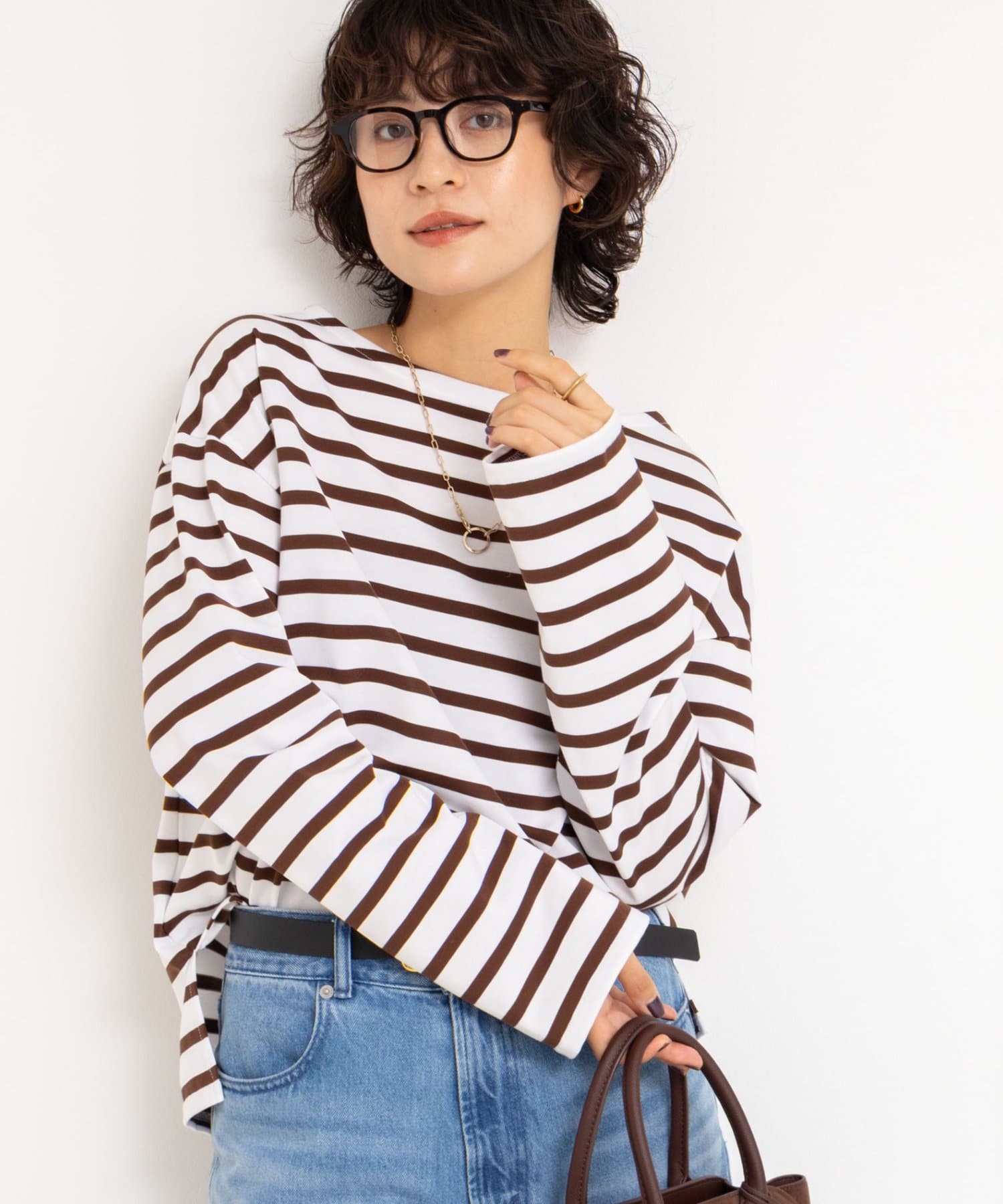 TOP > NOLLEY'S > レディース > トップス > Tシャツ/カットソー > BIGマリンボーダーボートネックプルオーバーカットソー