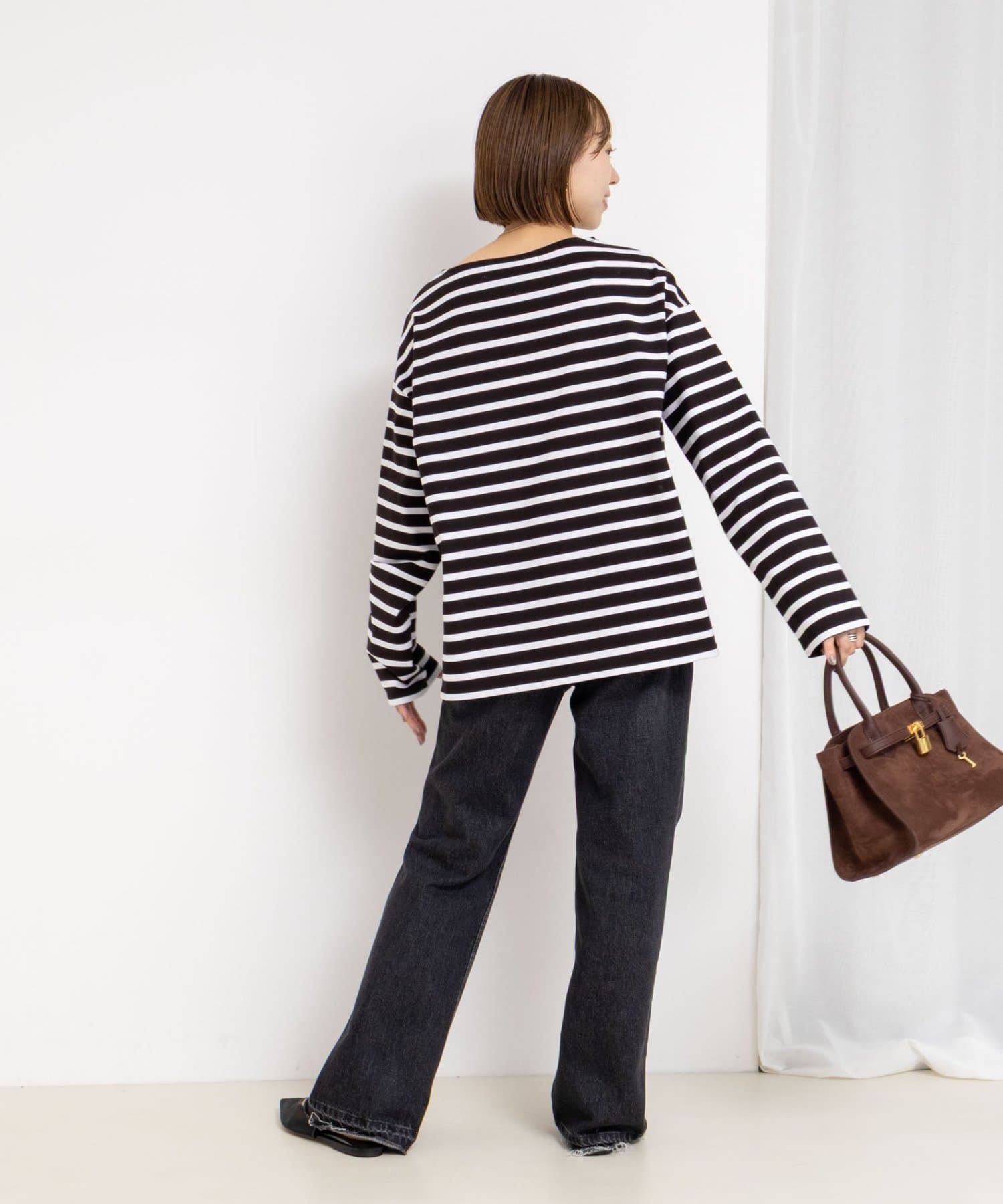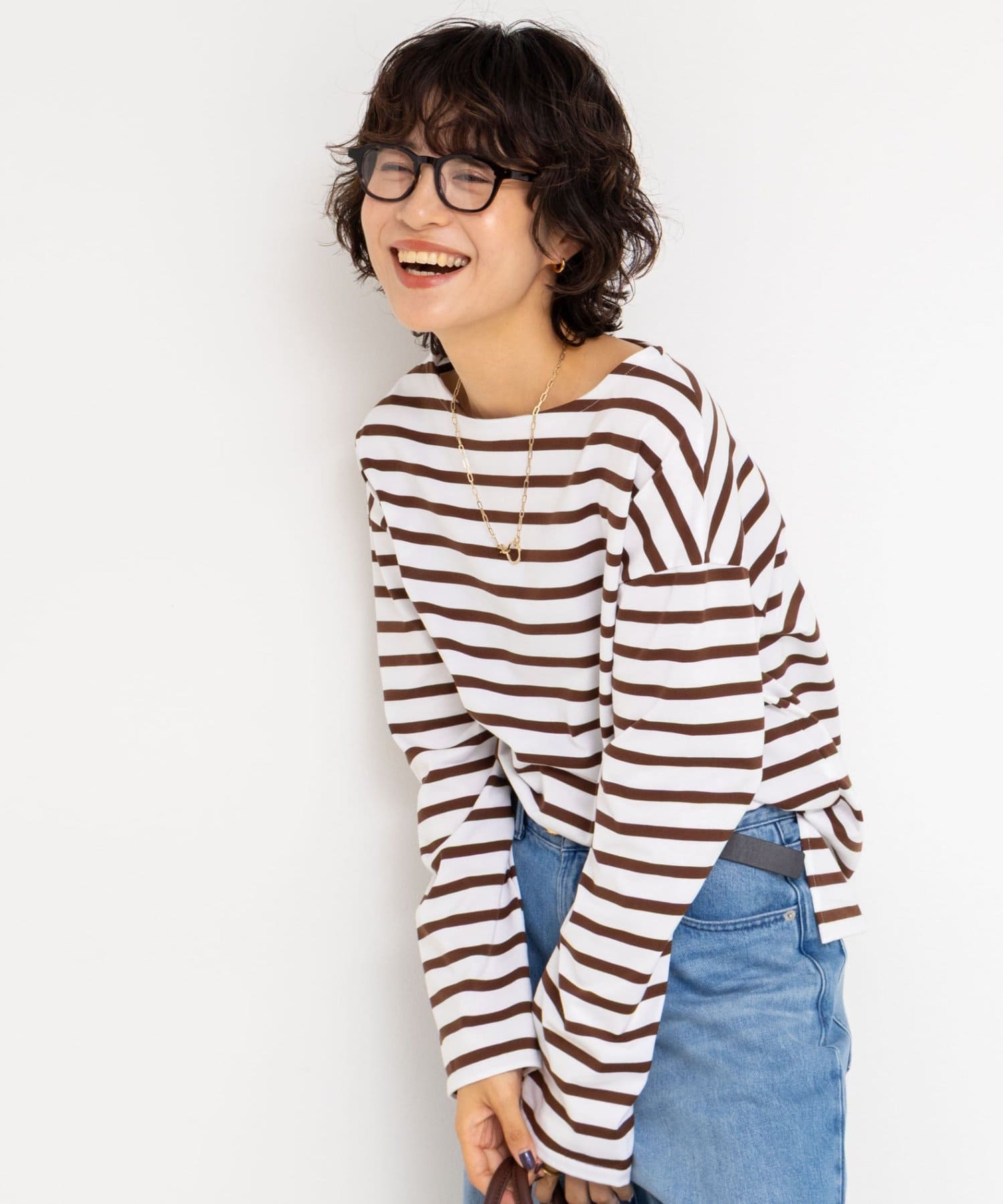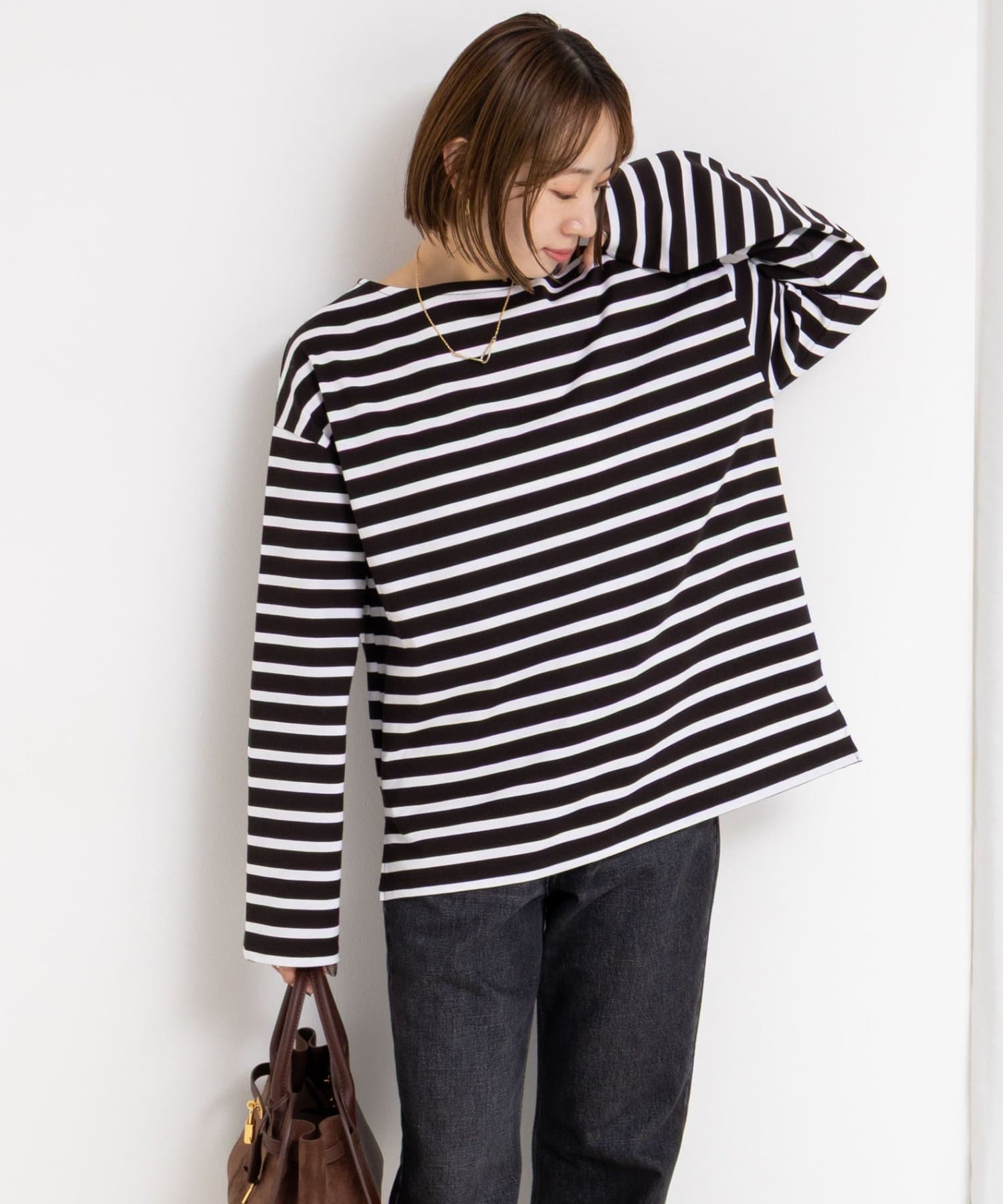 BIGマリンボーダーボートネックプルオーバーカットソー