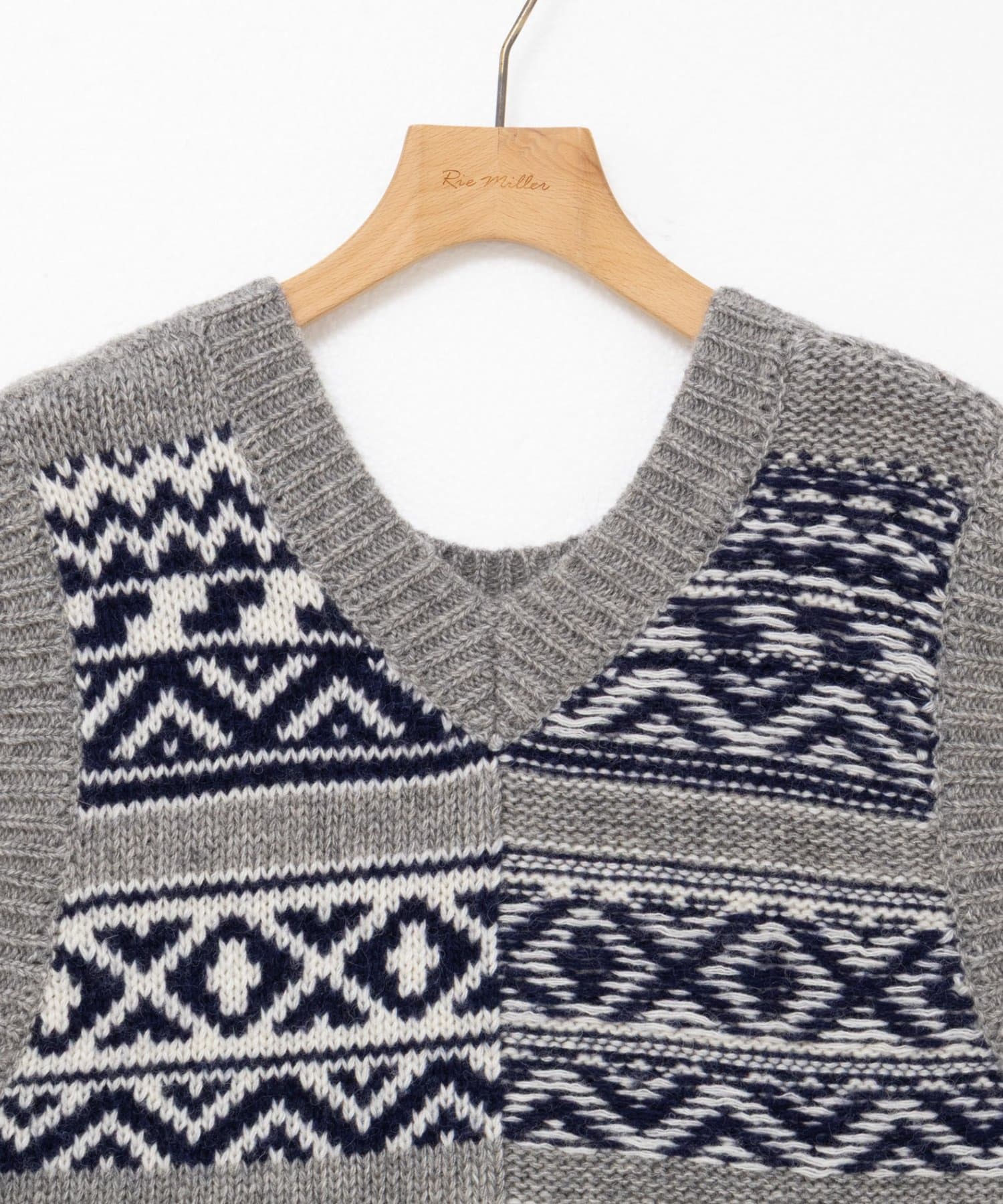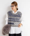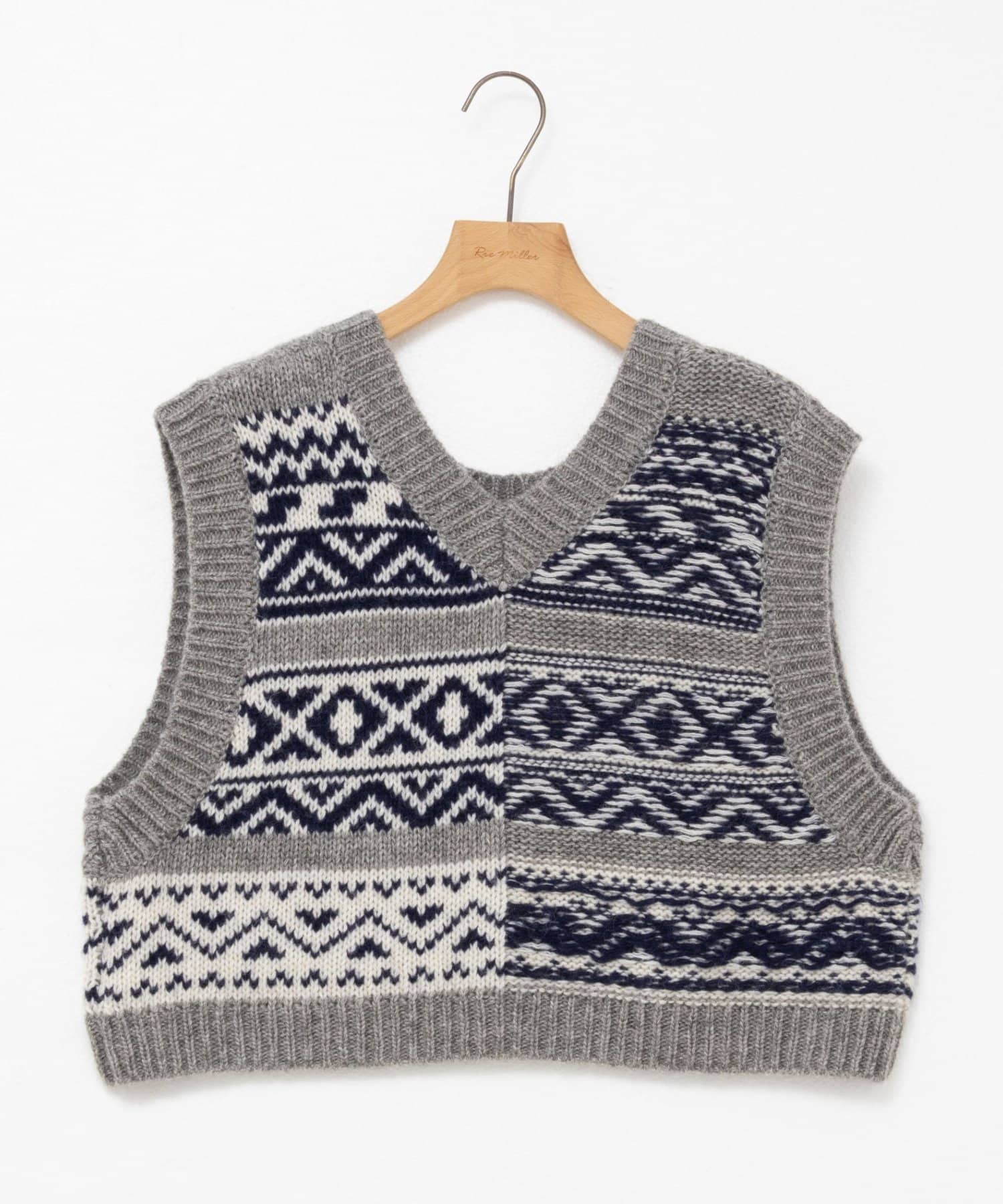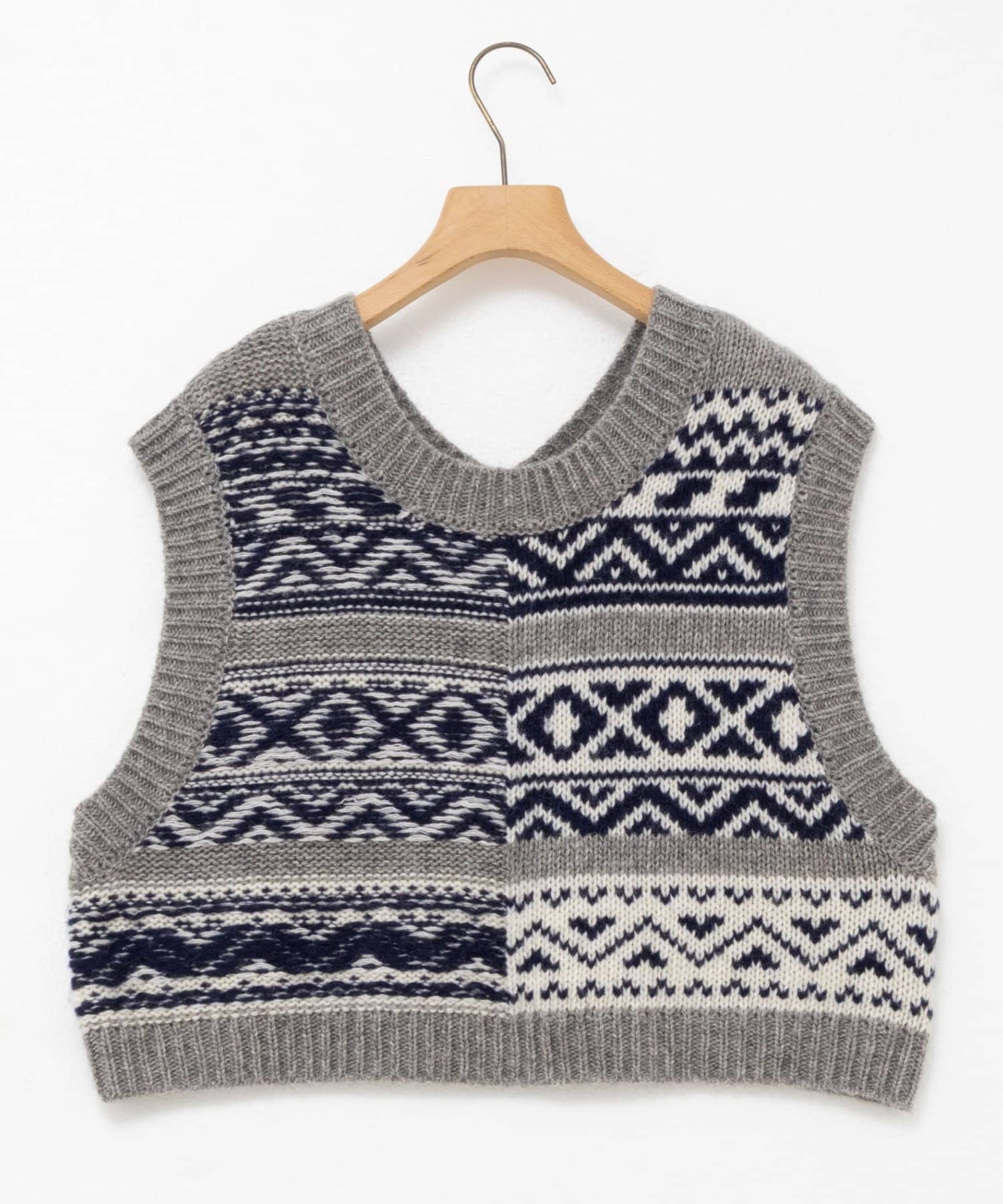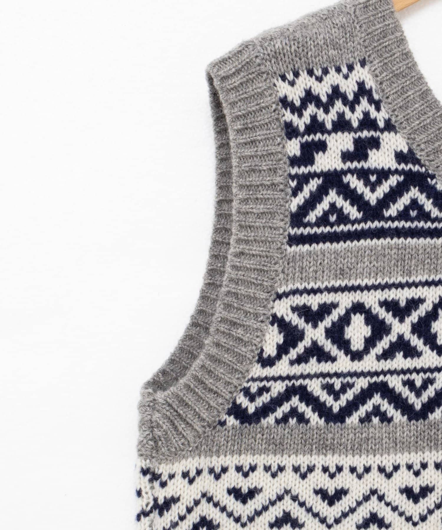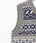 ・シェットランドウール混の糸を使用し、アシンメトリーデザインにしたノルディック柄のベスト