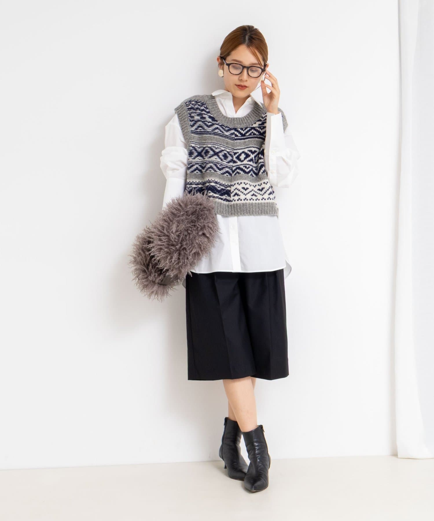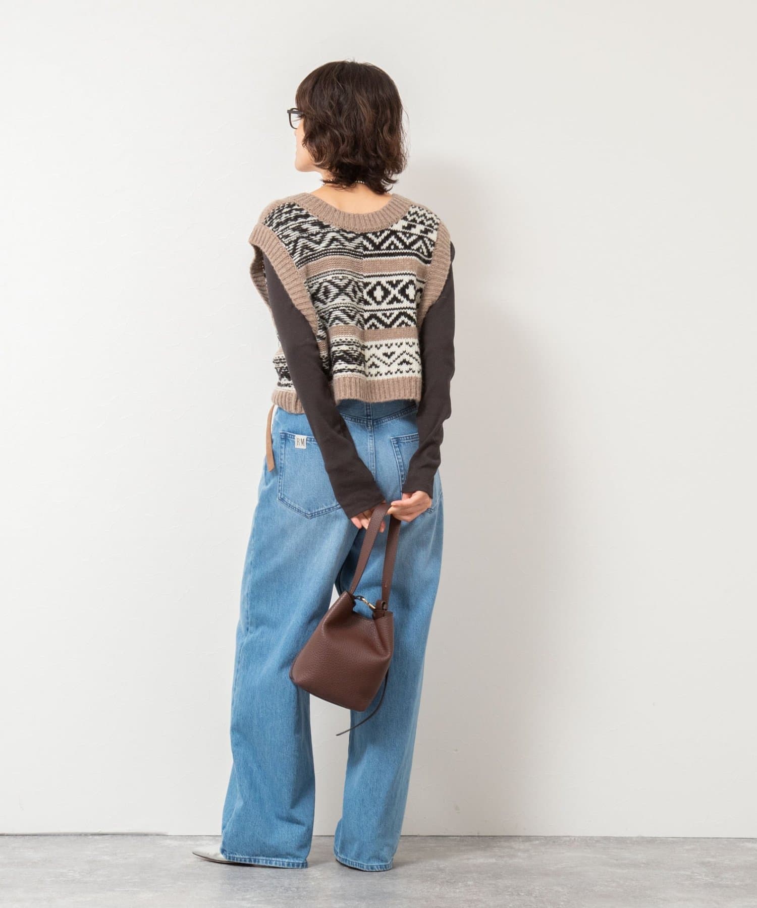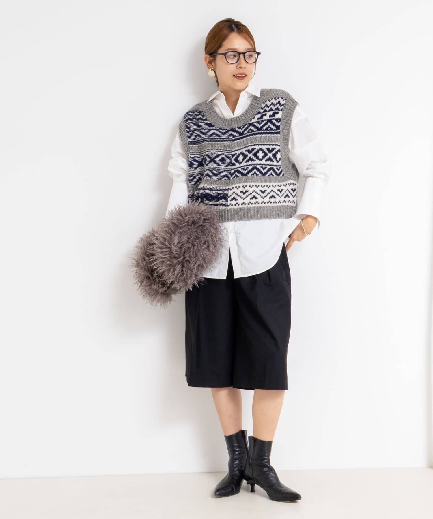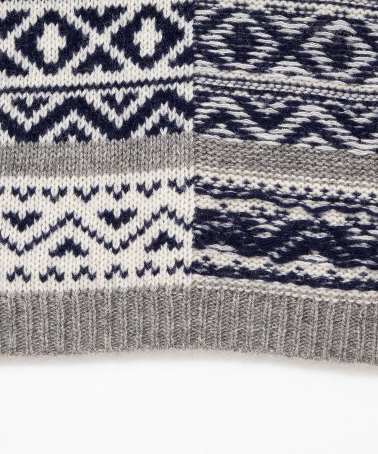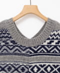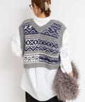 ・シェットランドウール混の糸を使用し、アシンメトリーデザインにしたノルディック柄のベスト