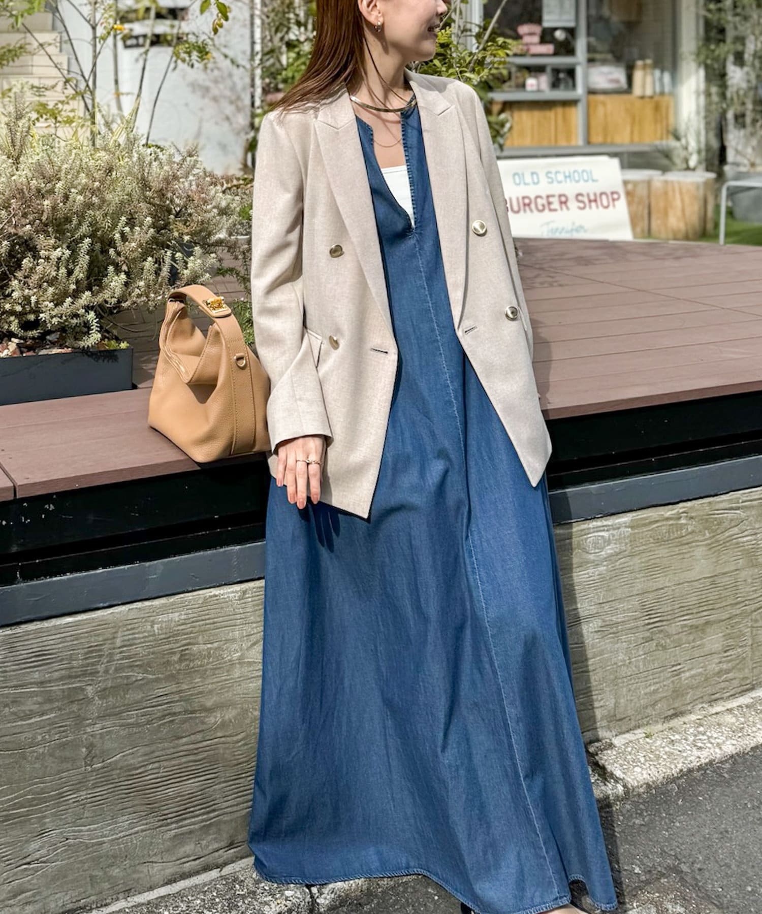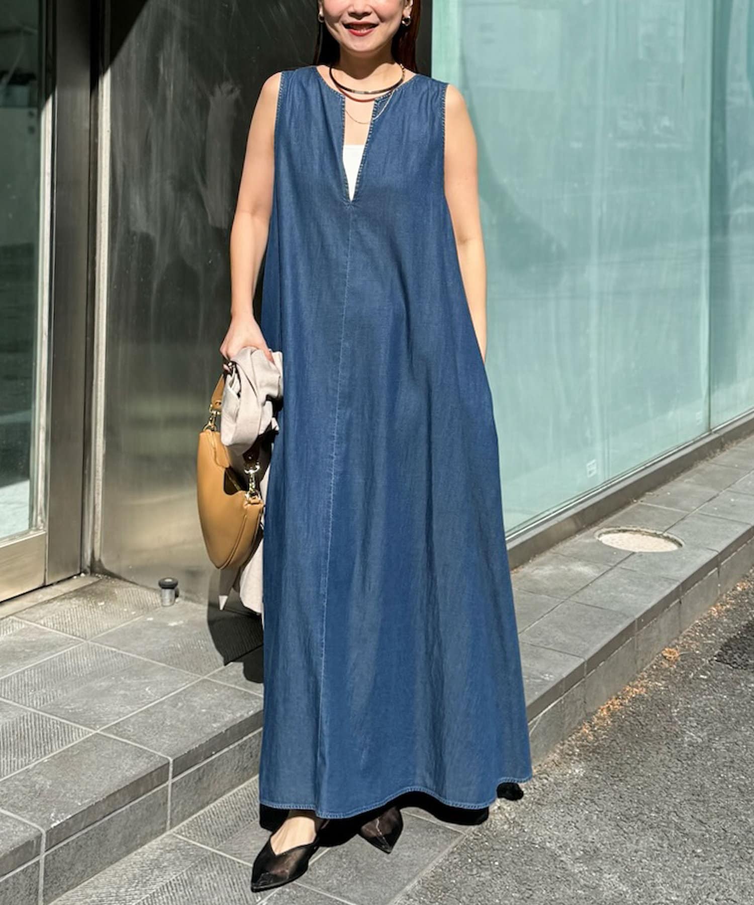 ・1枚でお出かけスタイルが決まるマキシ丈デニムワンピース