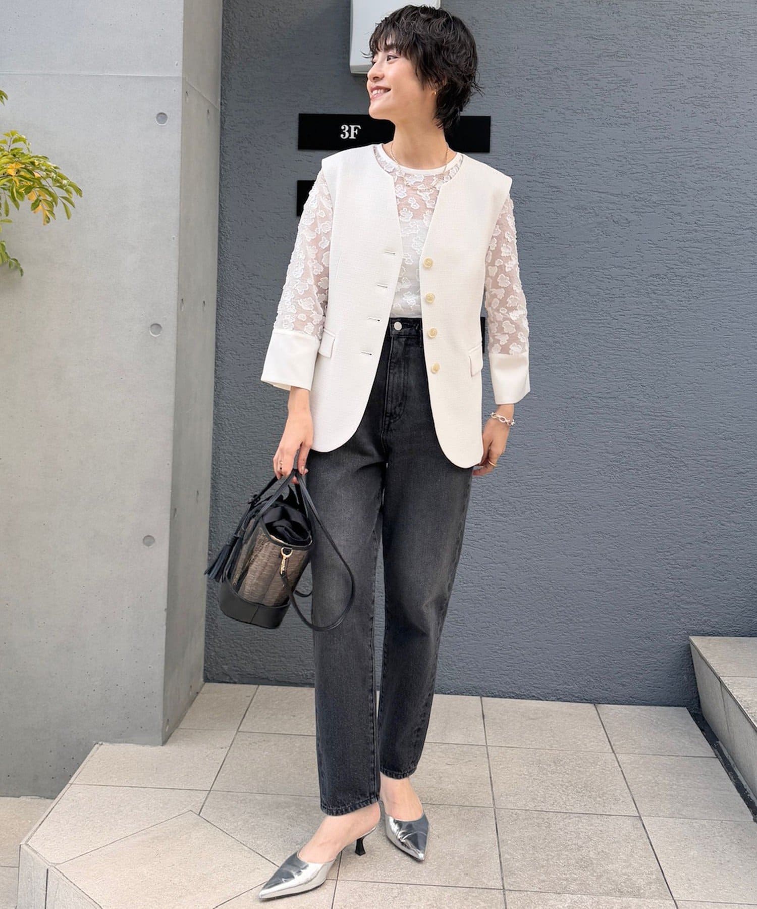 ・春らしいピンクはよりきれいめなスタイリングが可能