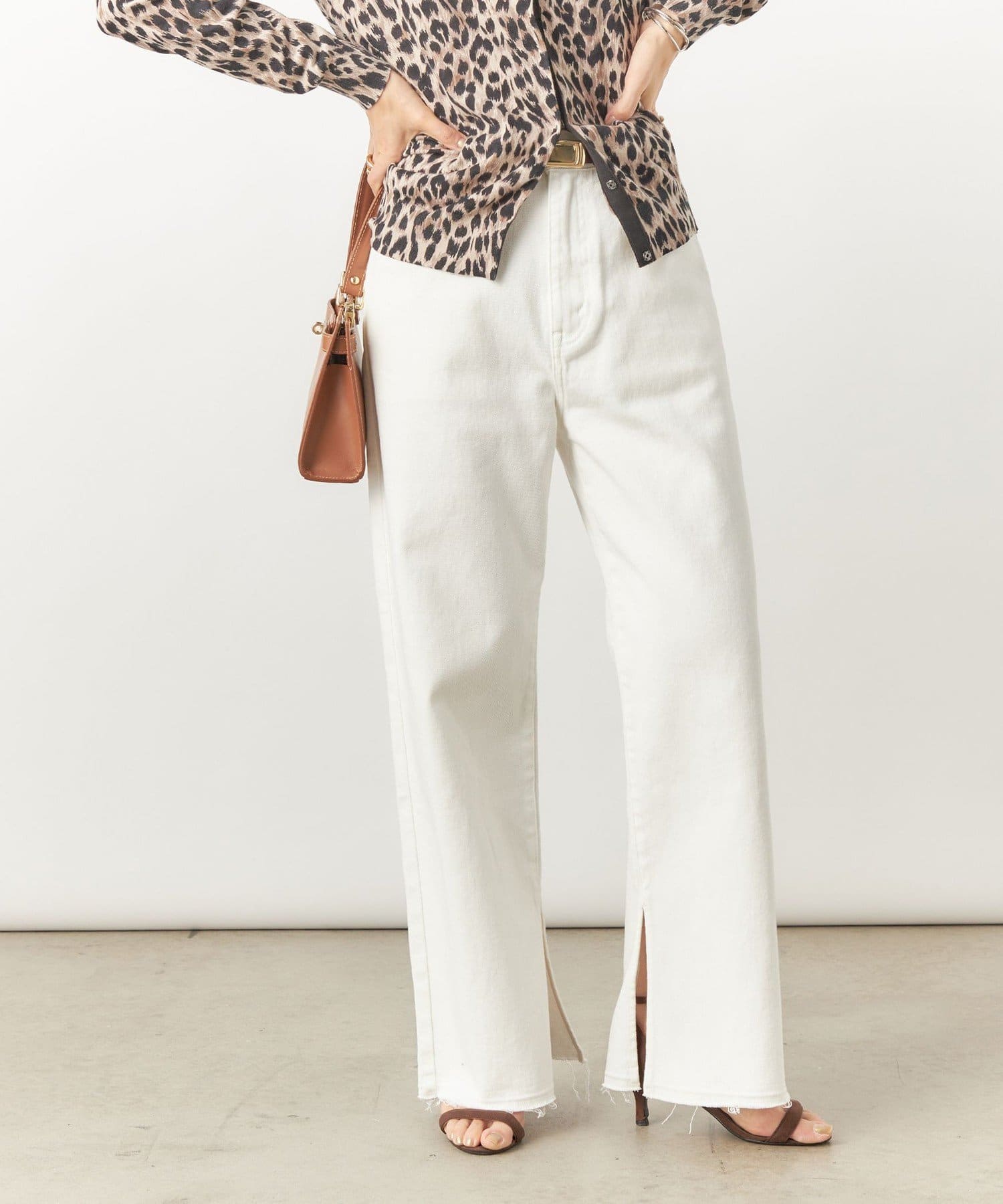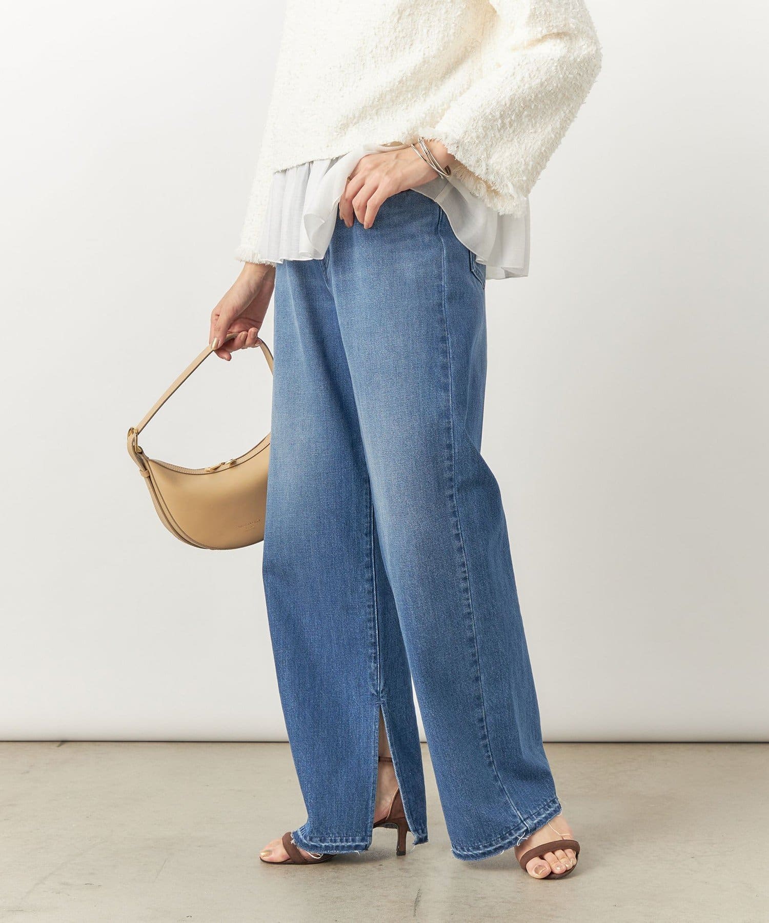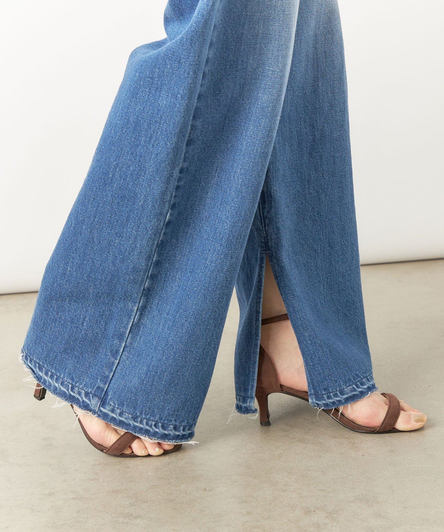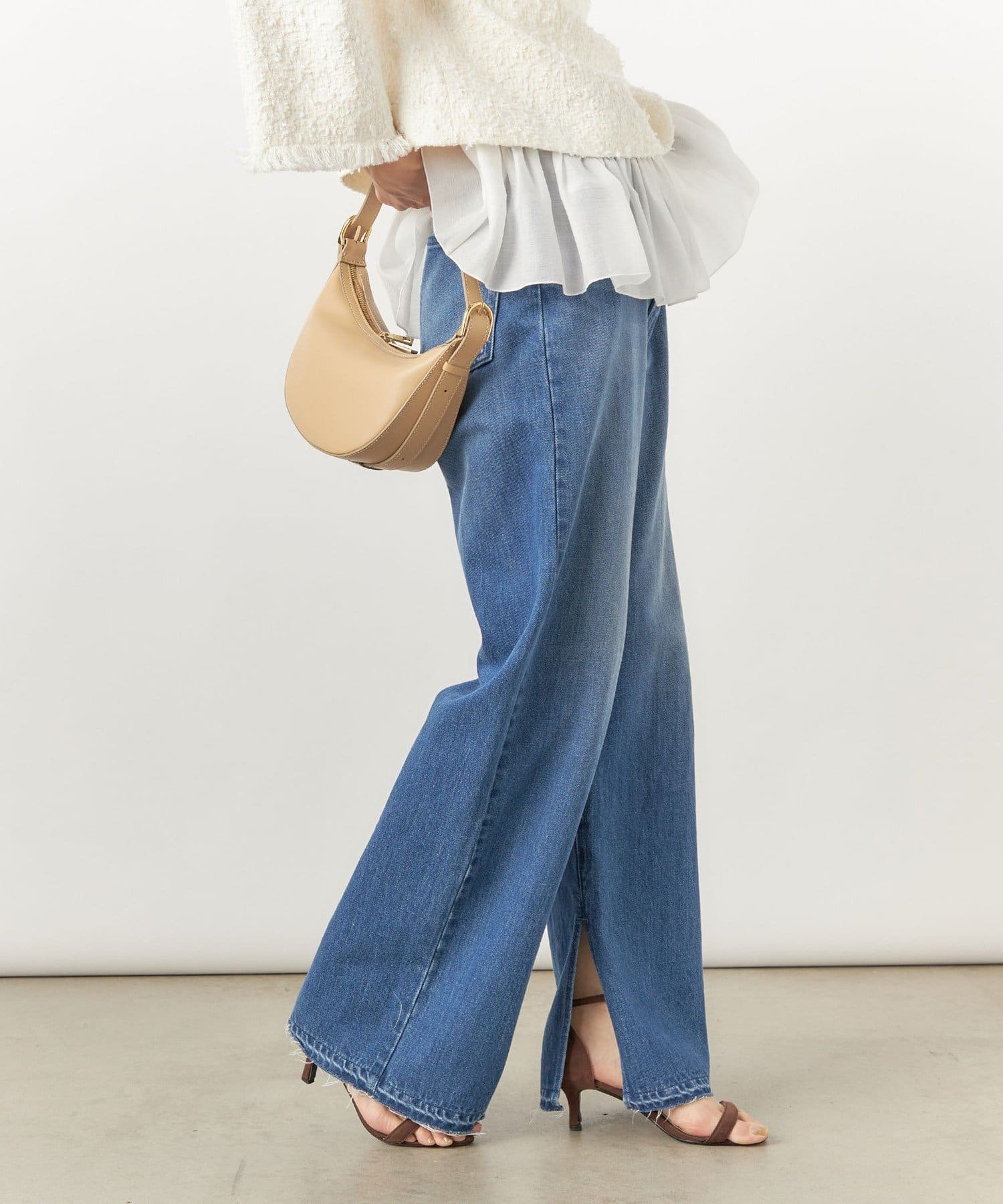 ・裾内側に入れた深めのスリットがポイントのデニムパンツ