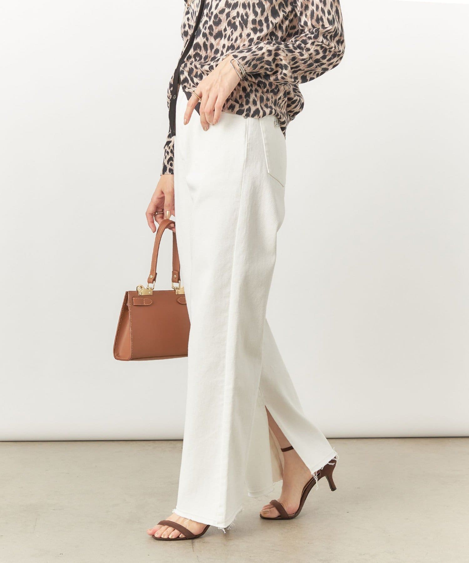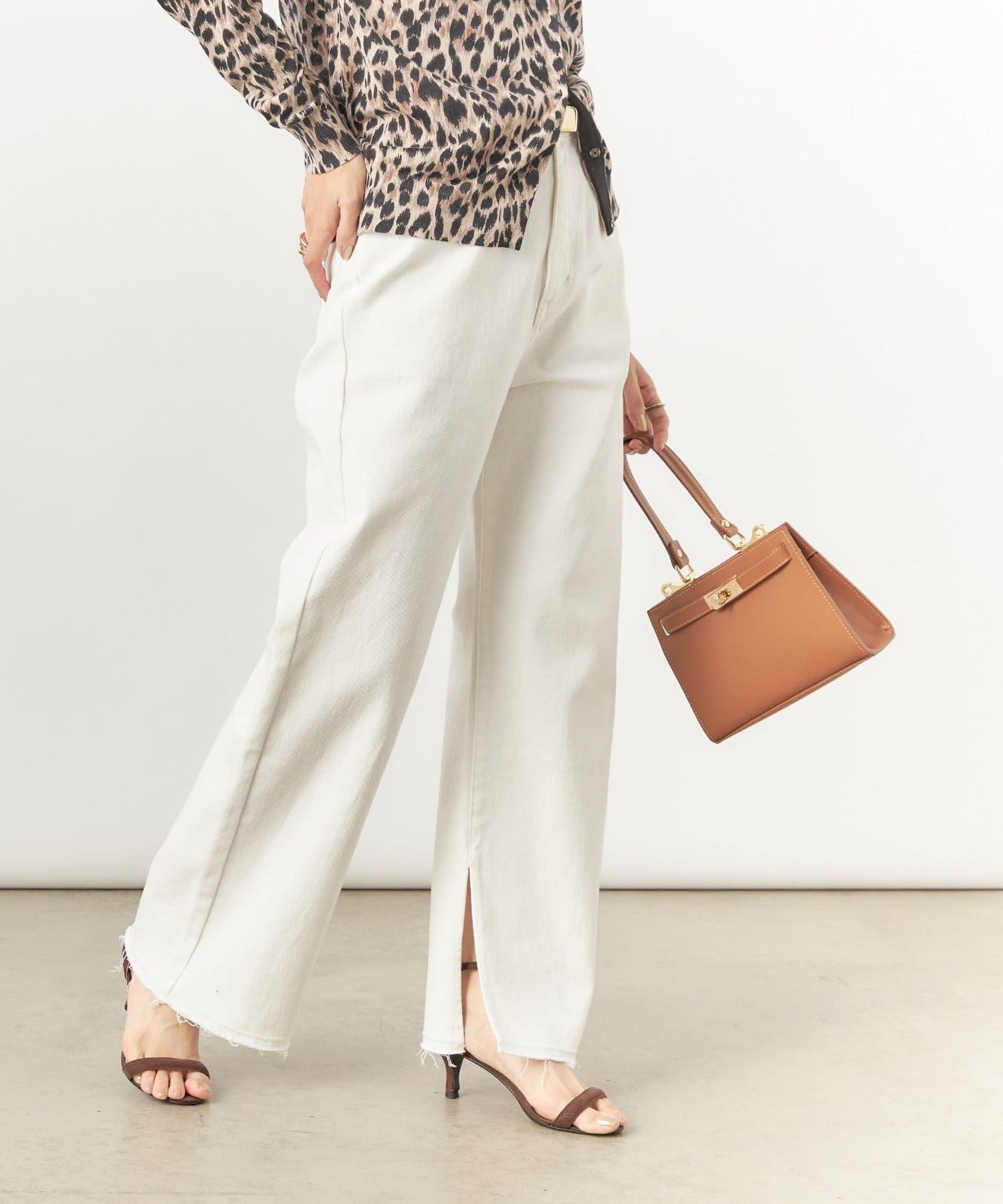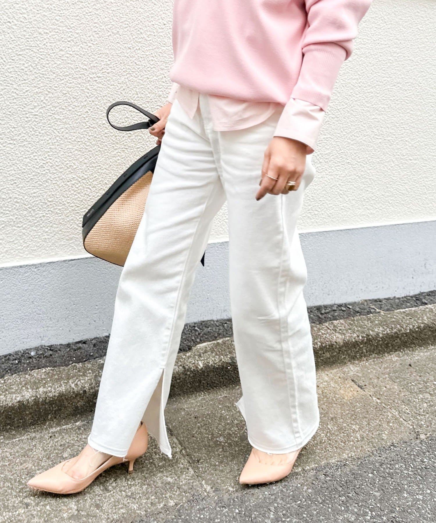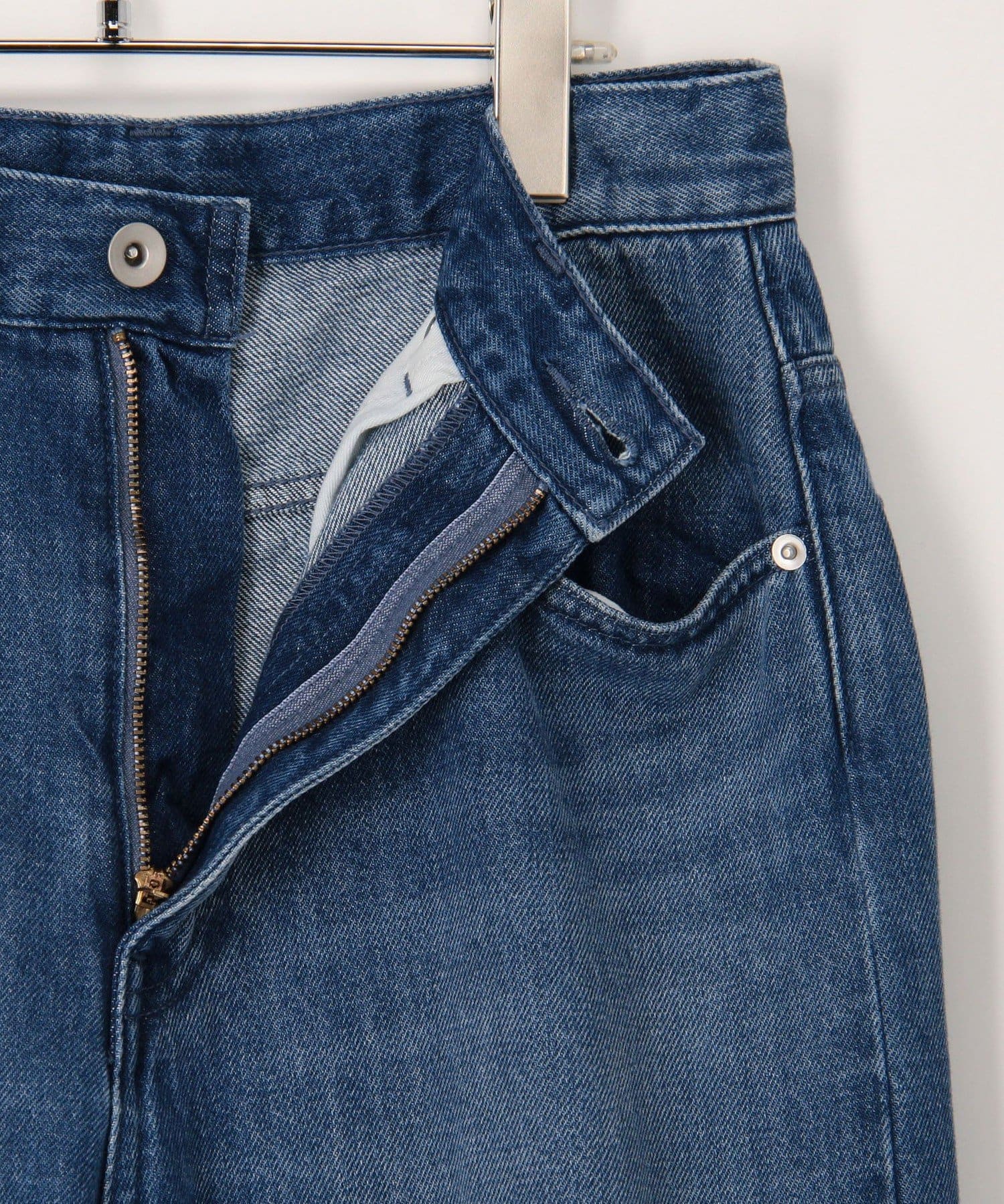 ・裾内側に入れた深めのスリットがポイントのデニムパンツ