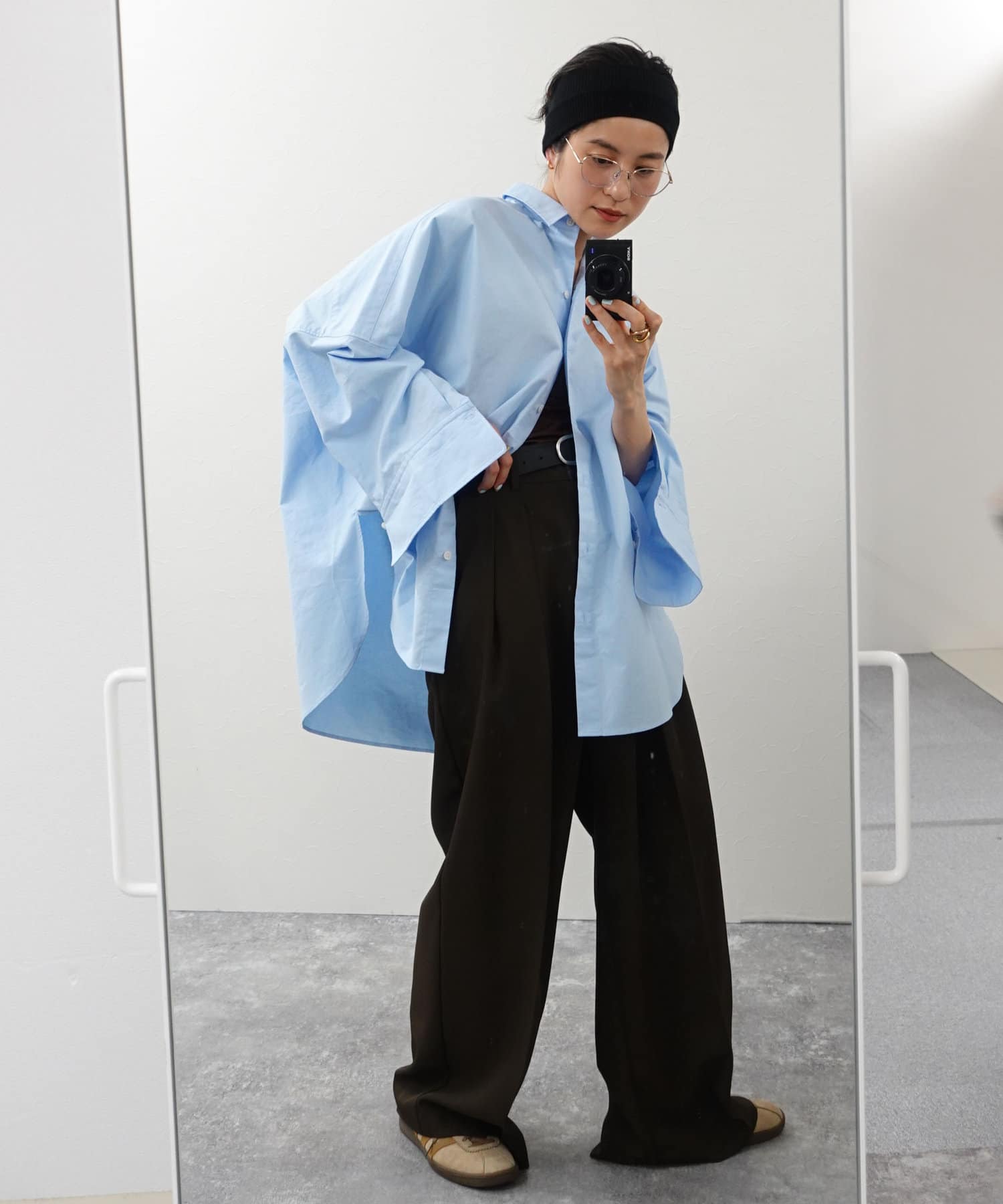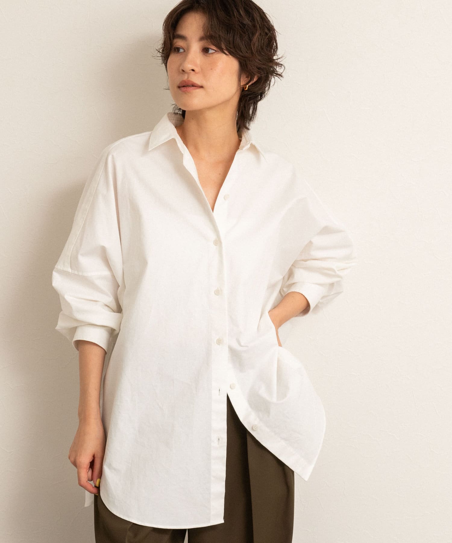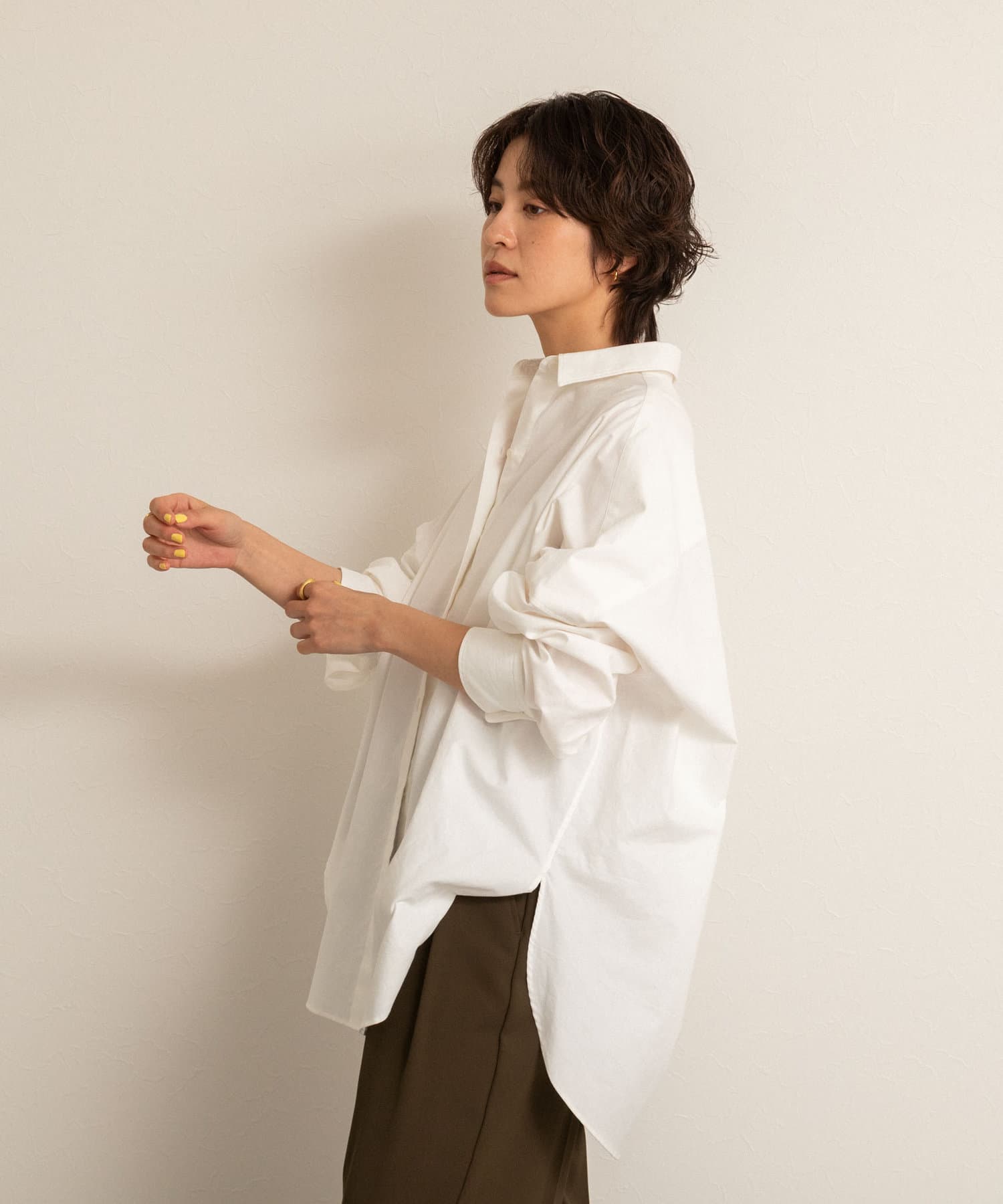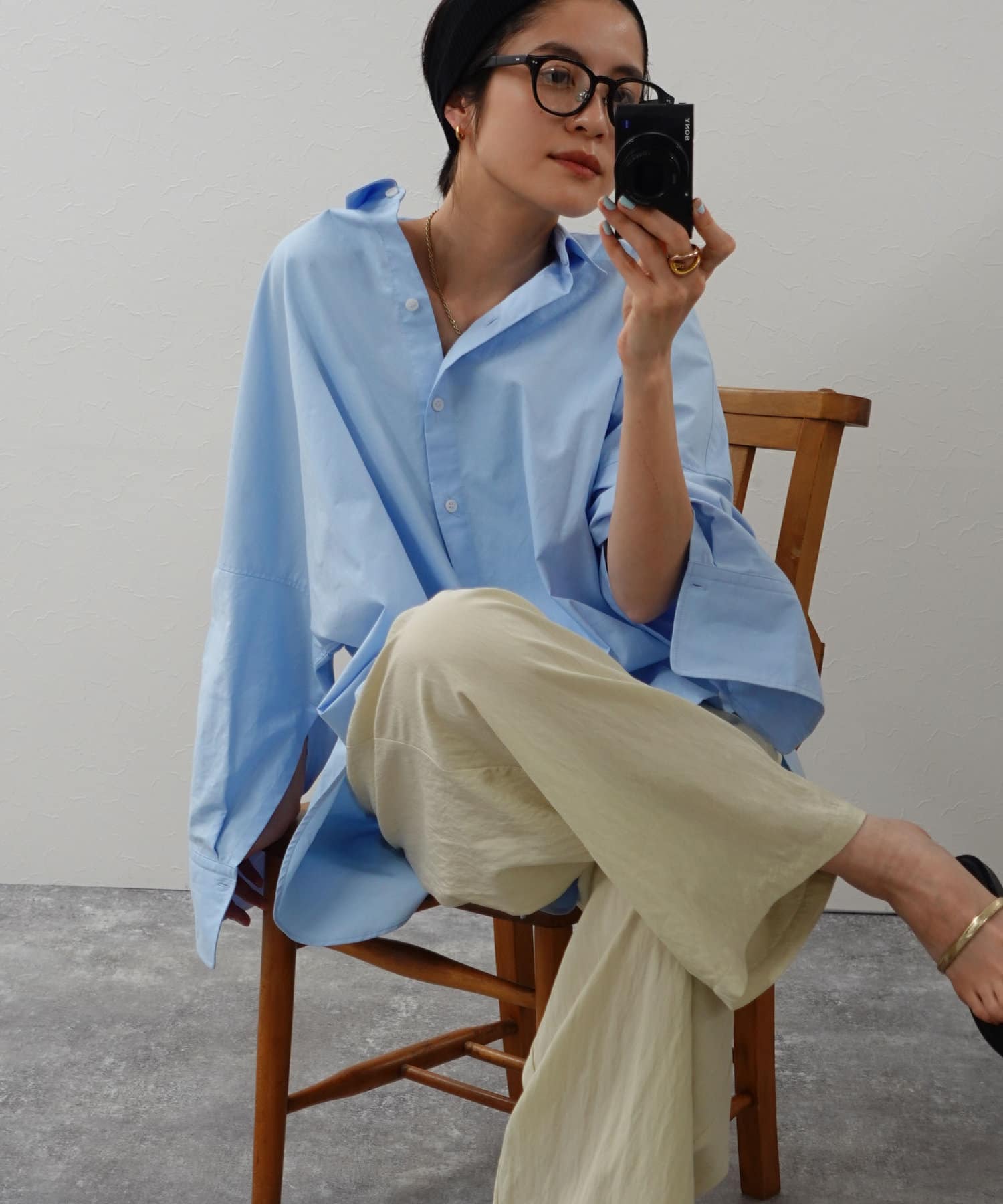 ・肩落ちシルエットとオーバーサイズで、さらっと着るだけでこなれ感のある印象に