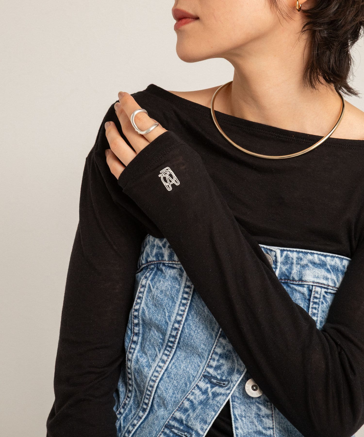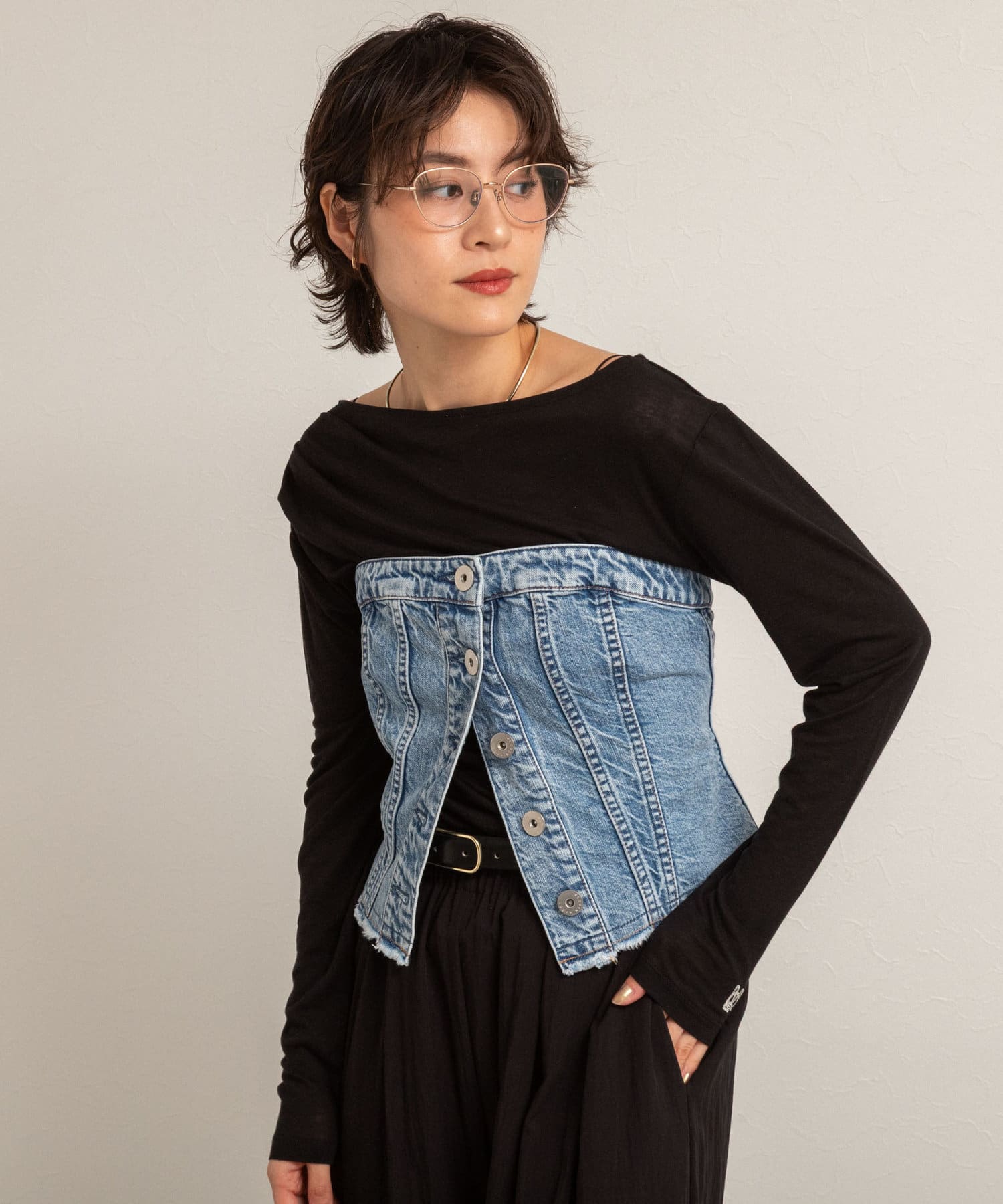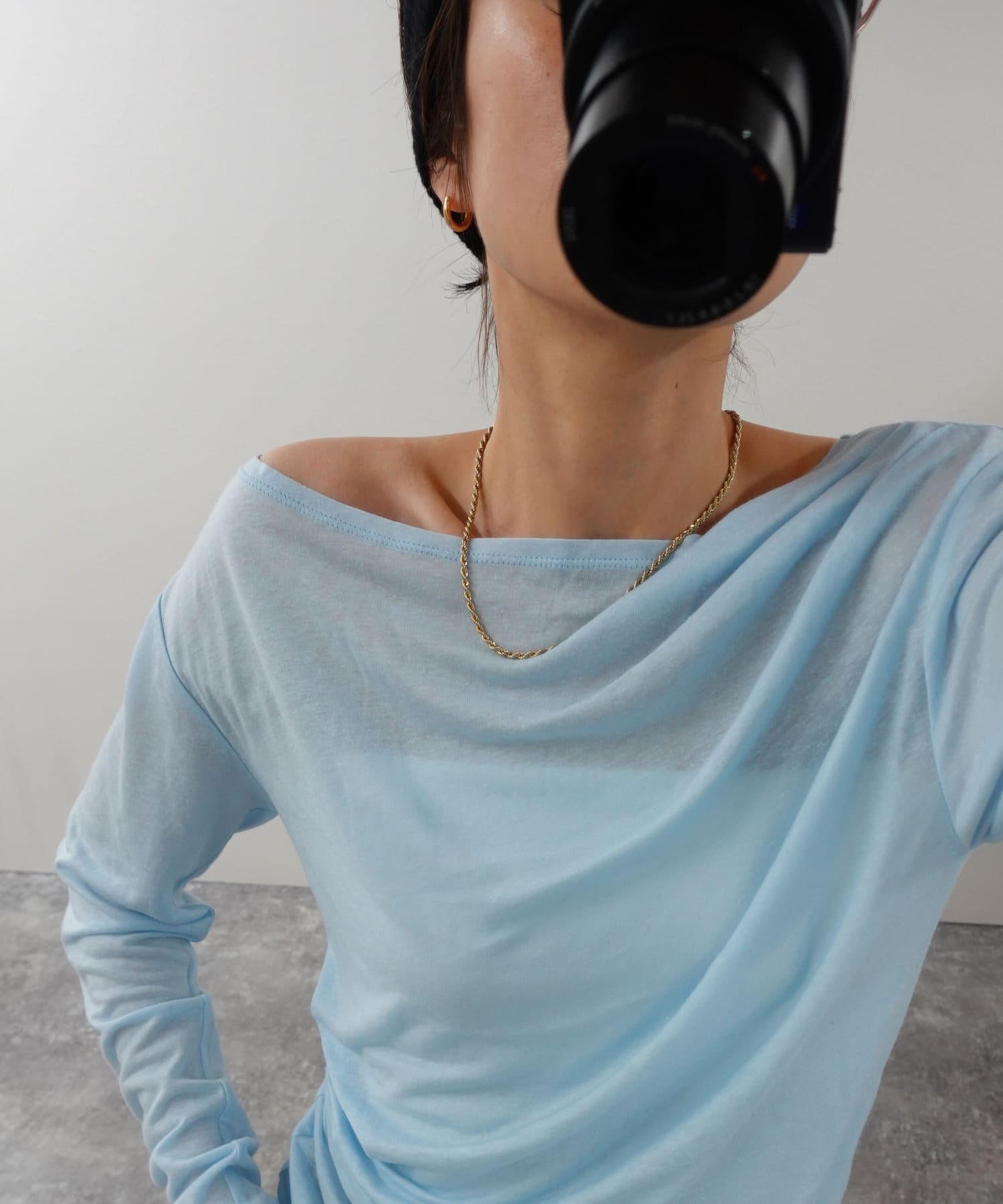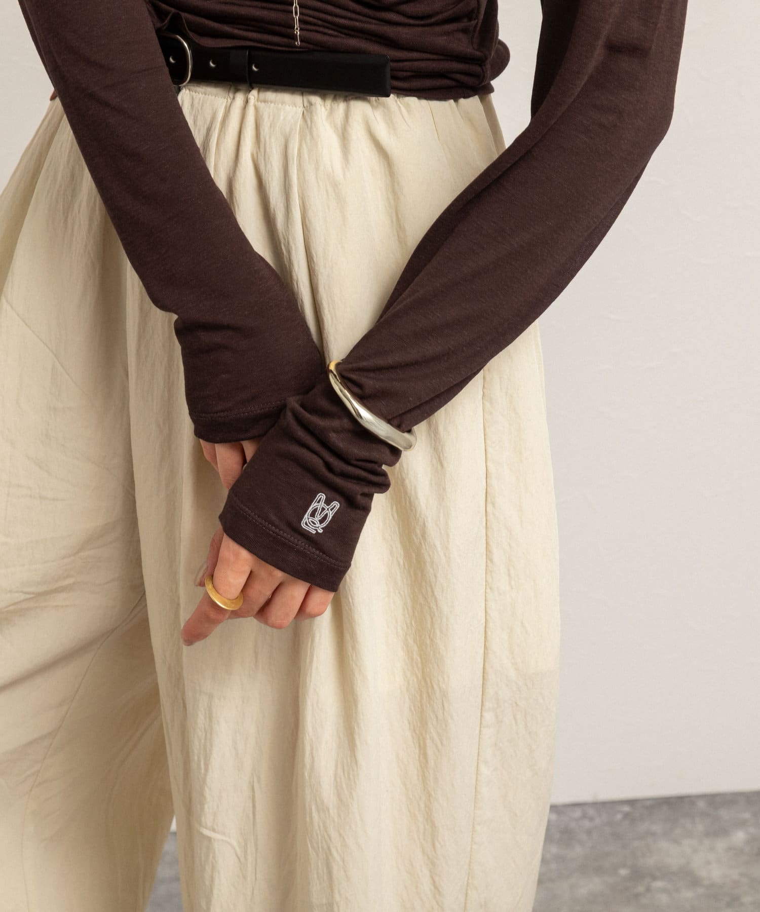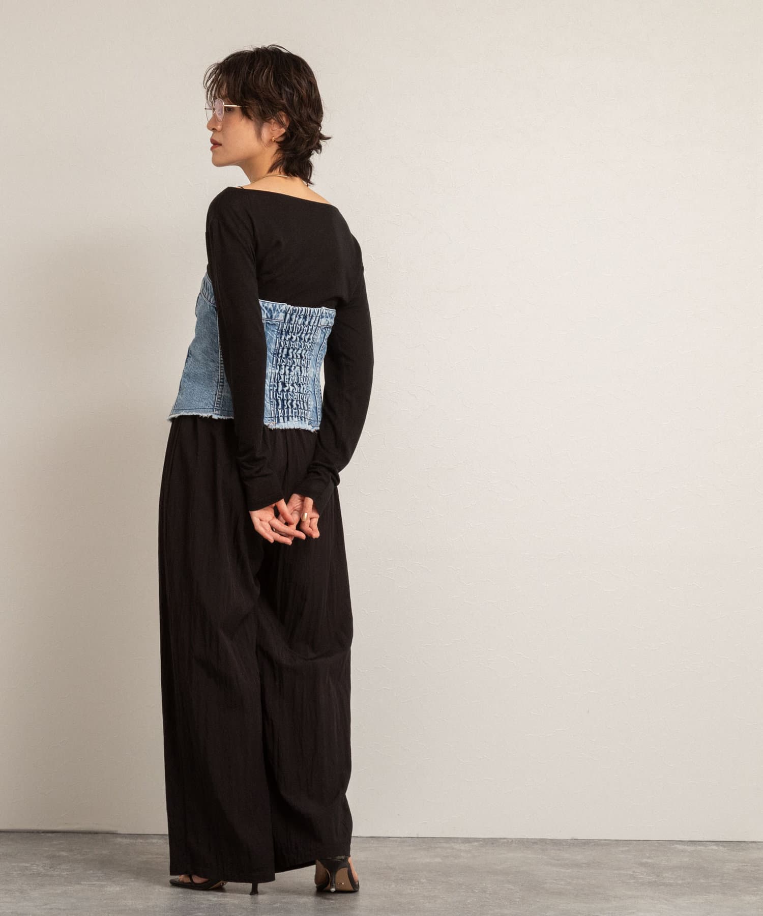 ・右肩と左ウエストにタックを入れることで、1枚でシンプルに着たときにも軽やかで動きのあるこなれた印象に
