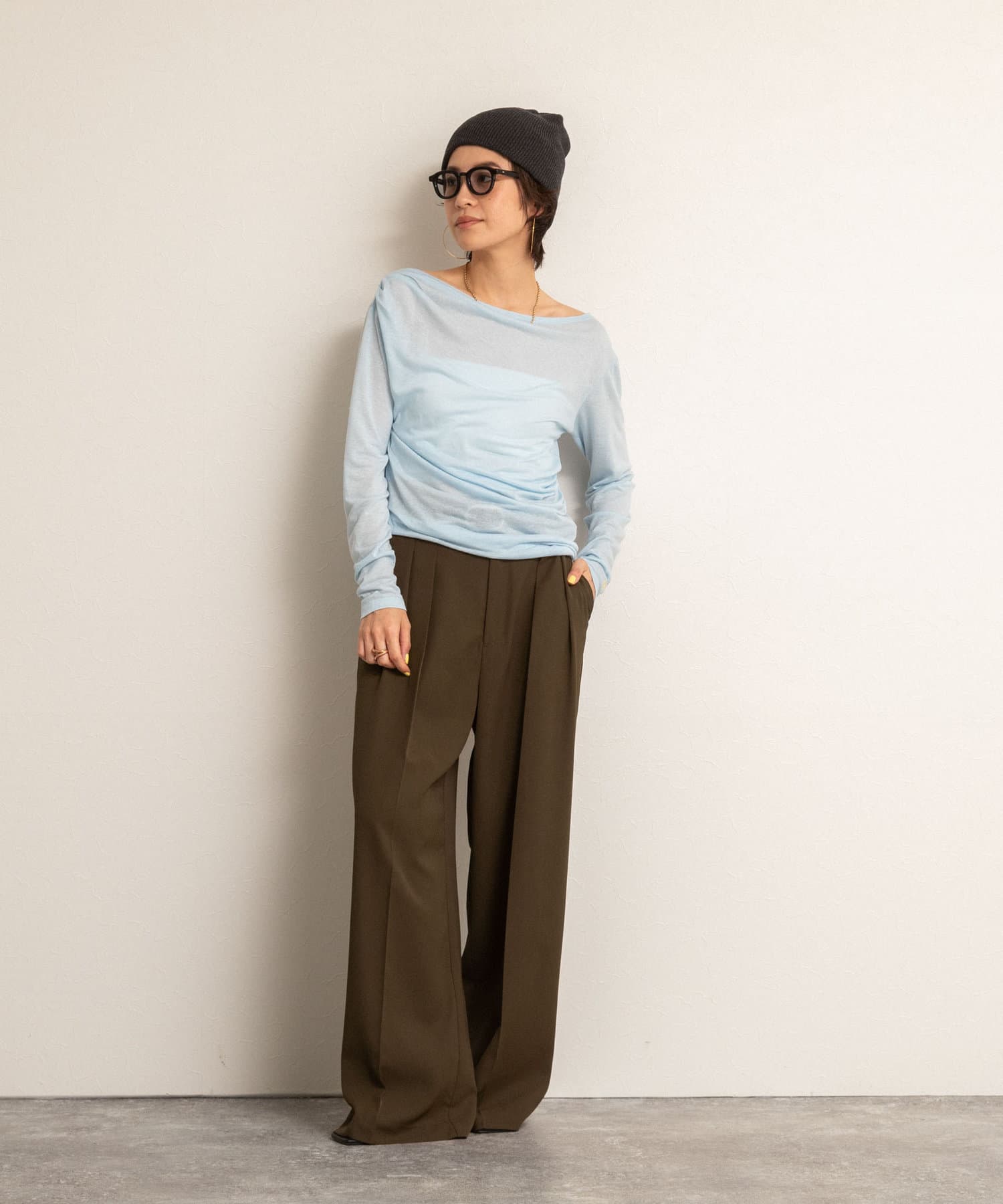 ベースには、洗練されたマニッシュスタイルとヘルシーな着こなしの叶うシンプルなアイテムを。