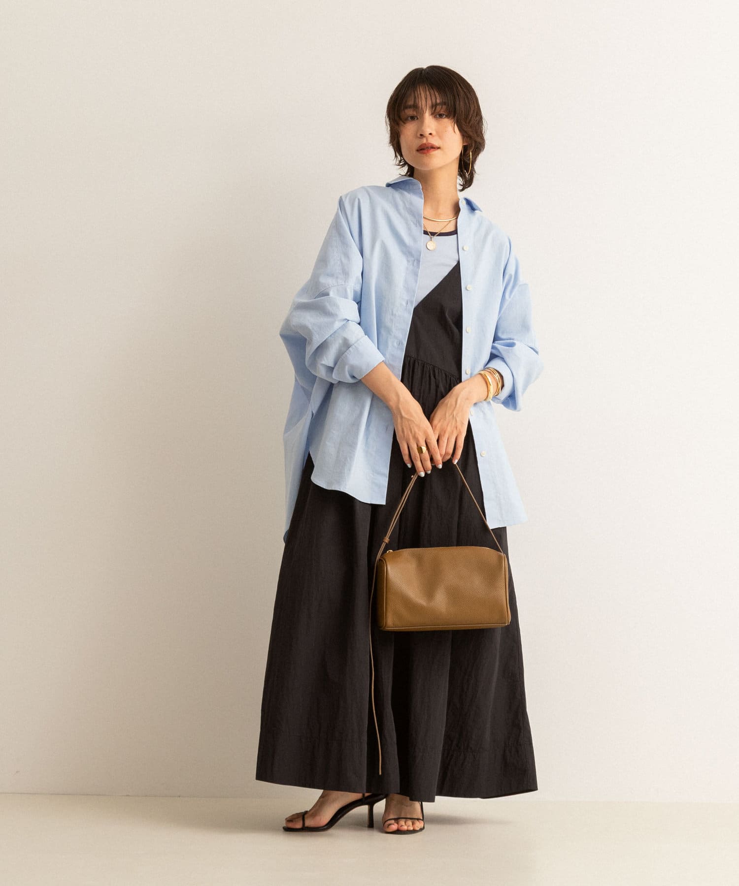 ・タンクトップやノースリーブ、Tシャツなど、インナーアレンジを楽しめるアイテム