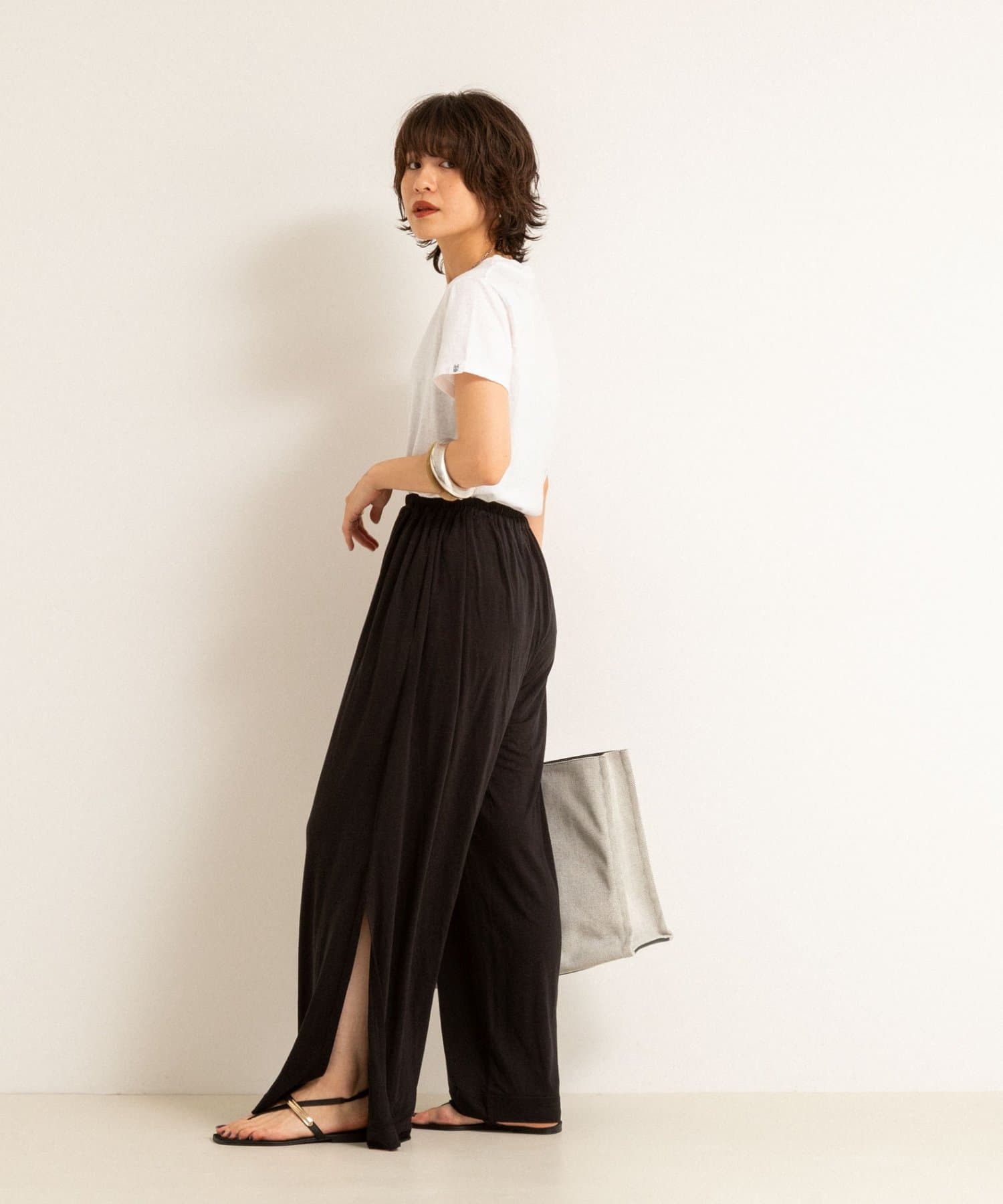 【MAQWEL/マクウェル】ソフトタッチスラブスリットパンツ