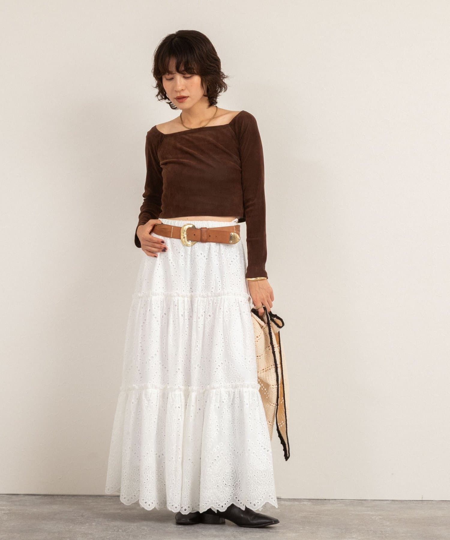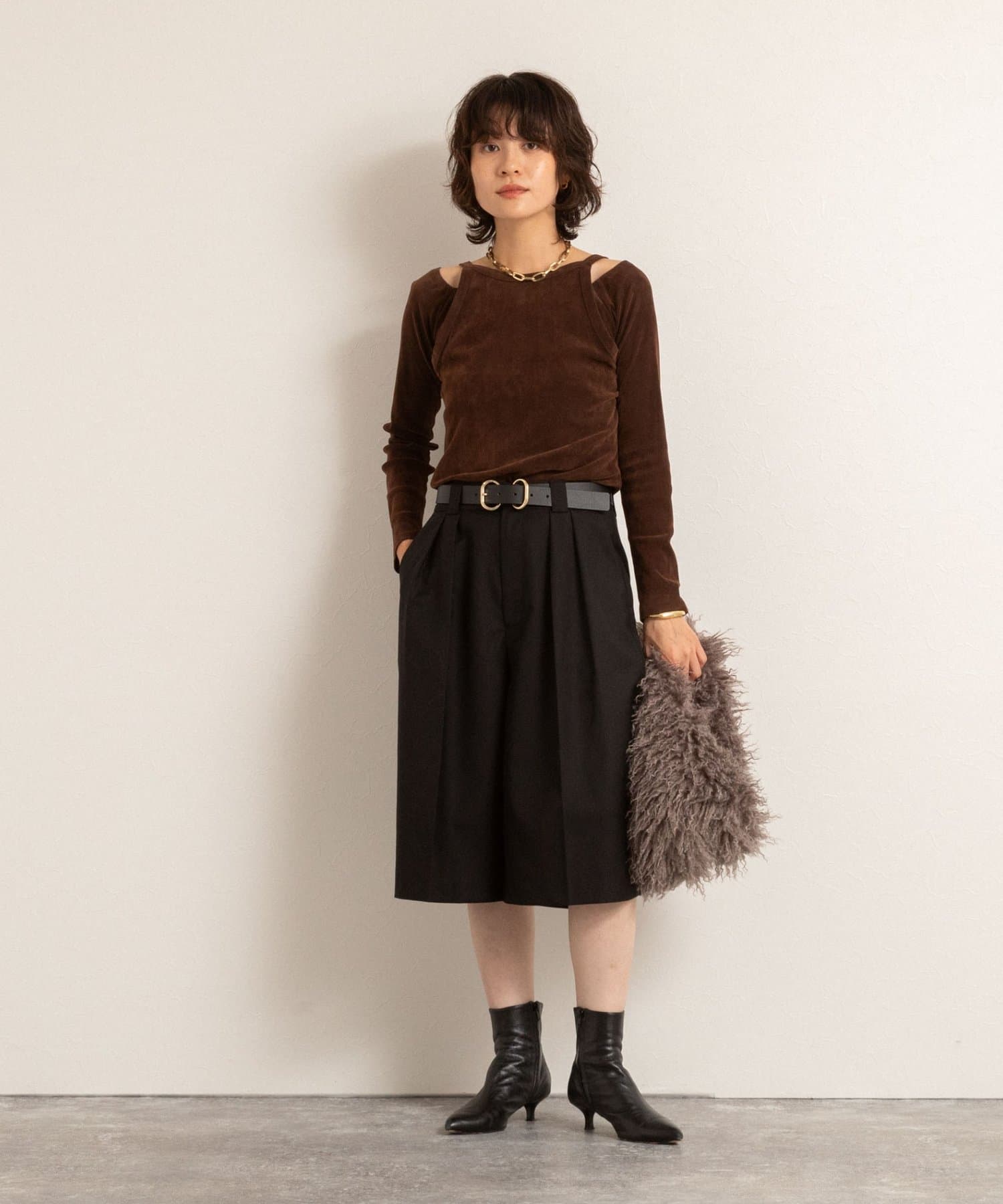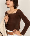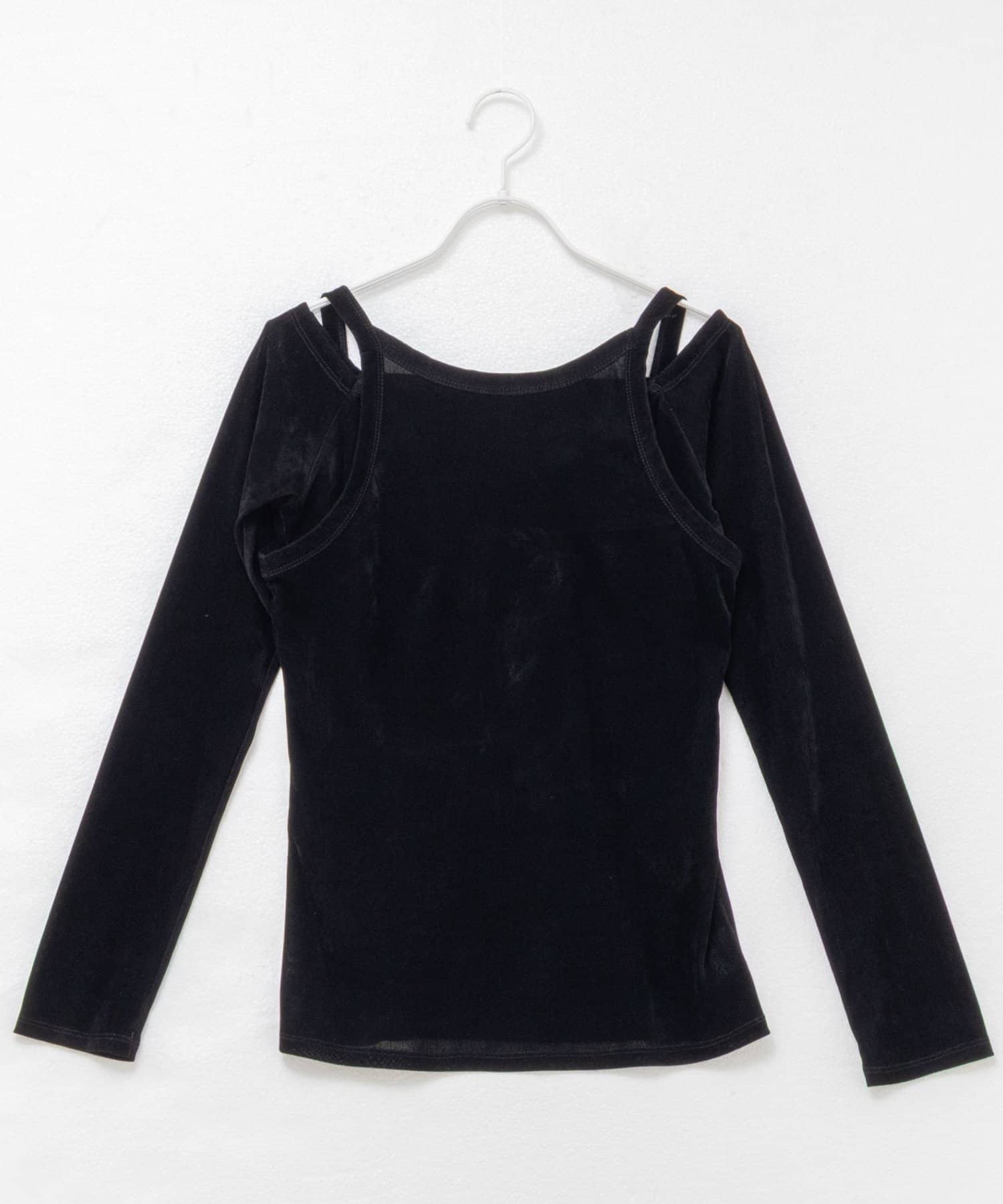 ・ベロア素材を使用したタンクトップとスクエアネックロンTのプルオーバーセット