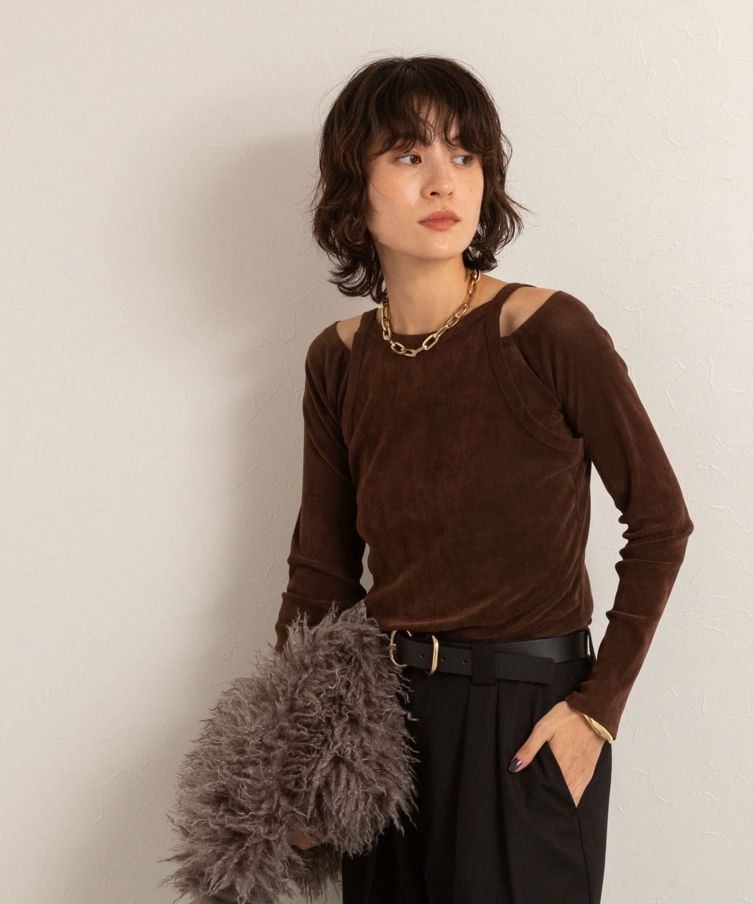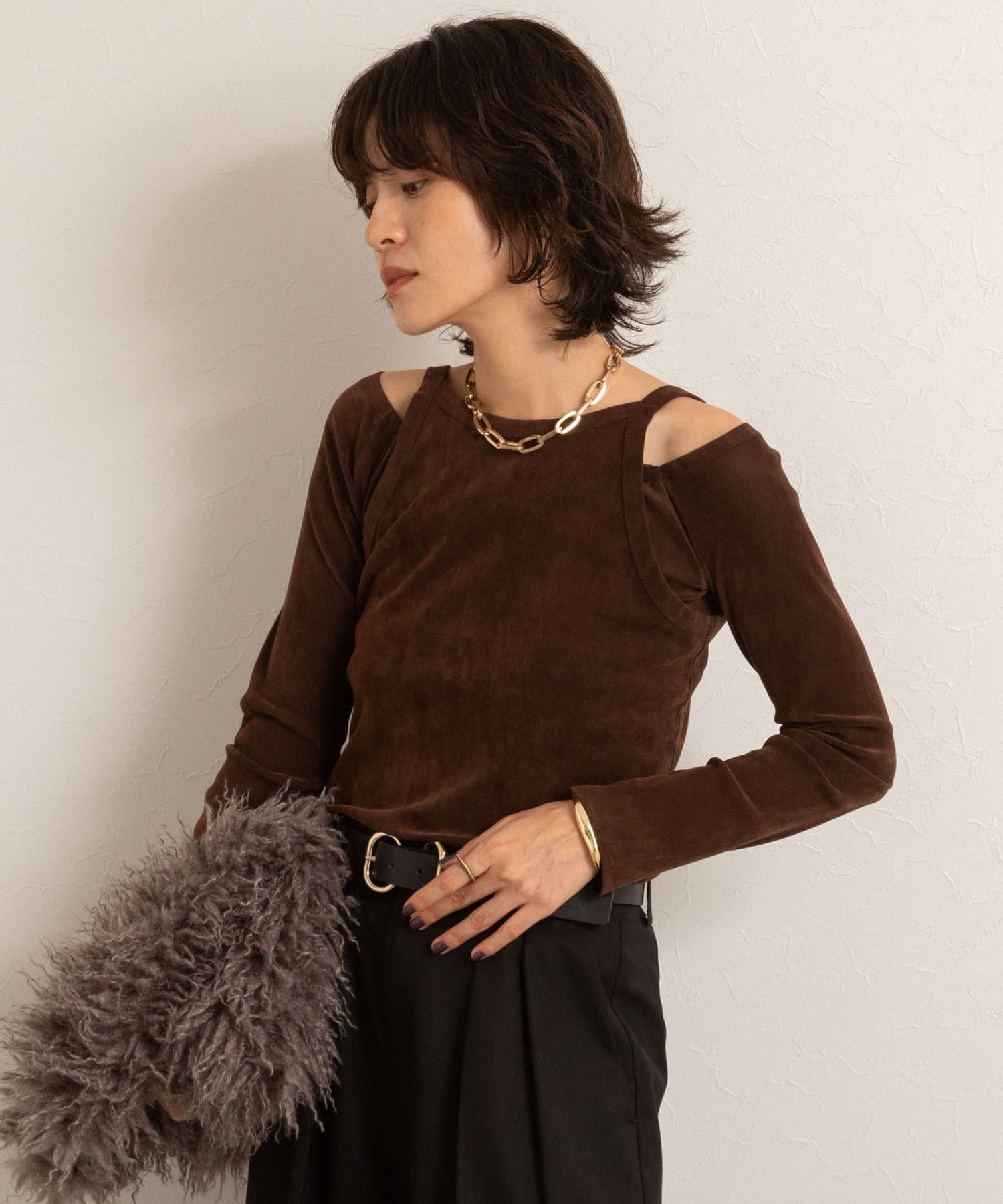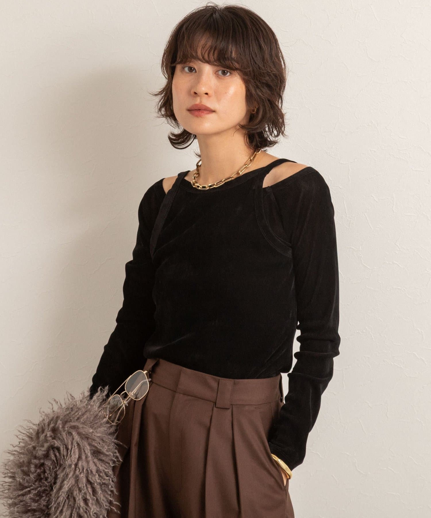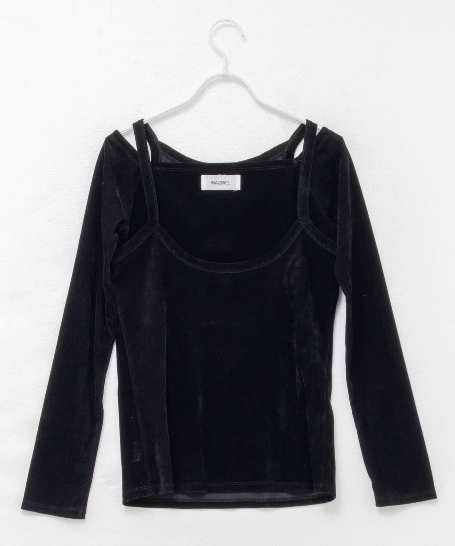 【MAQWEL/マクウェル】ウォッシャブルベロアレイヤードトップス
