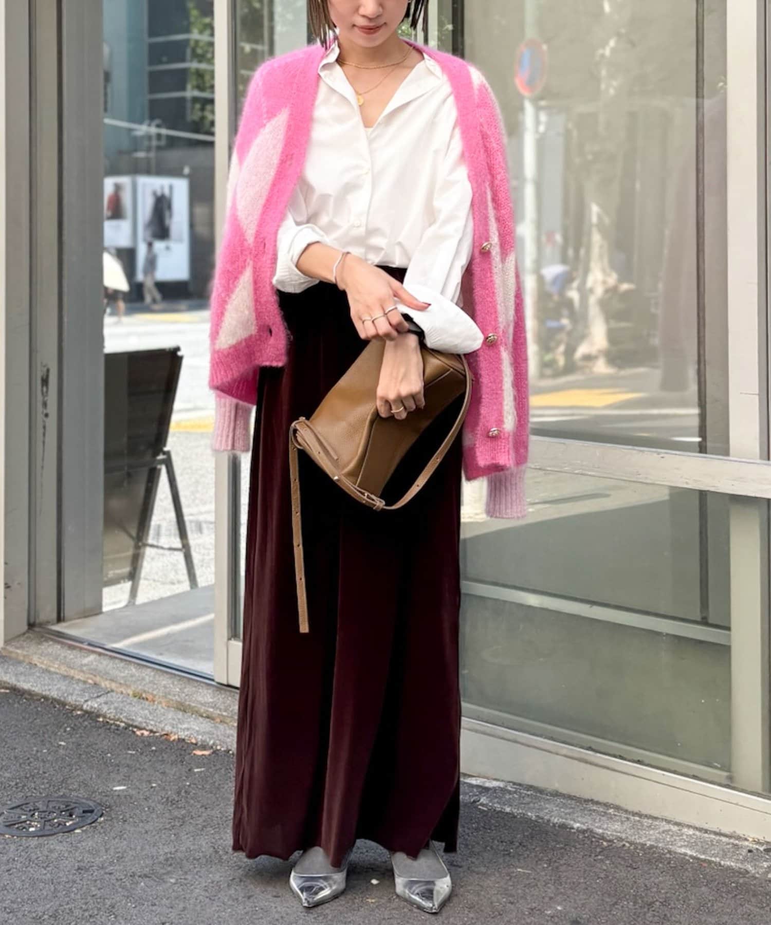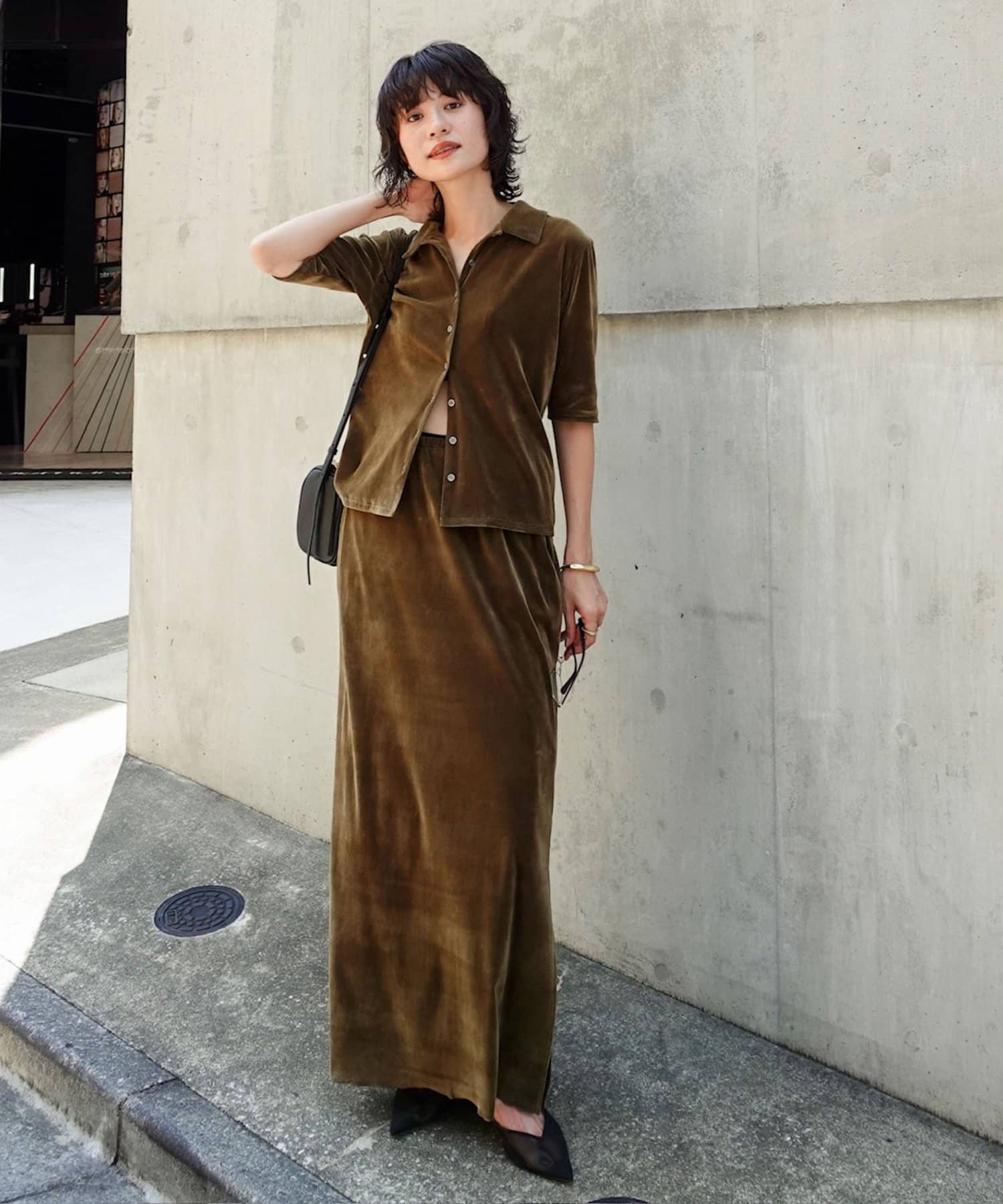 ・上品な光沢感のあるベロア素材で仕上げたベロアスカート
