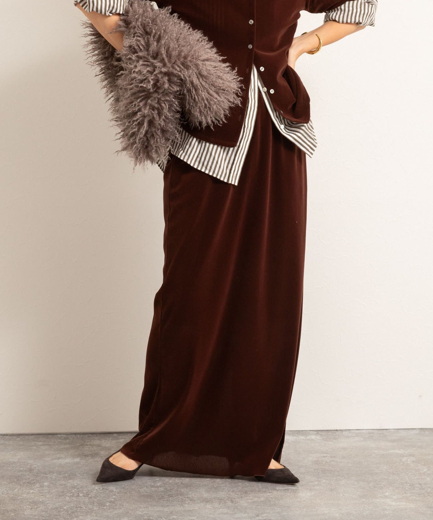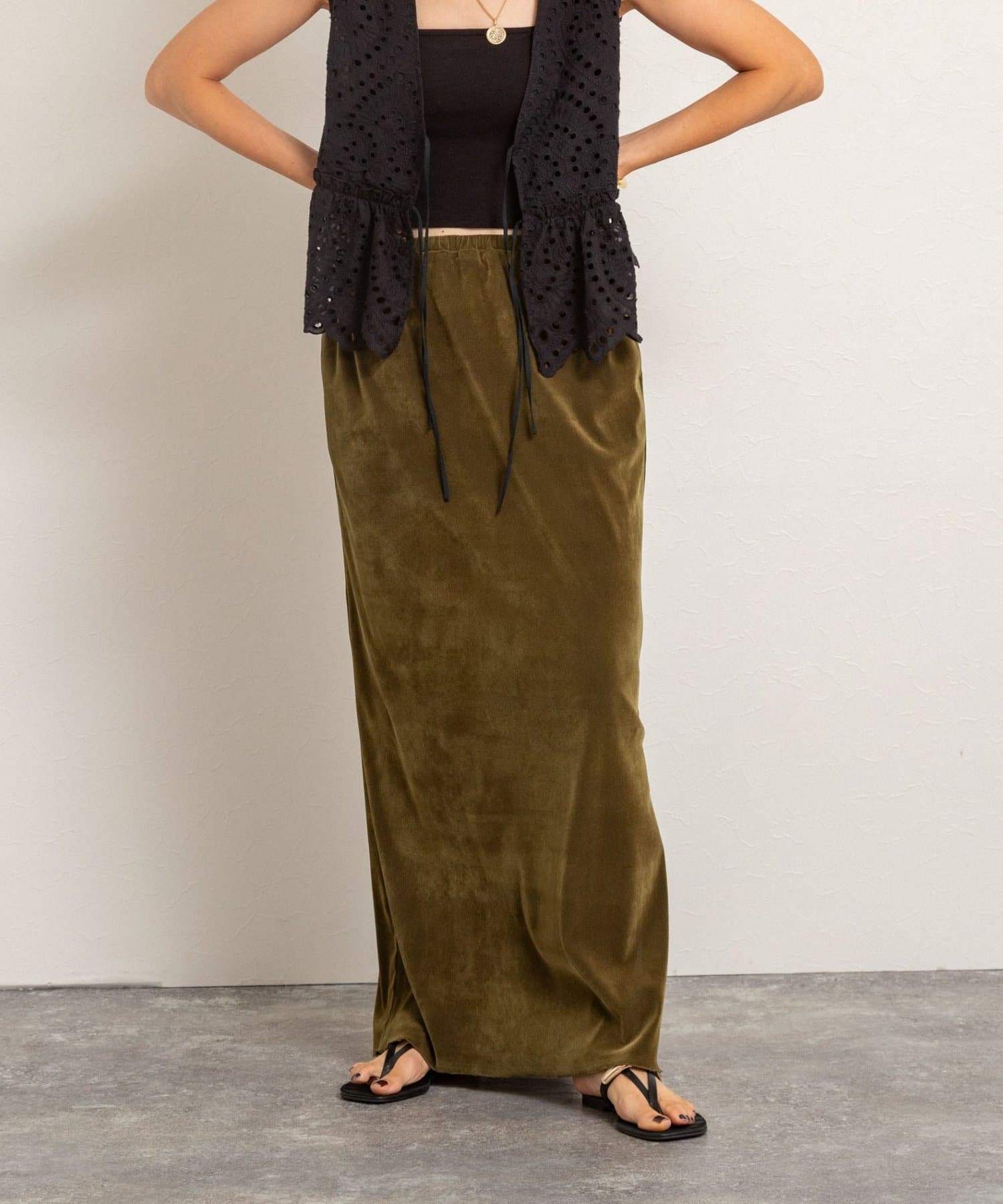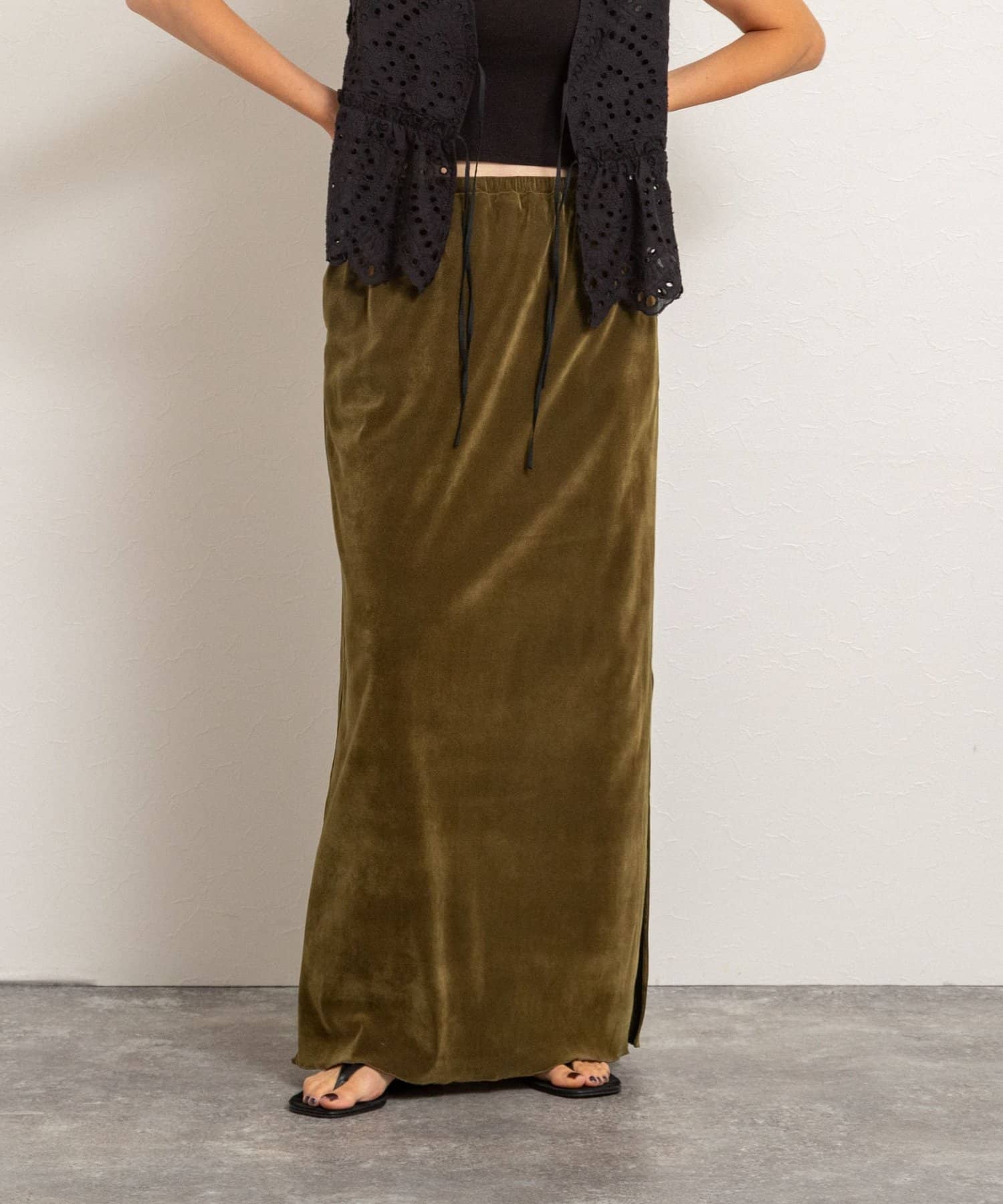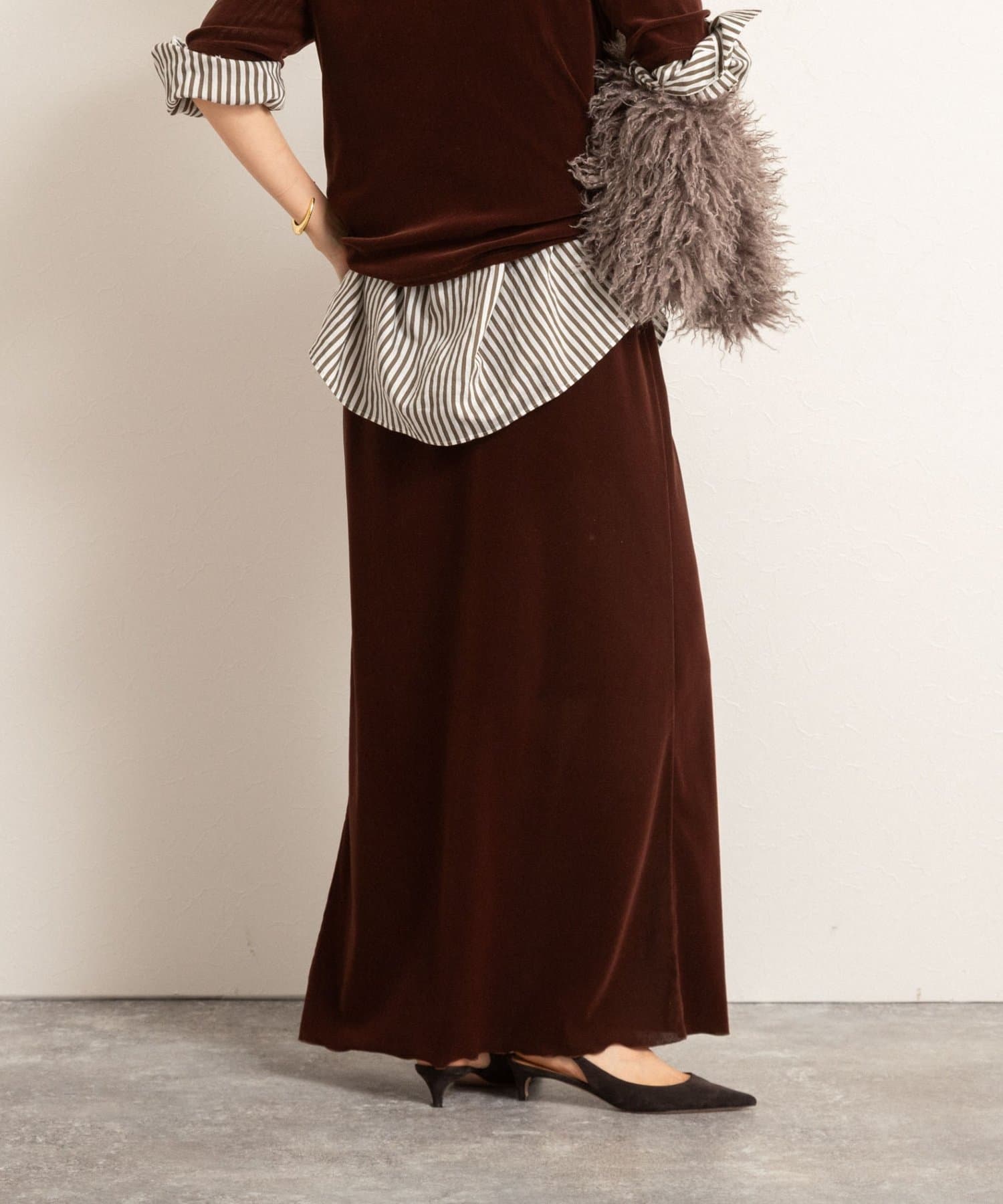 【MAQWEL/マクウェル】ウォッシャブルベロアロングスカート