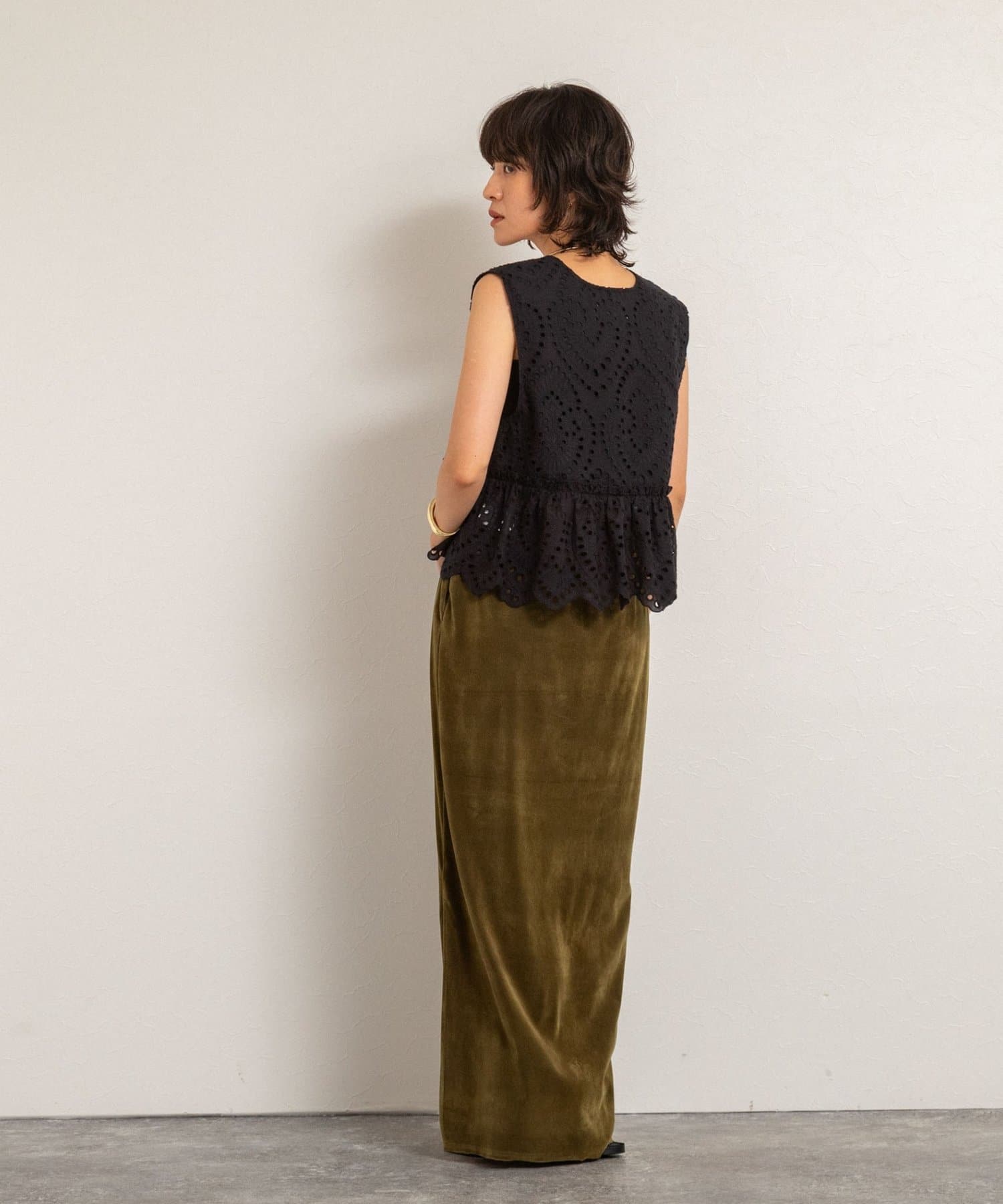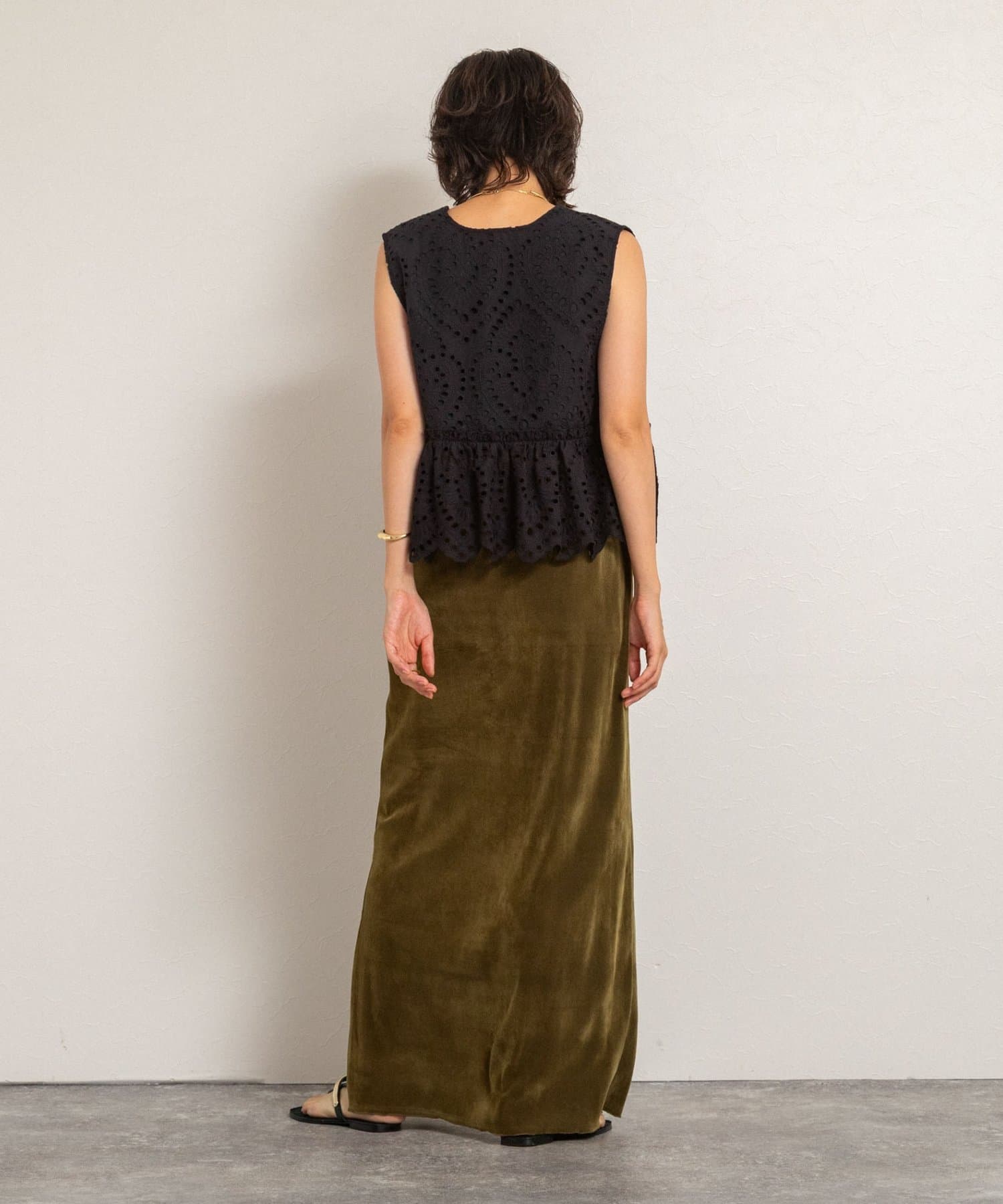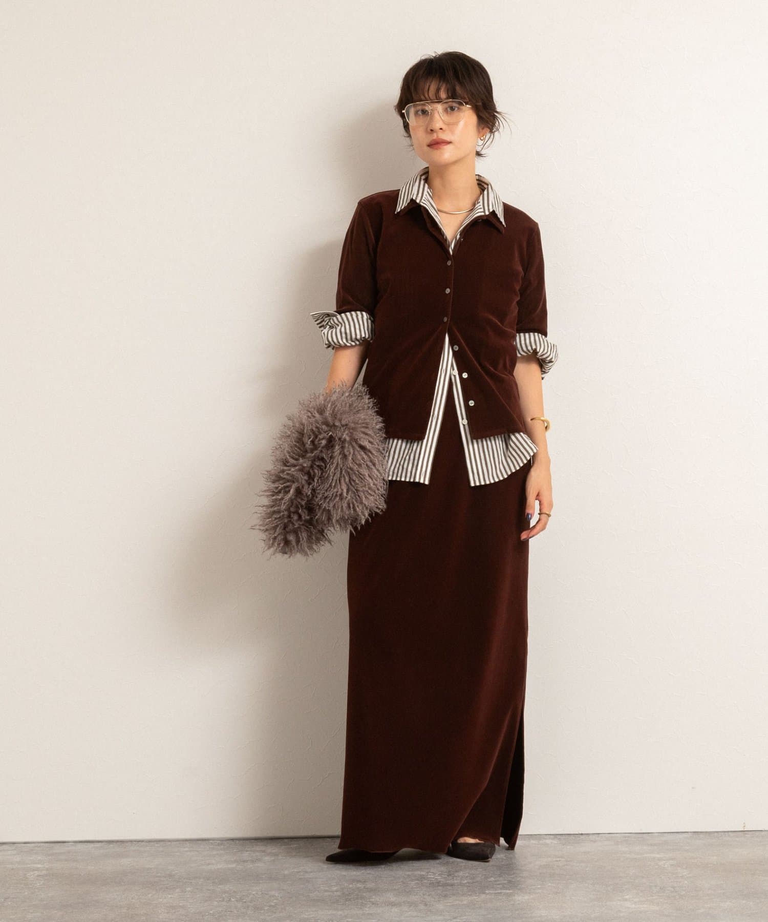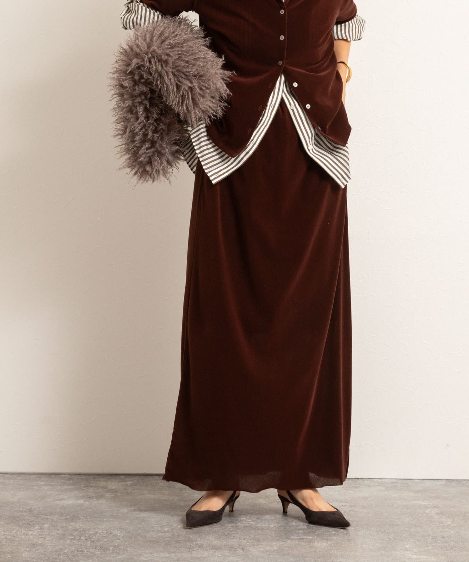 【MAQWEL/マクウェル】ウォッシャブルベロアロングスカート