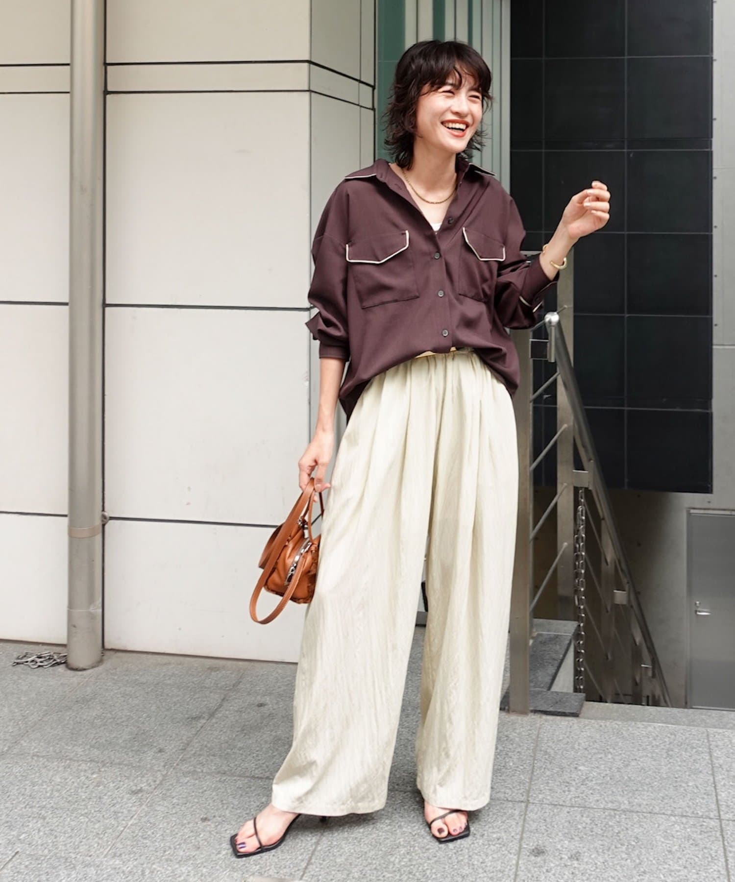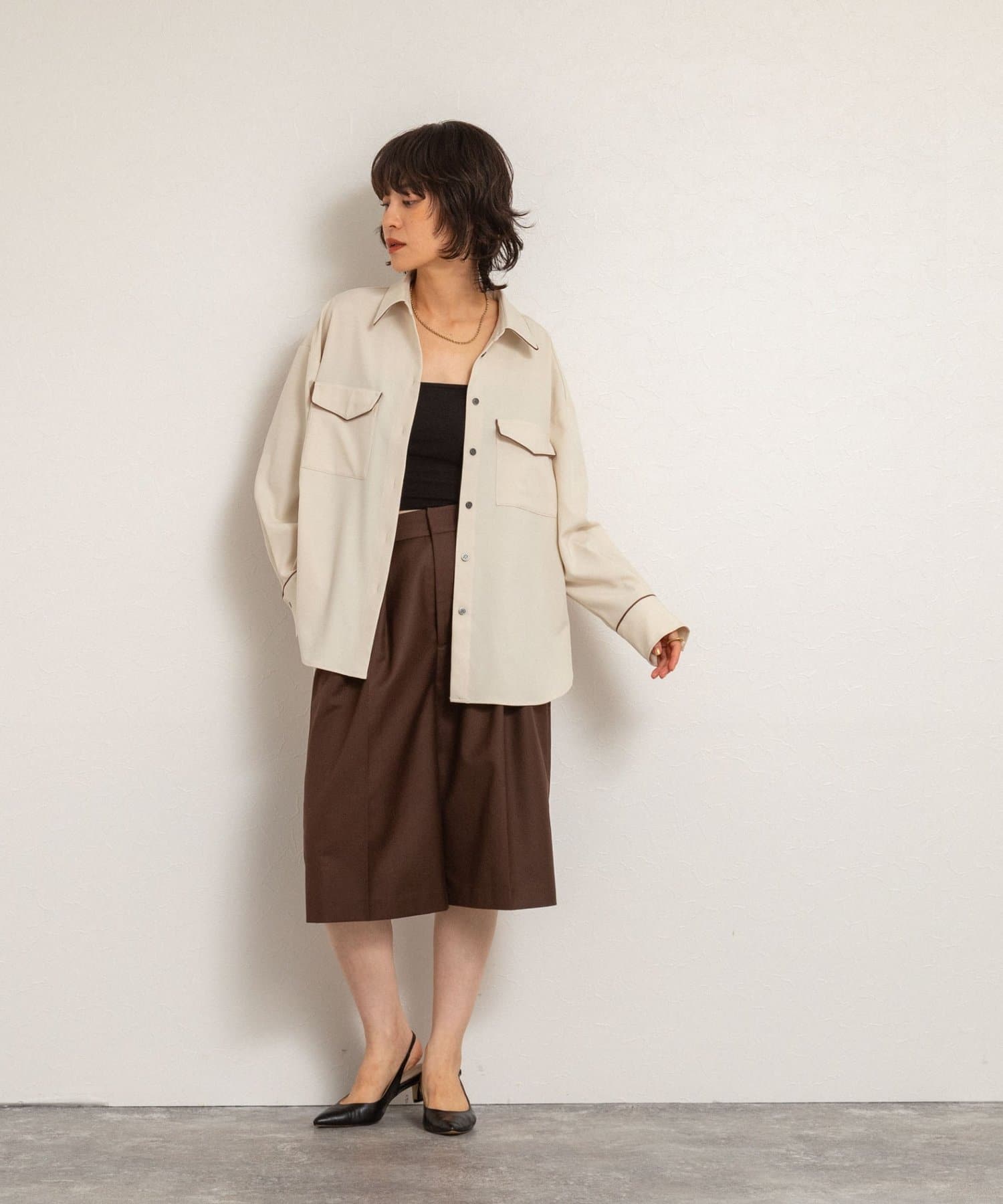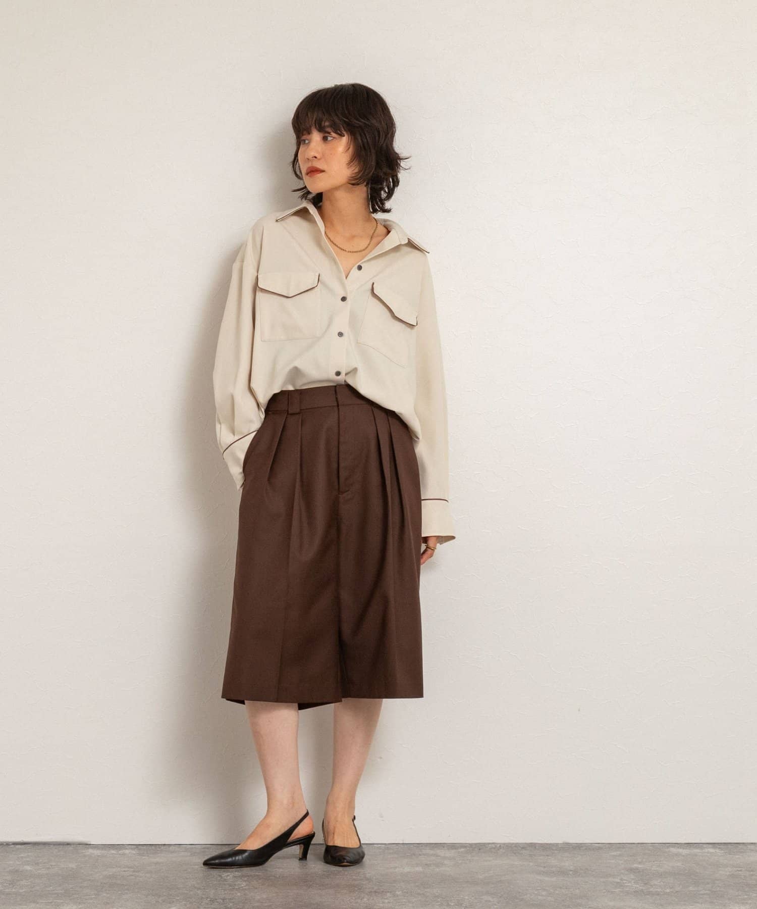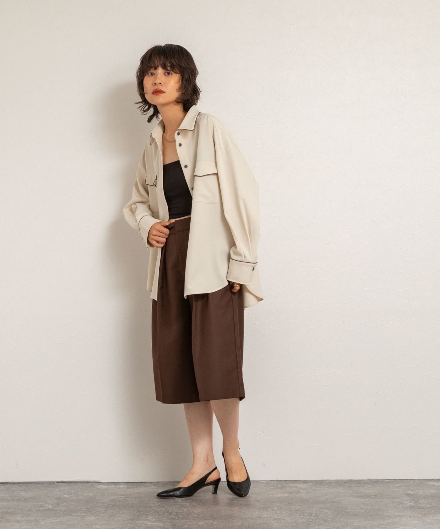 ・オーバーシルエットで端境期の羽織としても、ボタンを留めてトップスとしても、着回しを楽しめるアイテム