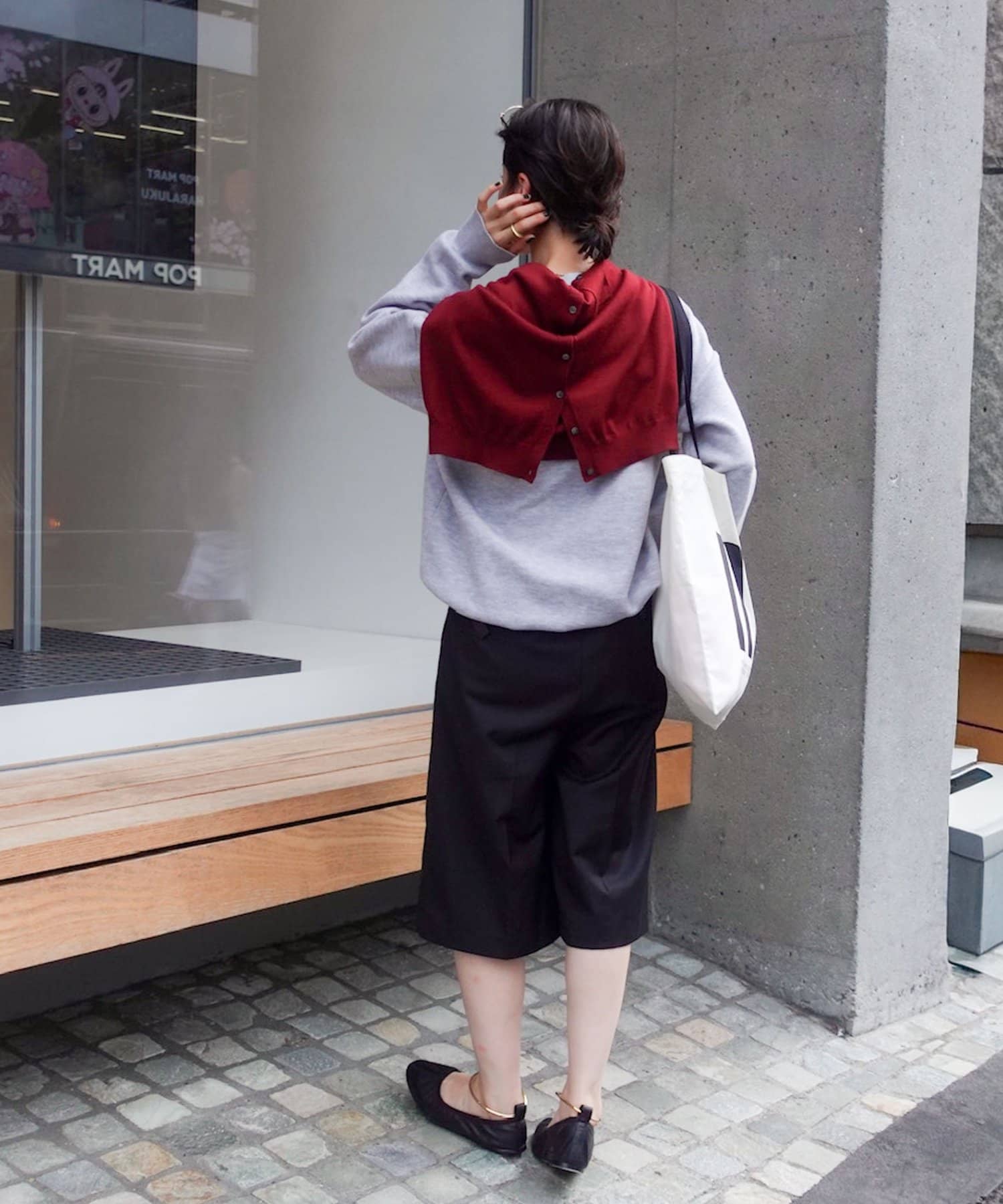 ・ゆったりしたサイズ感で細身のパンツからフレアスカートまで幅広いボトムを選ばない一枚
