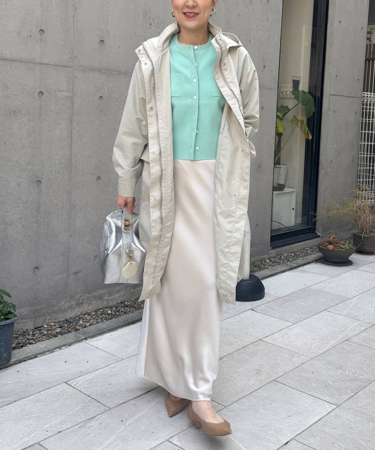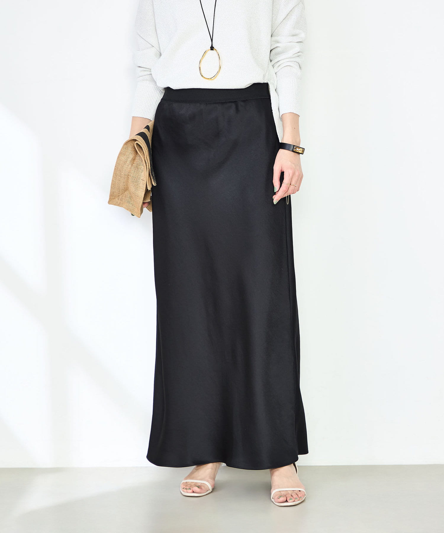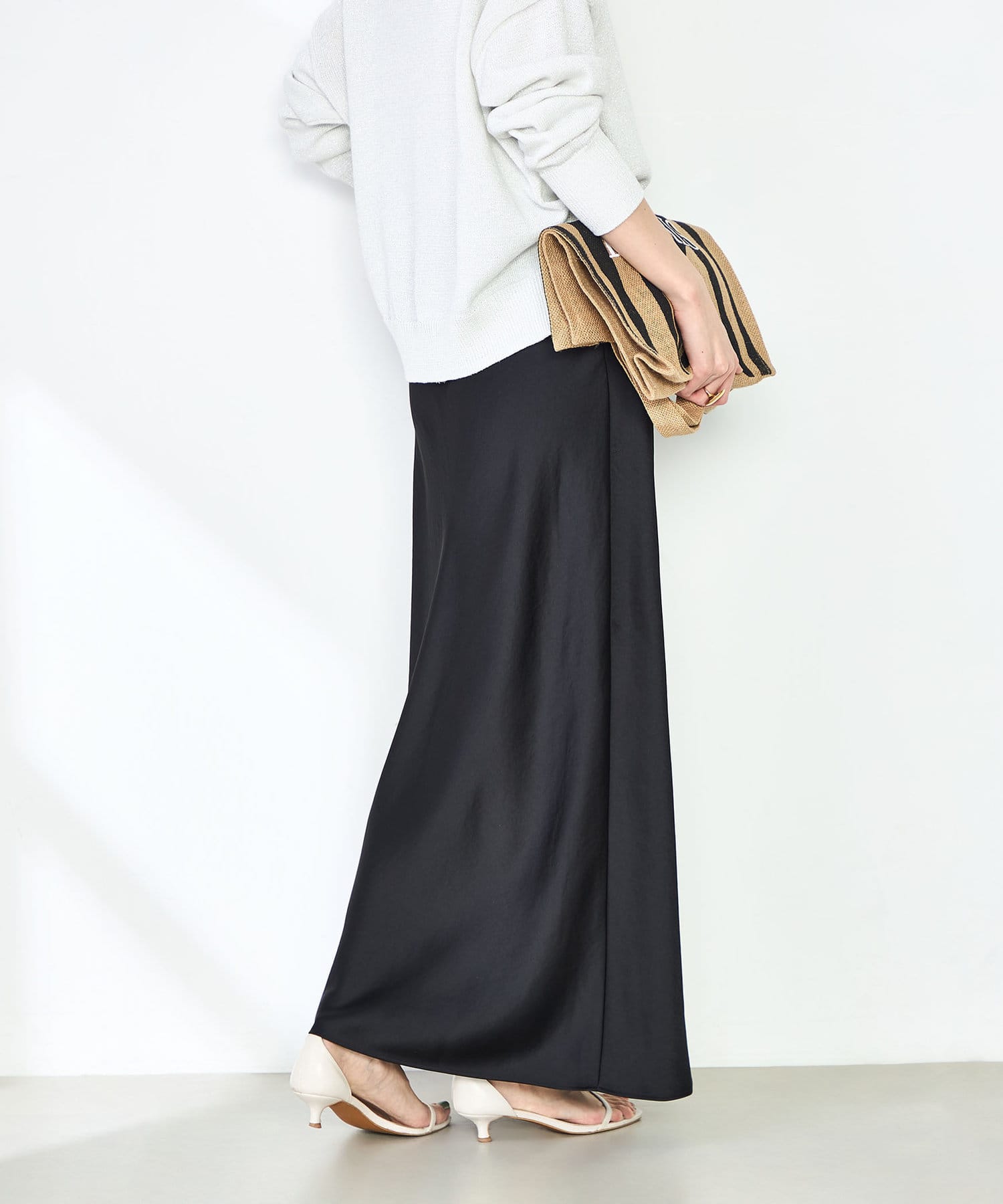 ・オールシーズン着回せる、光沢感が上品な大人サテンスカート