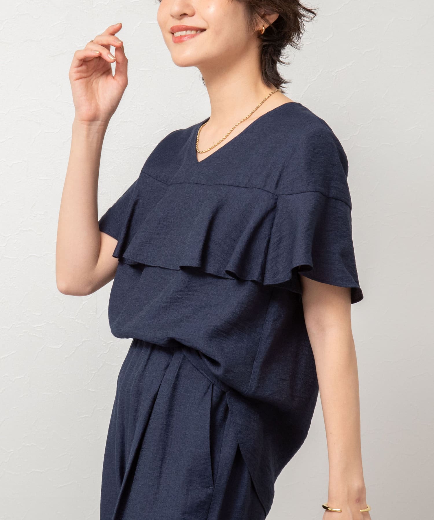 ◇【WEB限定】《セットアップ対応》ジュピター半袖フリルブラウス