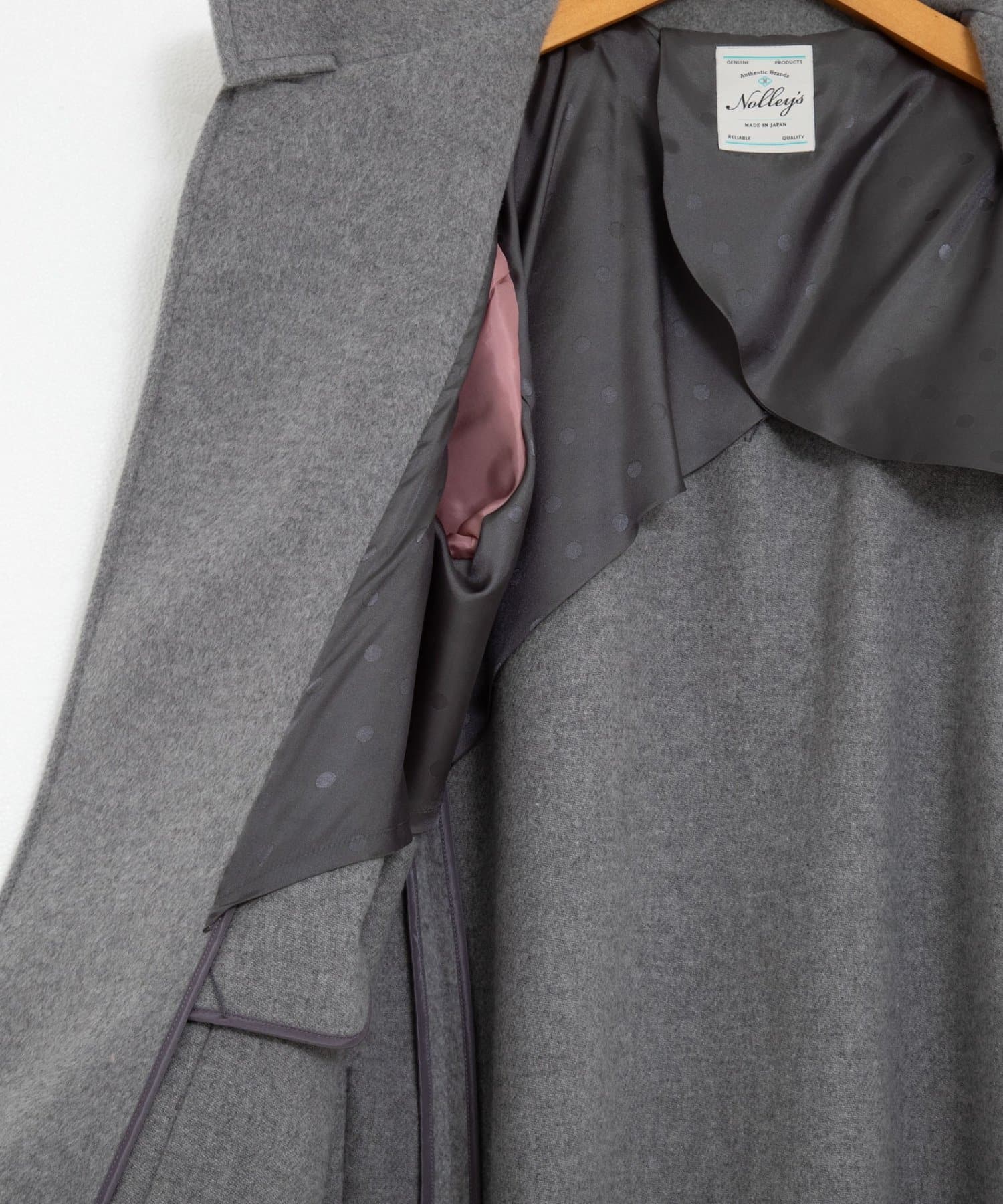 ・背裏地はドット柄、袖裏地はピンクで、袖口を折り返しても可愛いポイントに
