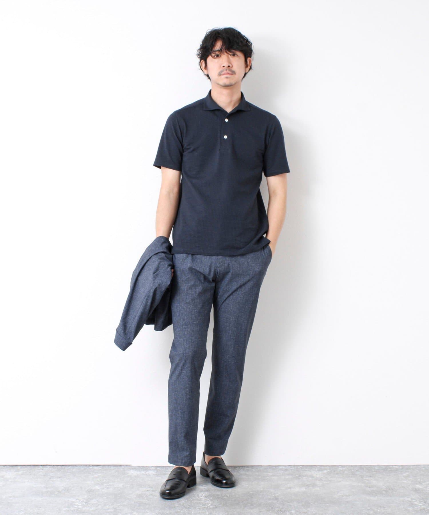 ・スラックスやチノパンと合わせたビジカジスタイルに
