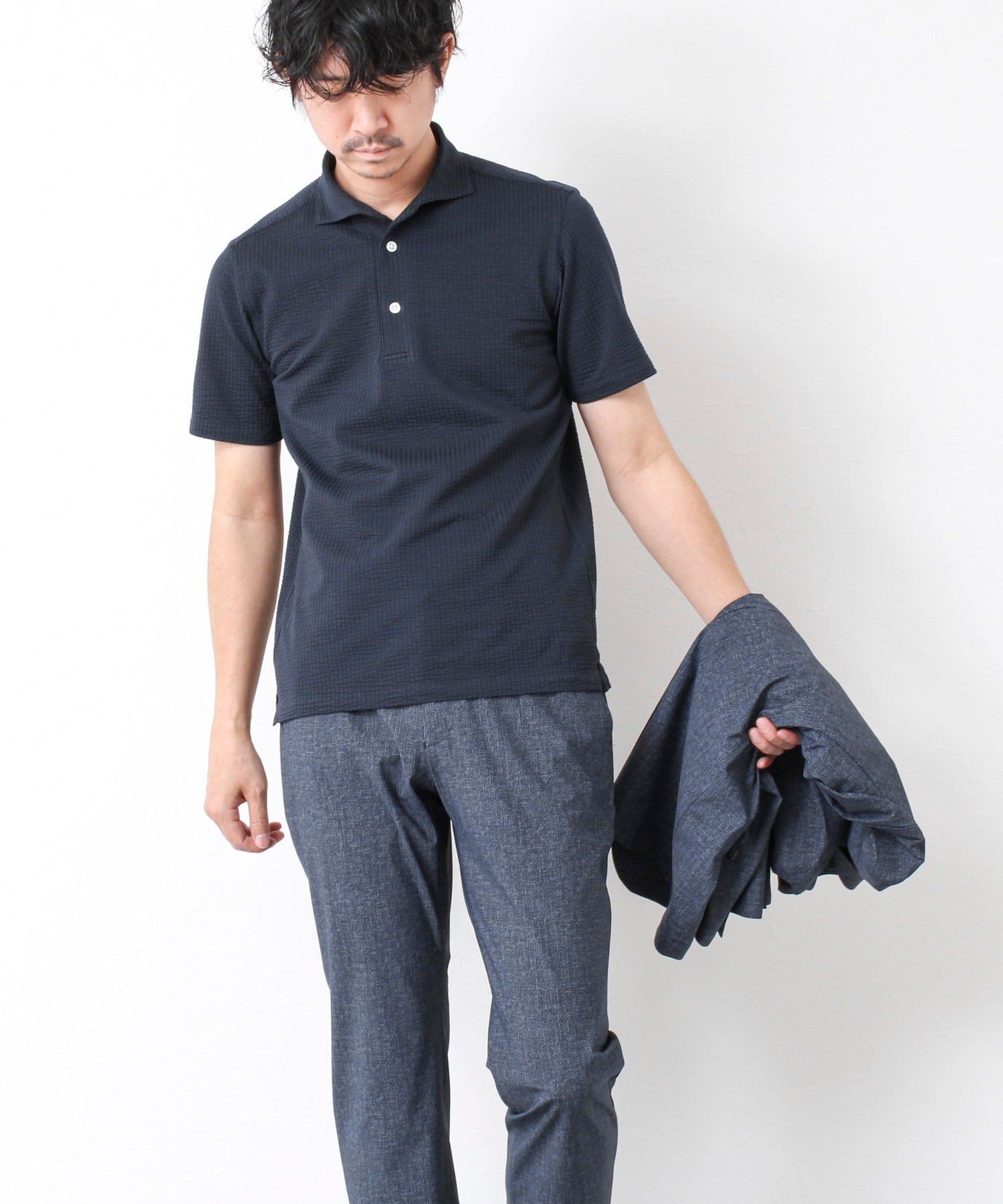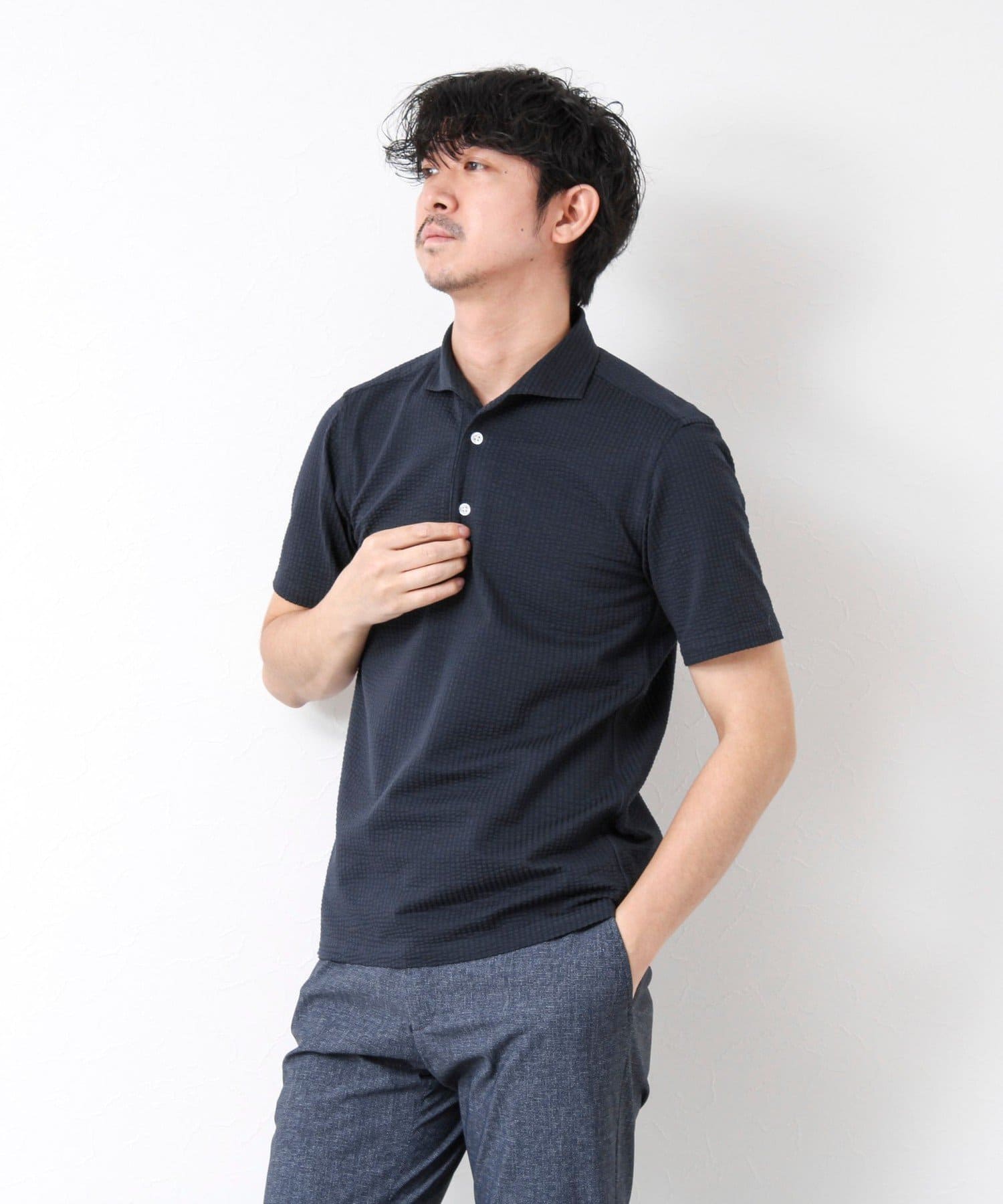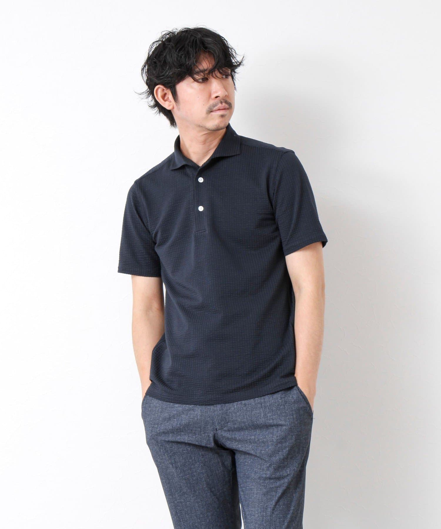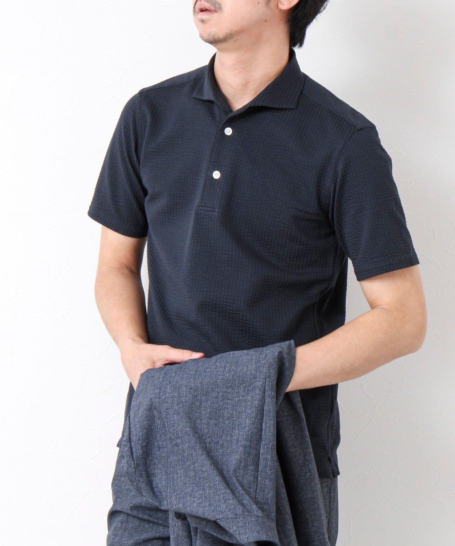 サッカー素材の清涼感あるストレッチポロシャツ