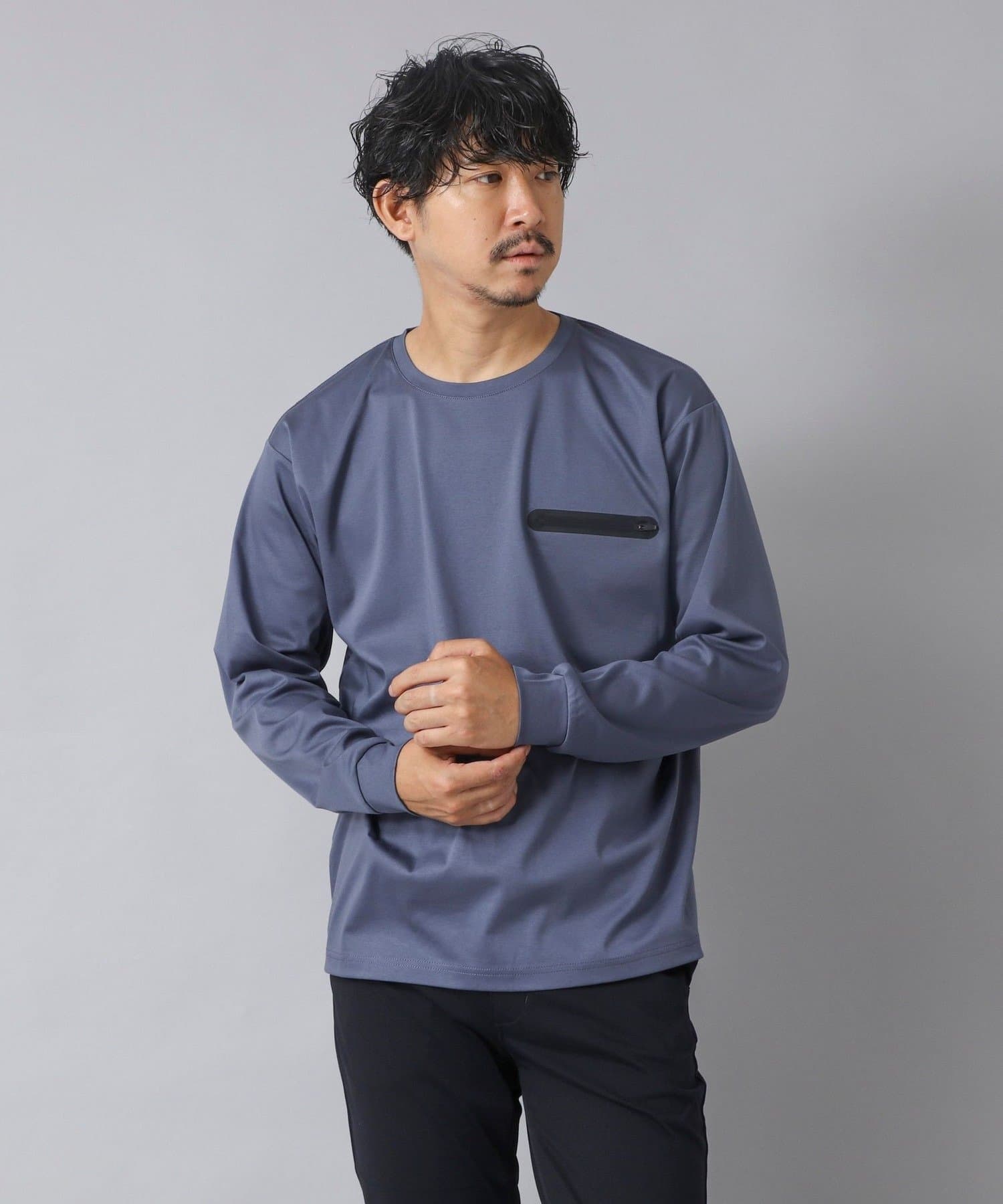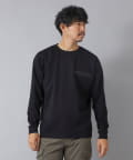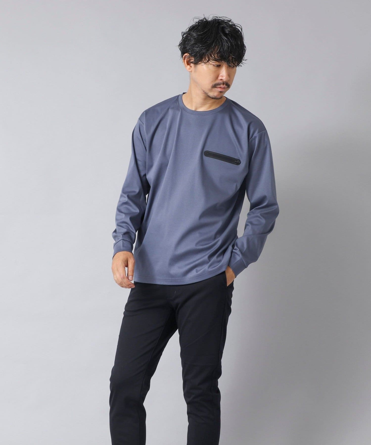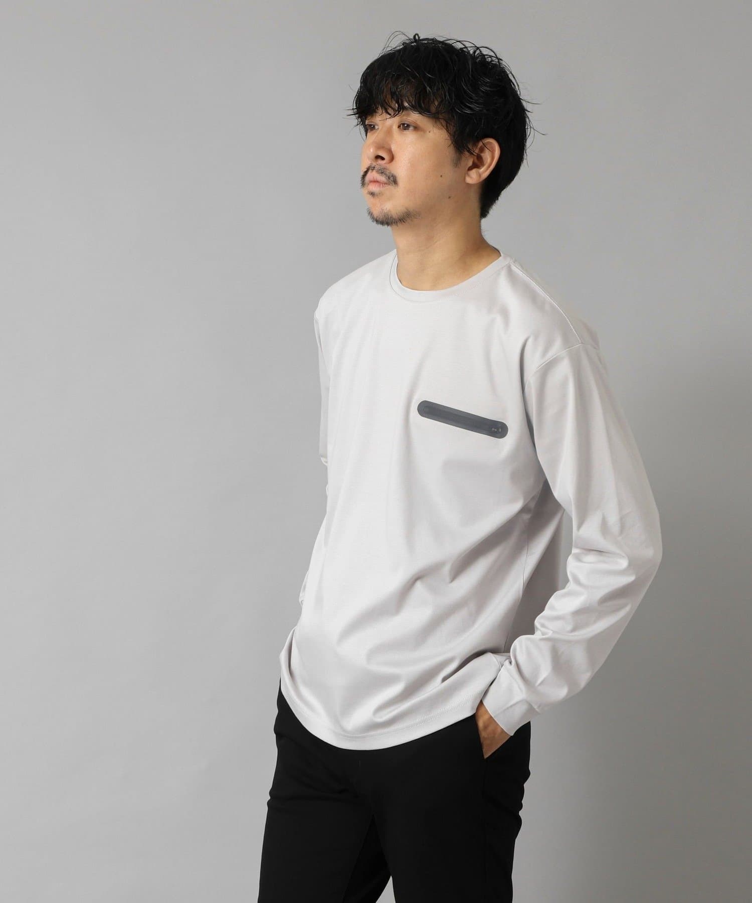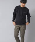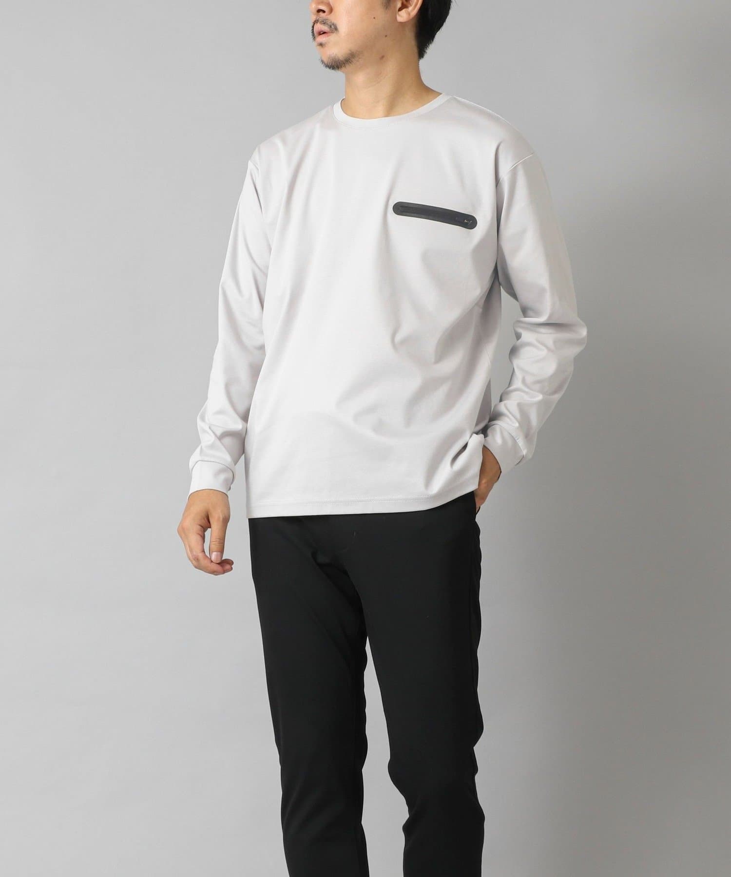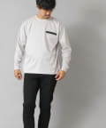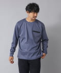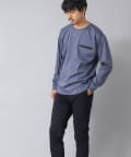 シンプルなクルーネックロンTの左胸に、シーリングポケットを配置。