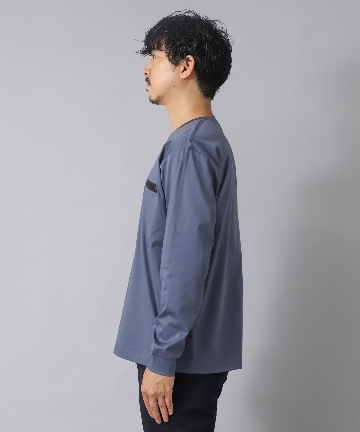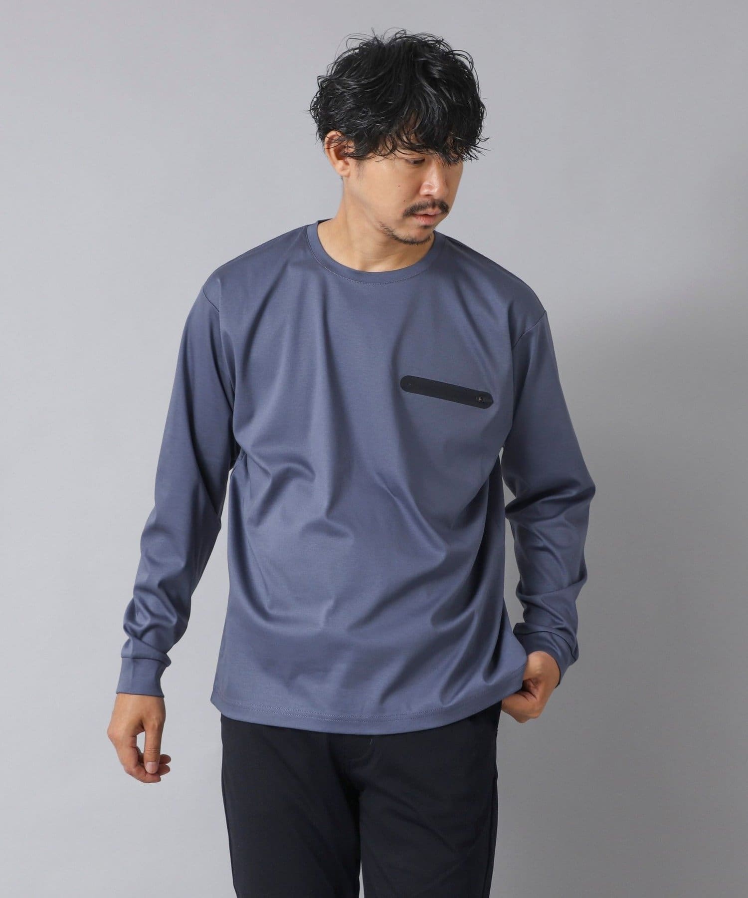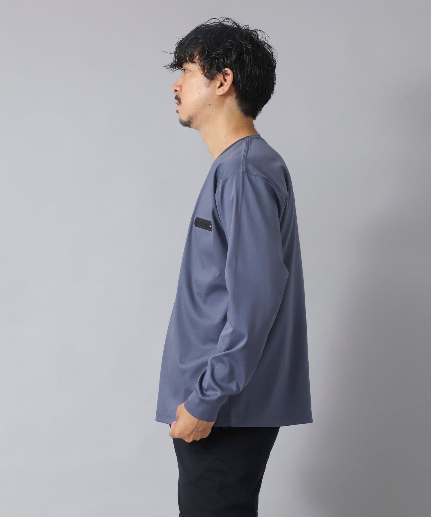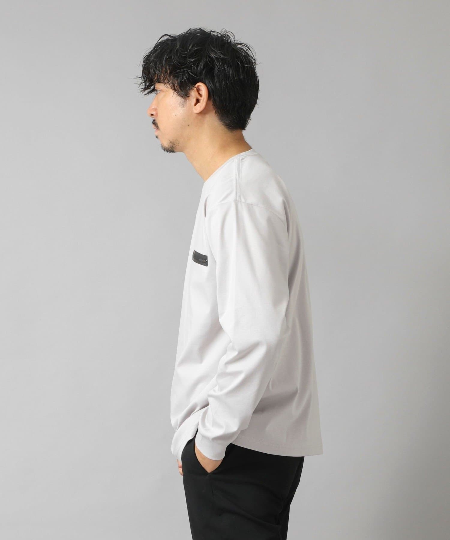 スッキリとしていながらもリラックス感も感じられる一枚で主役級の新感覚な長袖ポケTです。