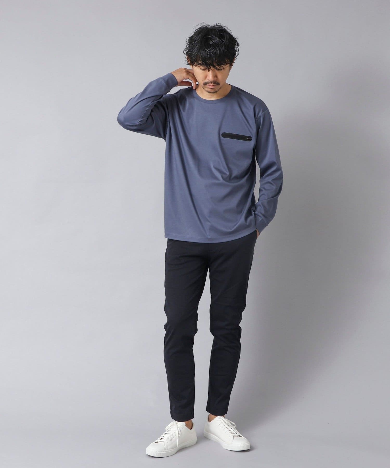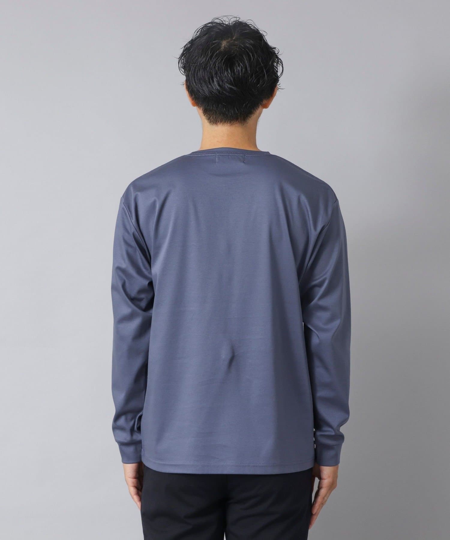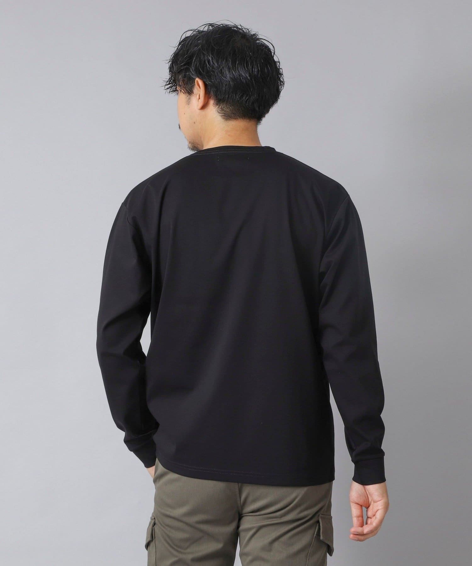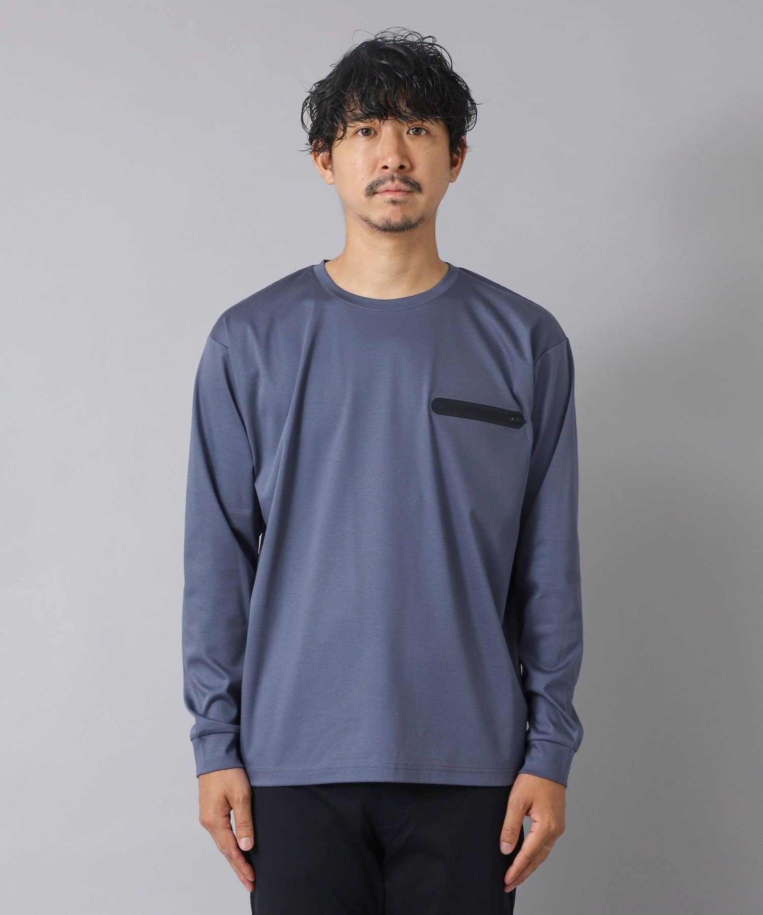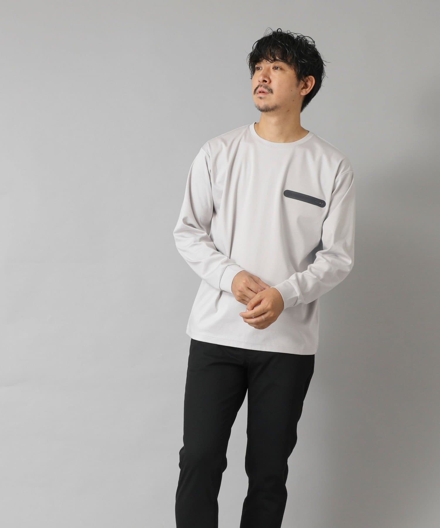 スッキリとしていながらもリラックス感も感じられる一枚で主役級の新感覚な長袖ポケTです。