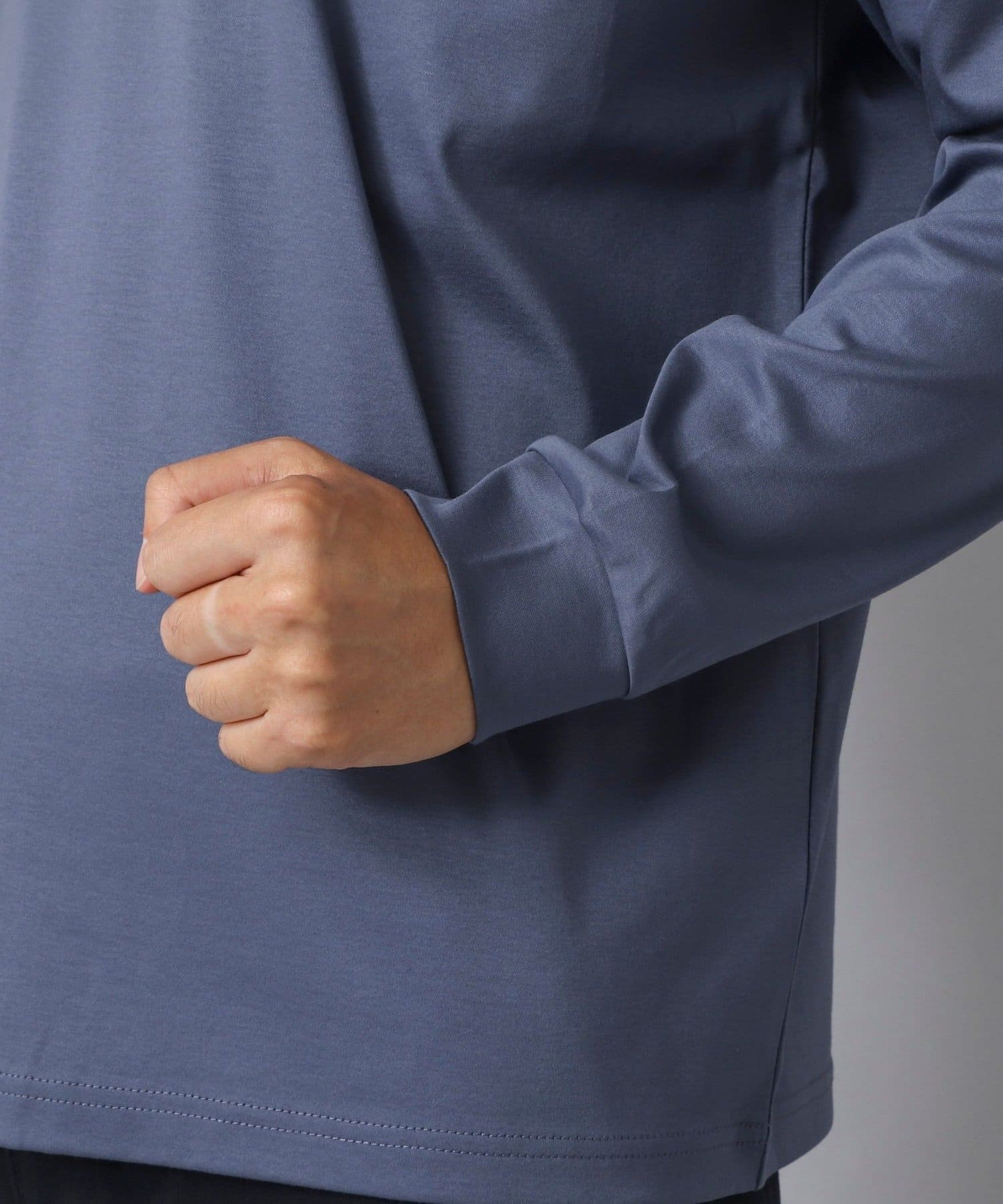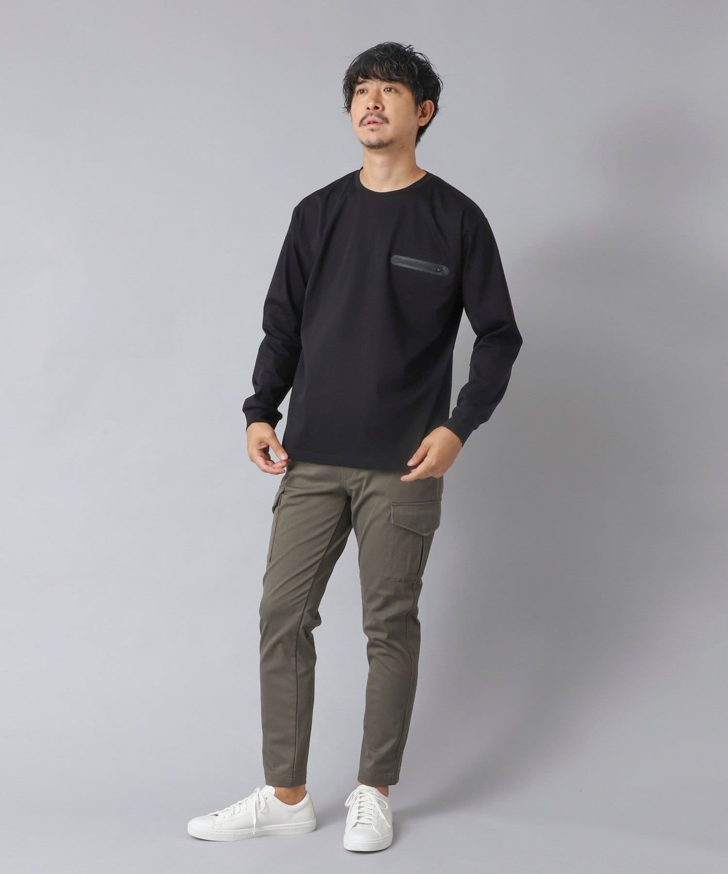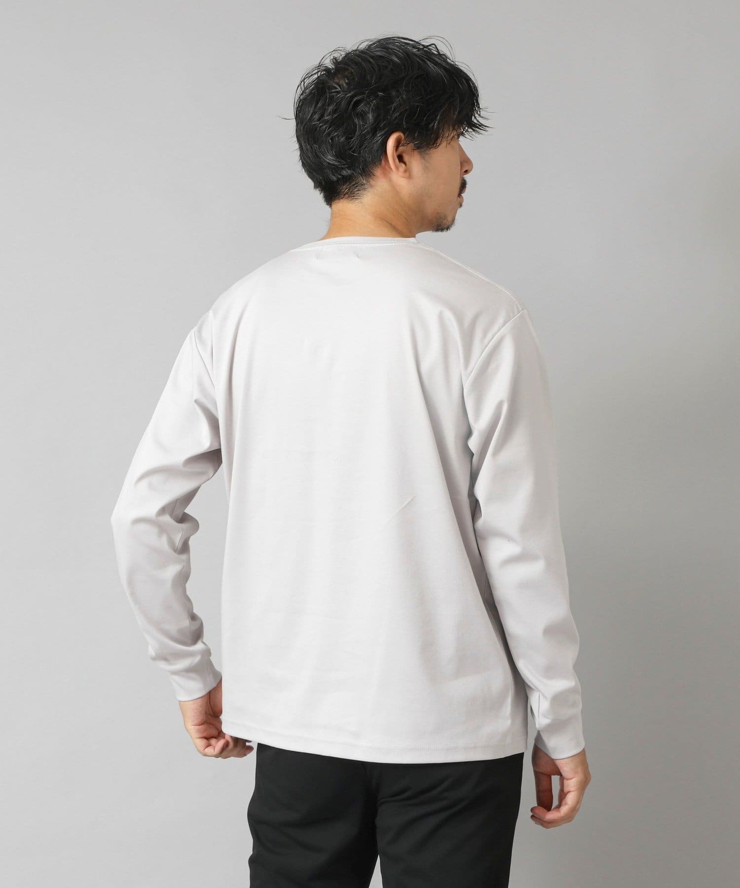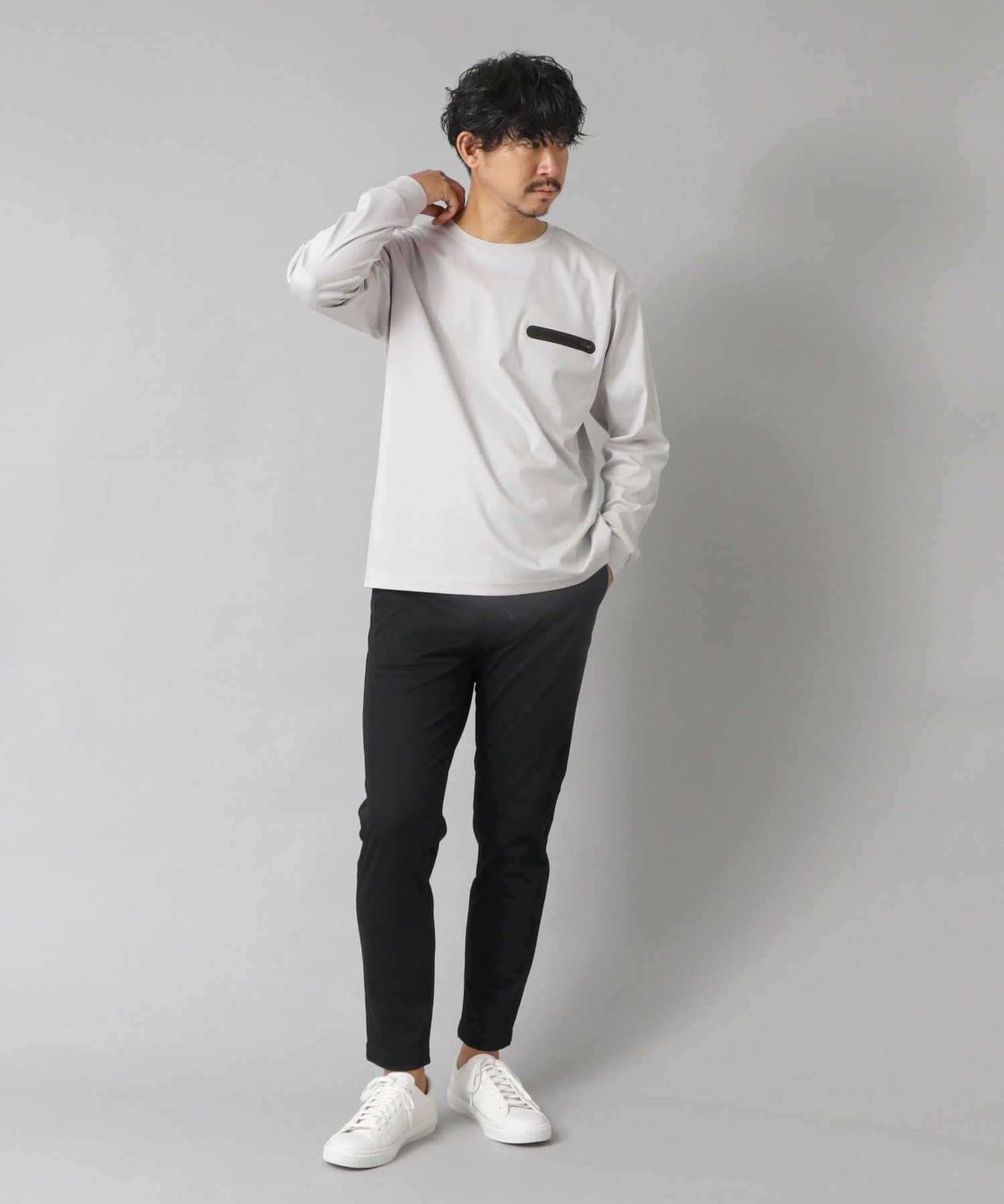 スッキリとしていながらもリラックス感も感じられる一枚で主役級の新感覚な長袖ポケTです。