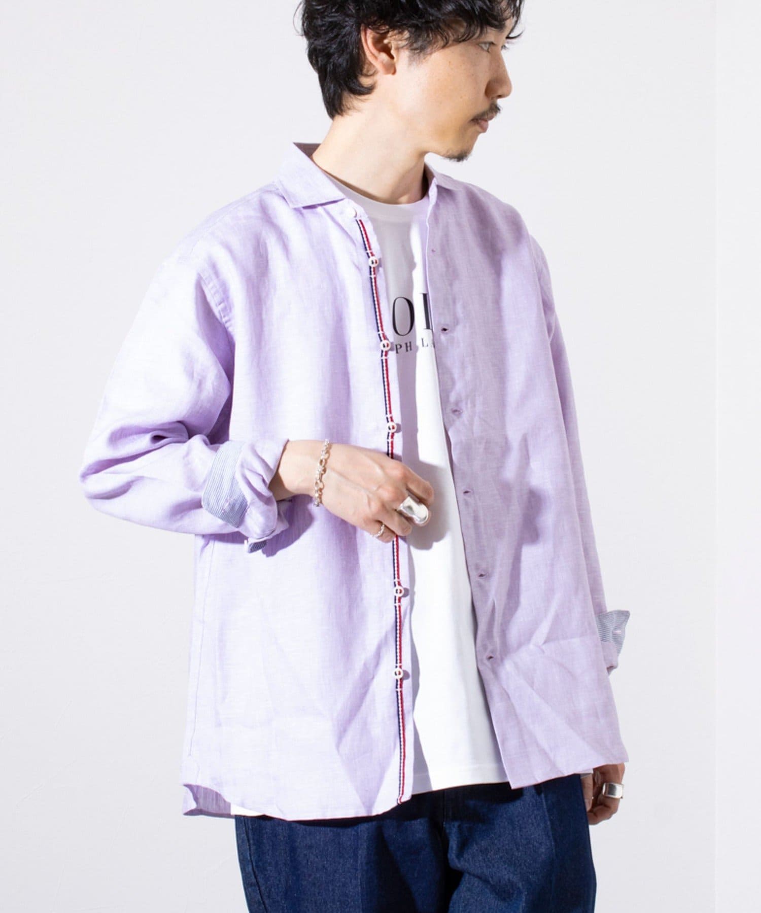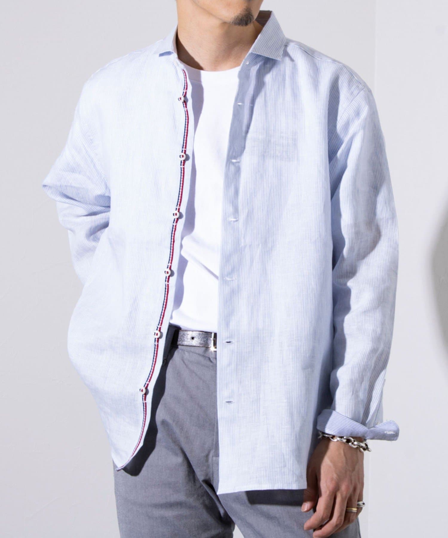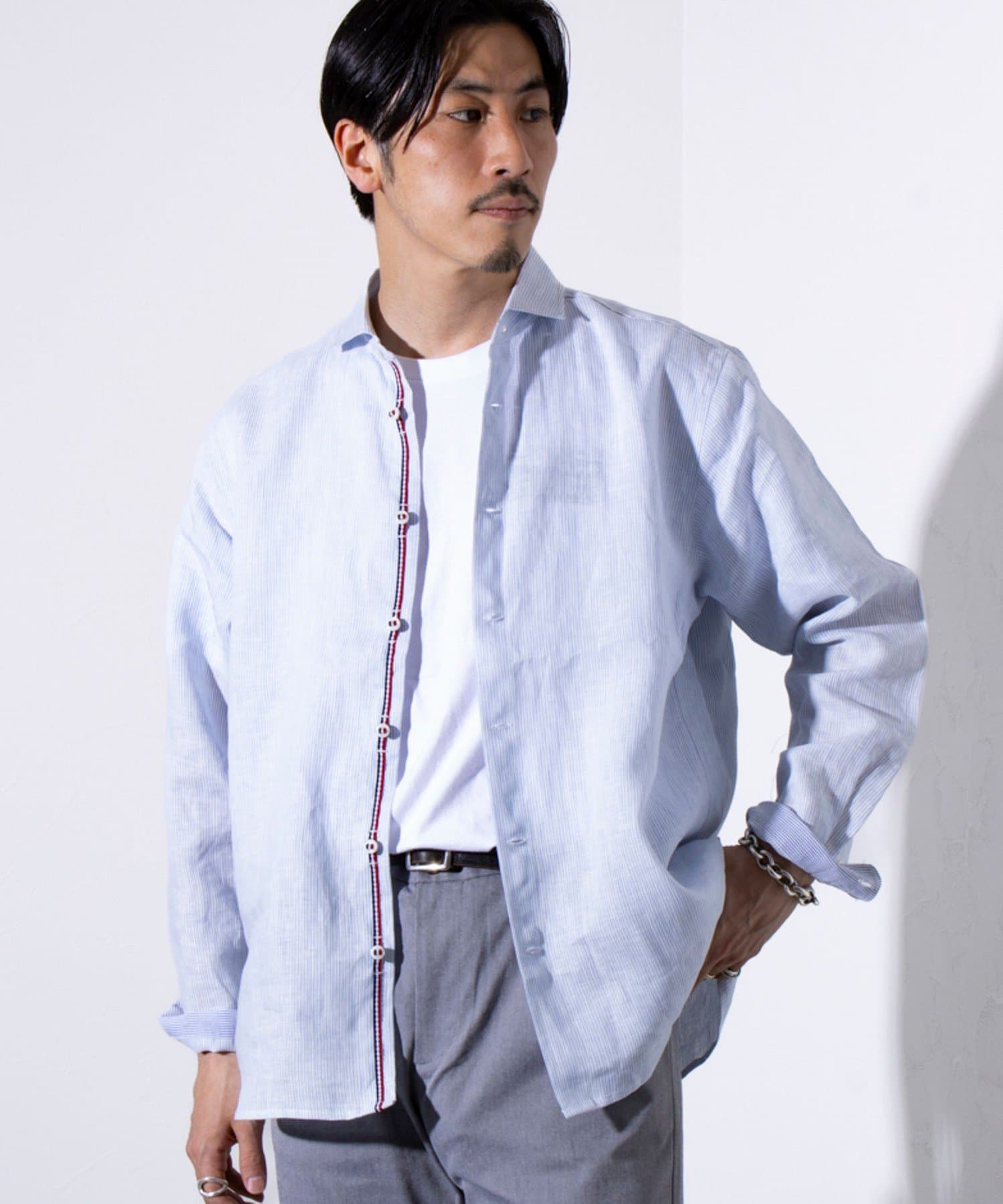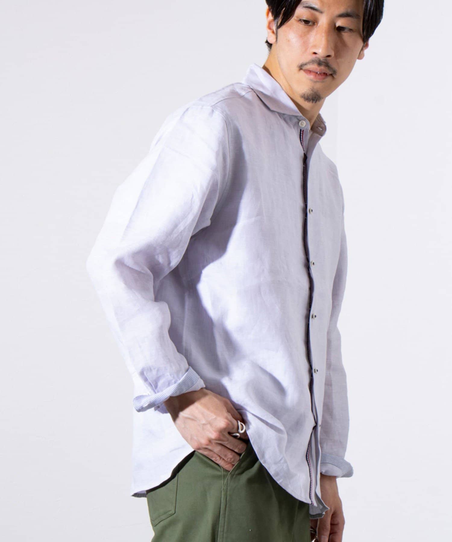 TOP > FREDY & GLOSTER > メンズ > トップス > シャツ/ブラウス(ボタン) > 【GLOSTER/グロスター】リネン100% パラシュートカッタウェイ長袖シャツ