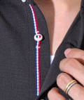 ・トリコカラーのテープを通したパラシュートボタンもアクセントに