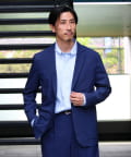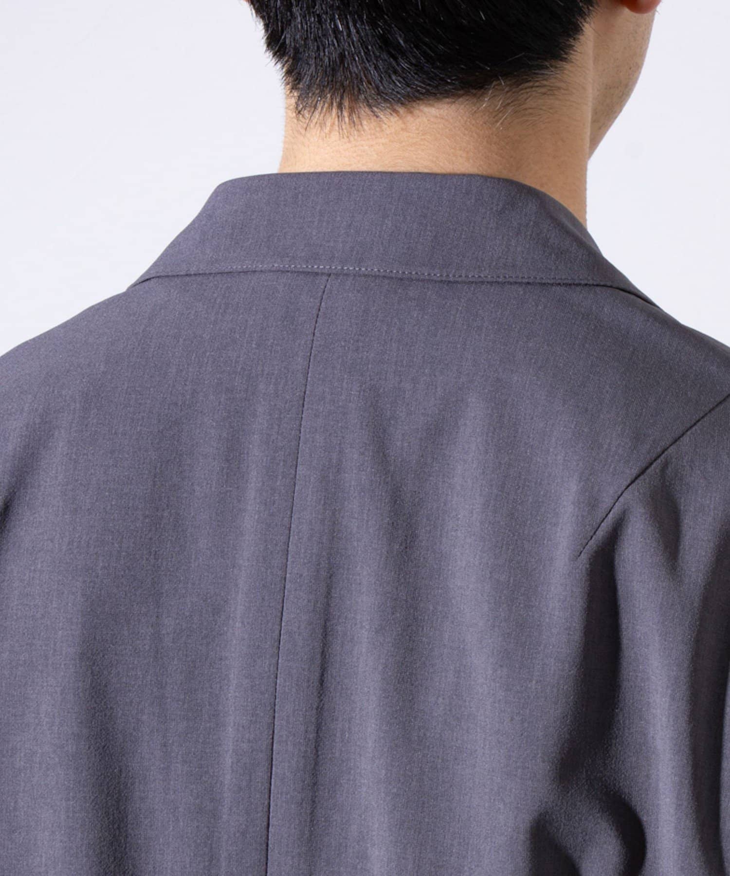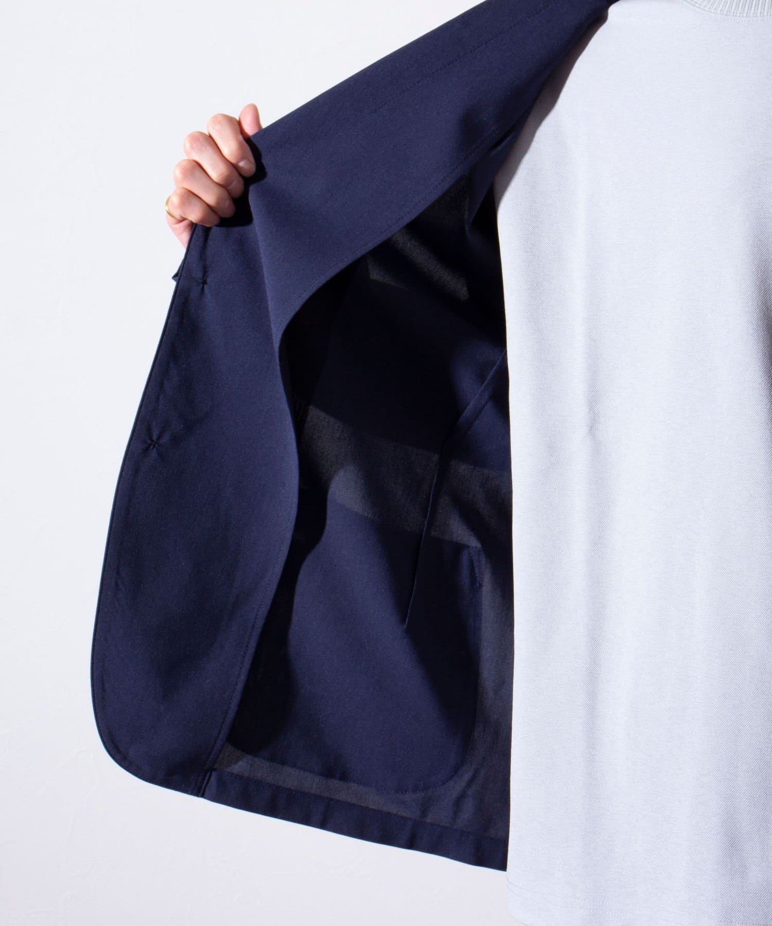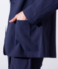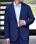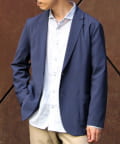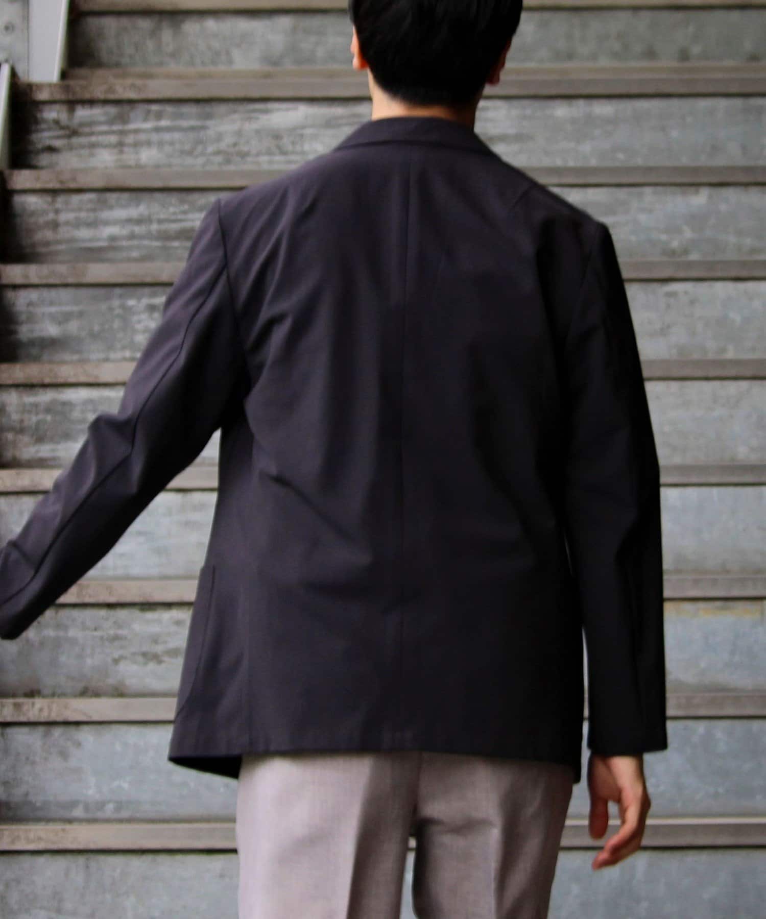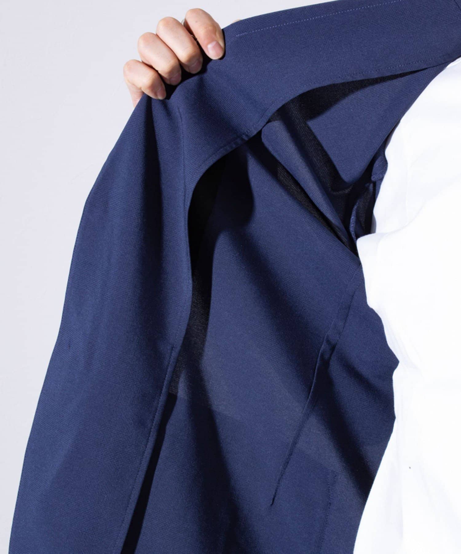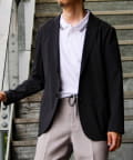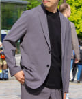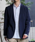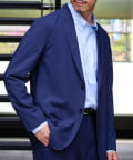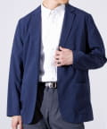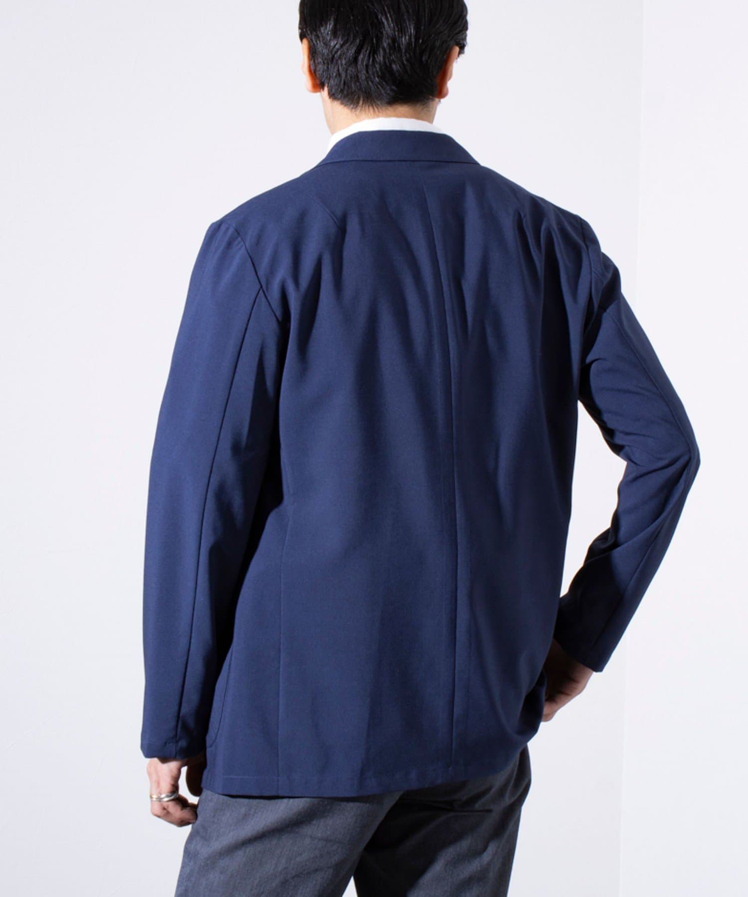 表面は綿糸で編み、裏面を清涼感のあるポリエステル糸「COOLMAX」で編んだ二層構造の吸水速乾生地を使用したテーラードジャケット