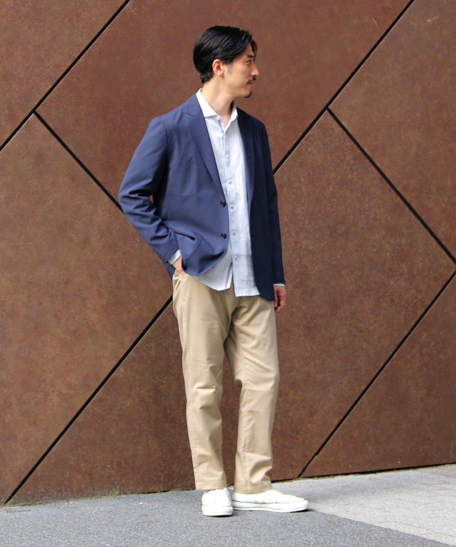 着心地良いすっきり見えのシルエットが特徴の2つボタンジャケットに構築し、ビジネスでのジャケパンスタイルから、カジュアルなコーディネートまで幅広く対応可能なアイテムです。