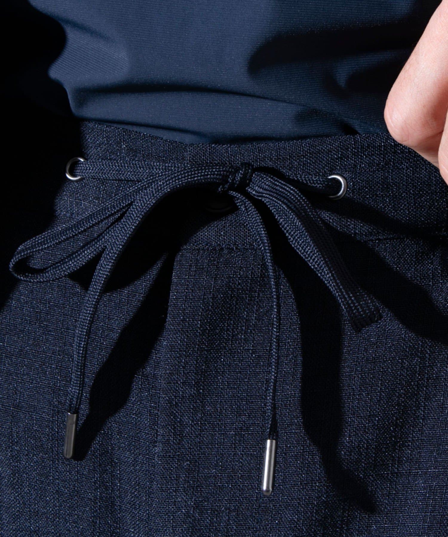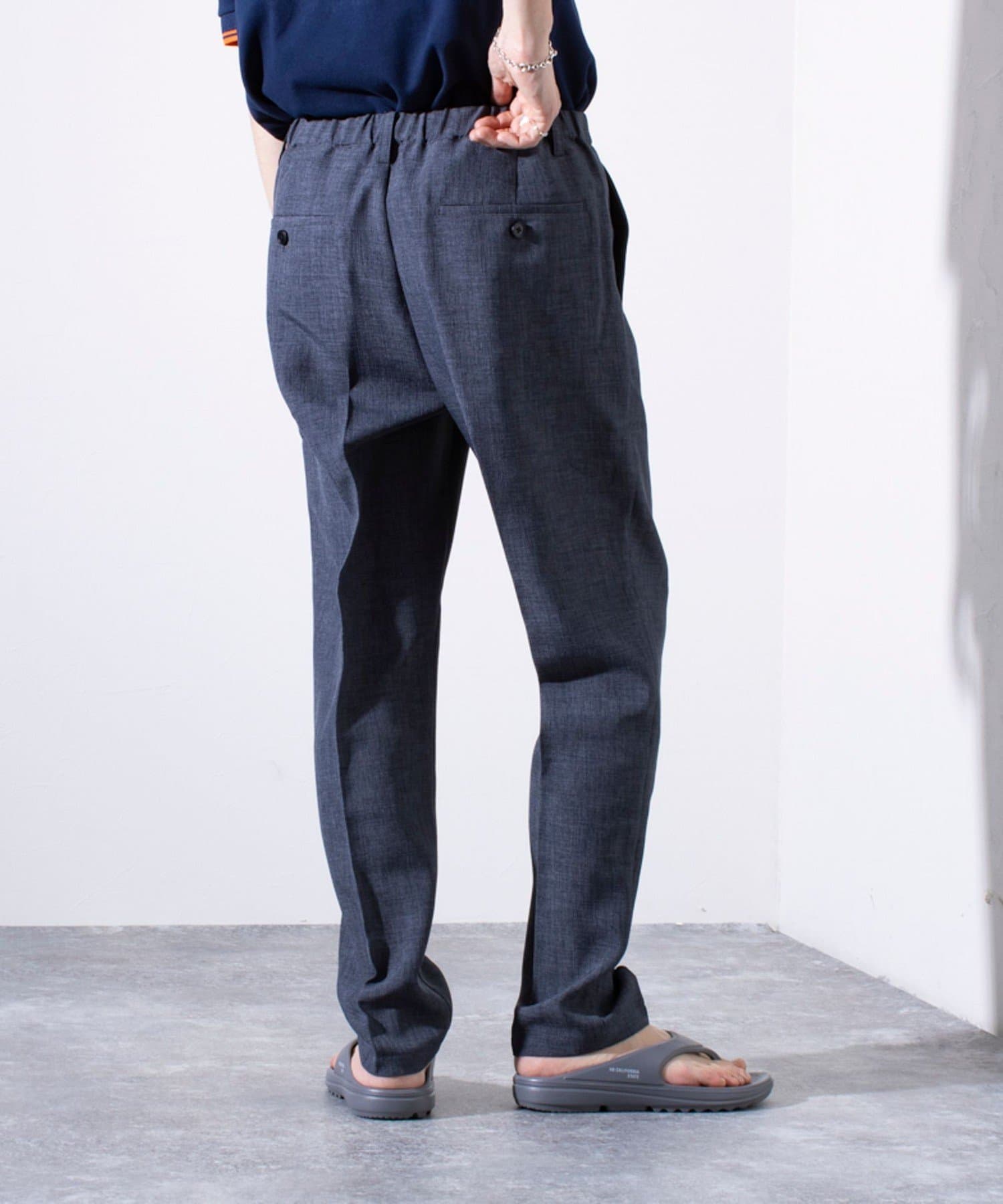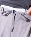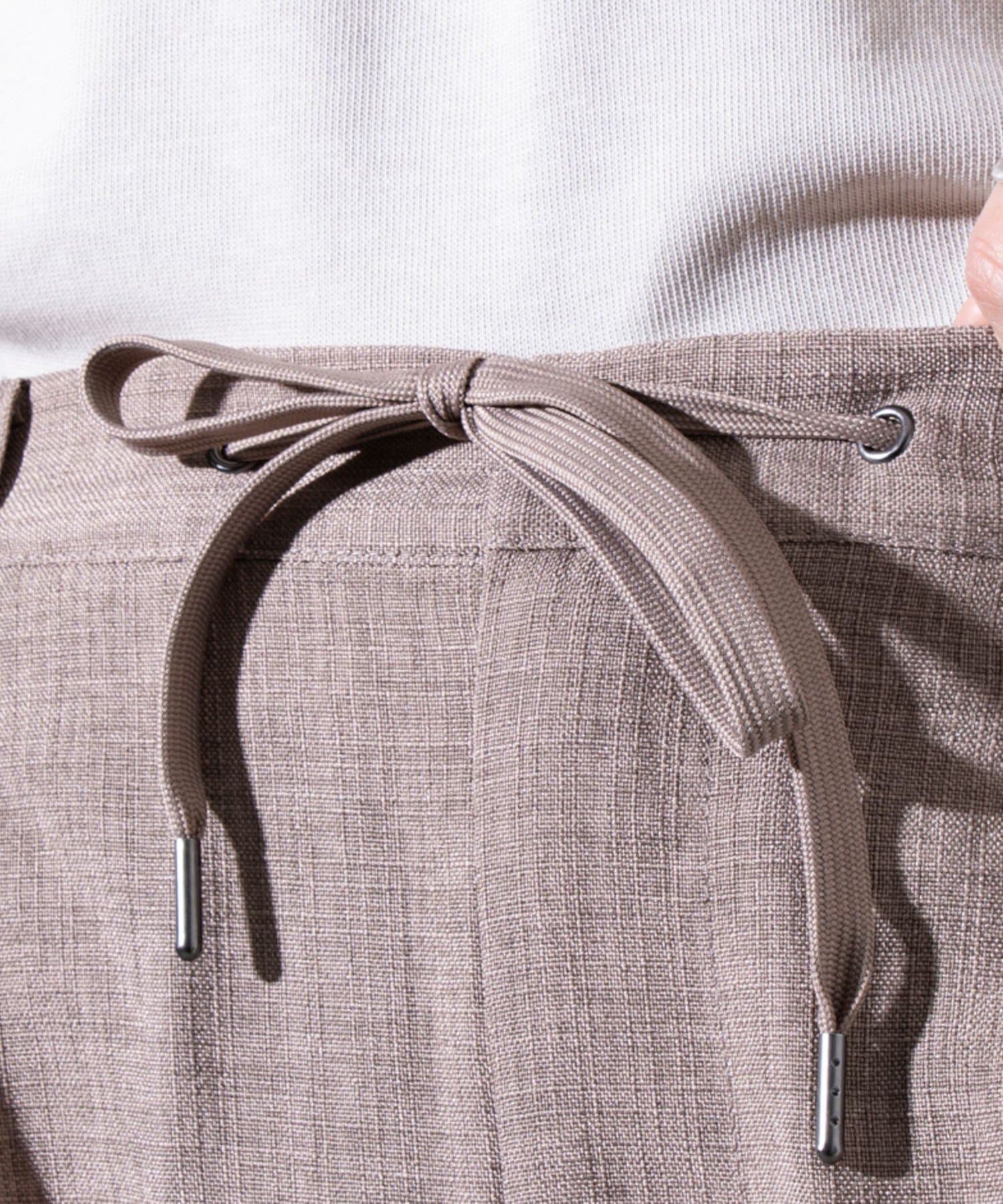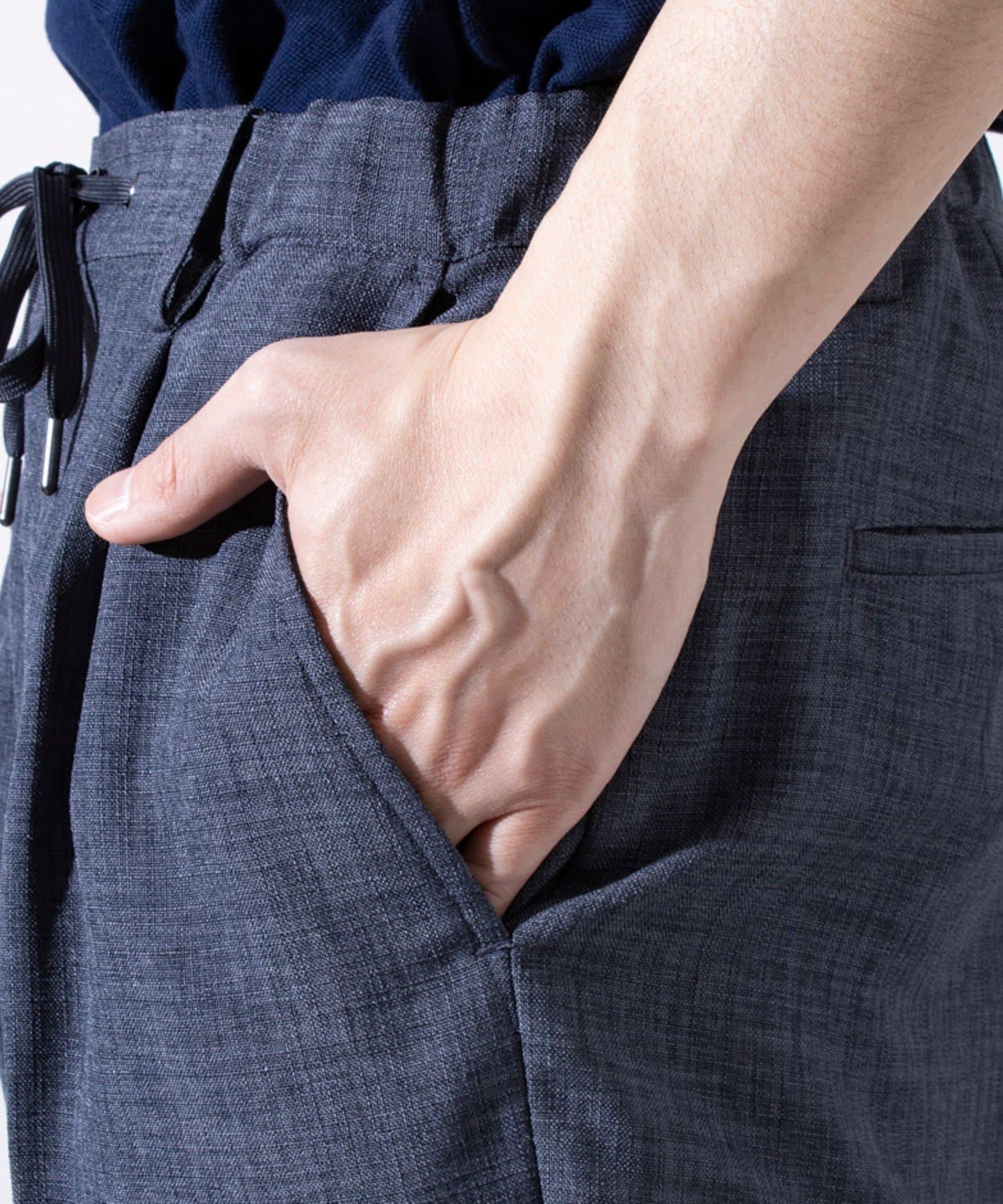 リネンライクなポリエステル糸を使用した生地を採用したイージーパンツ。