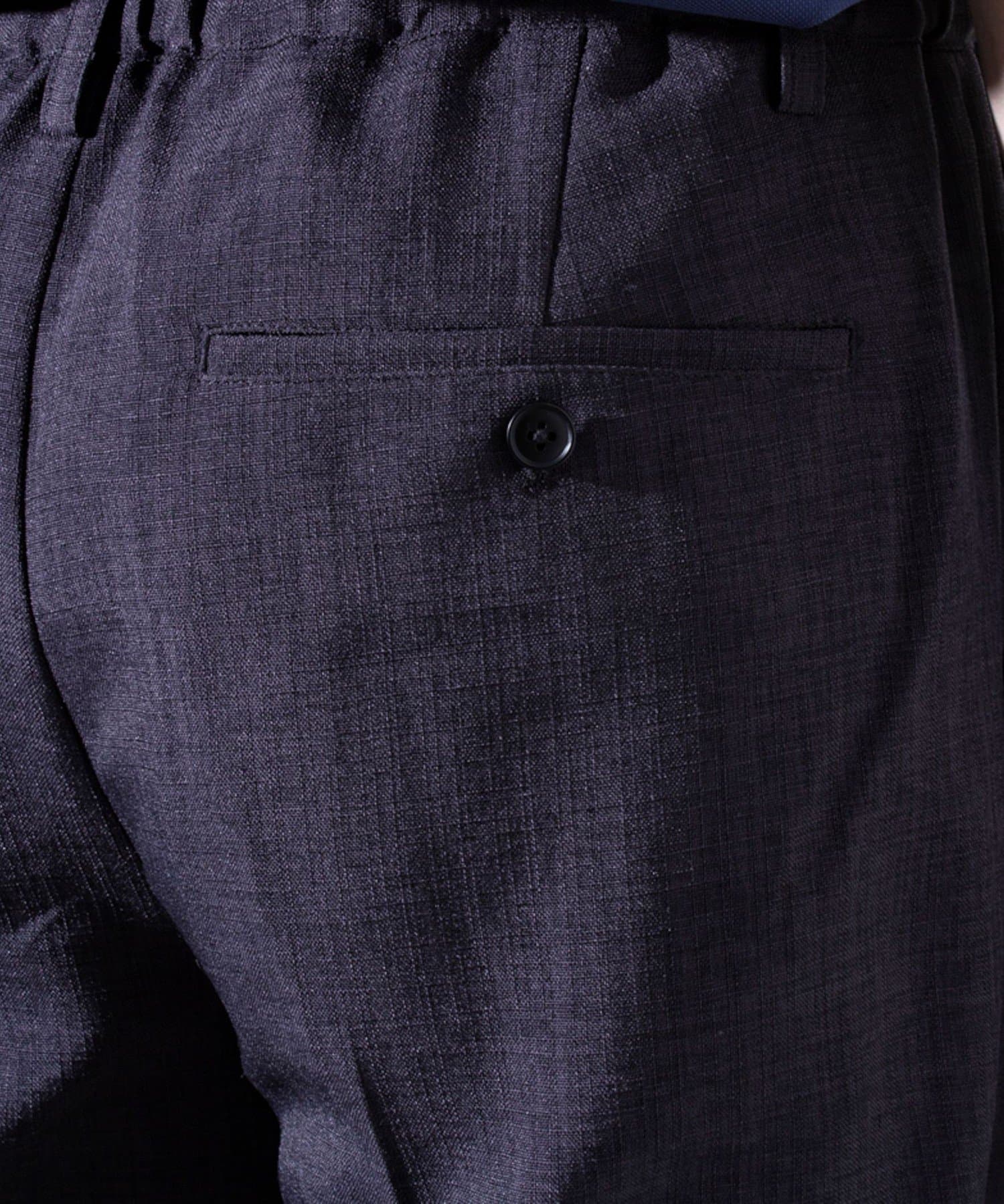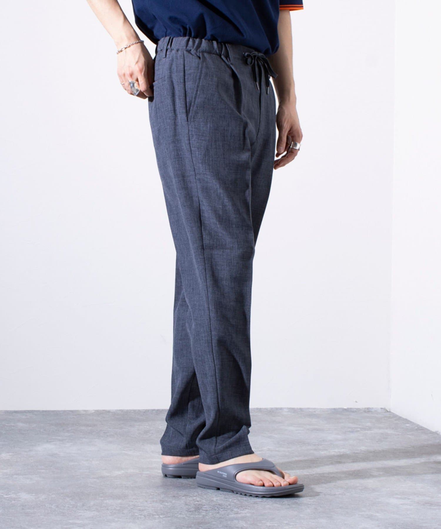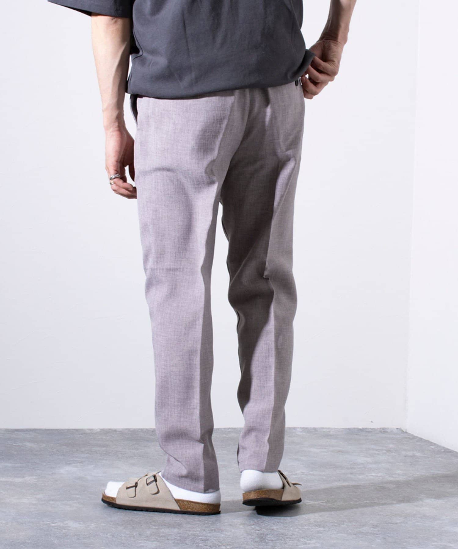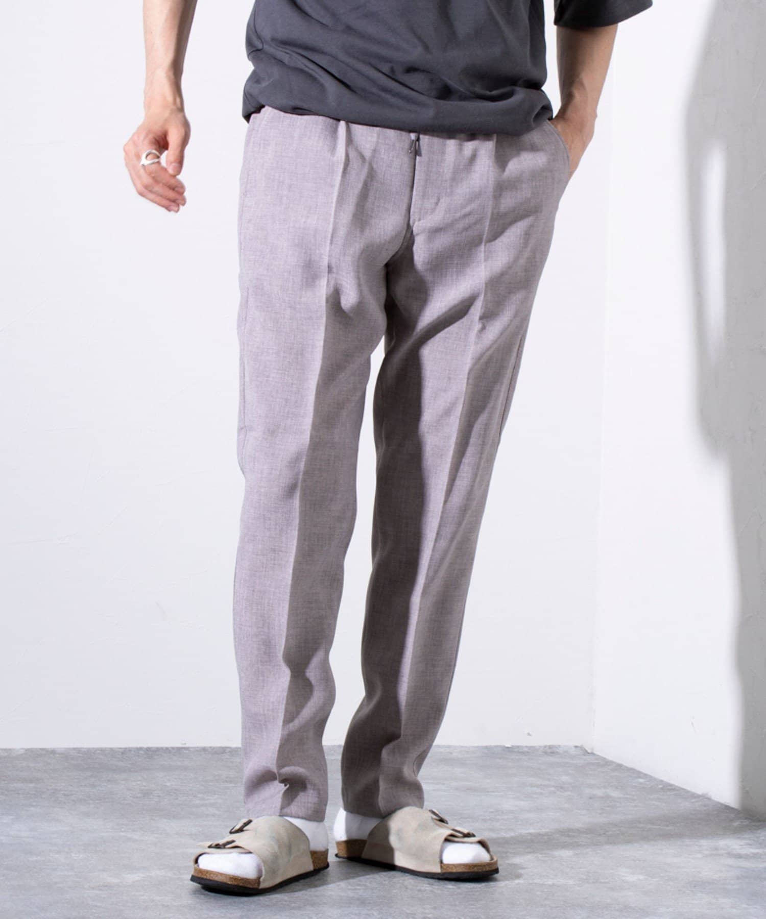 リネンライクなポリエステル糸を使用した生地を採用したイージーパンツ。